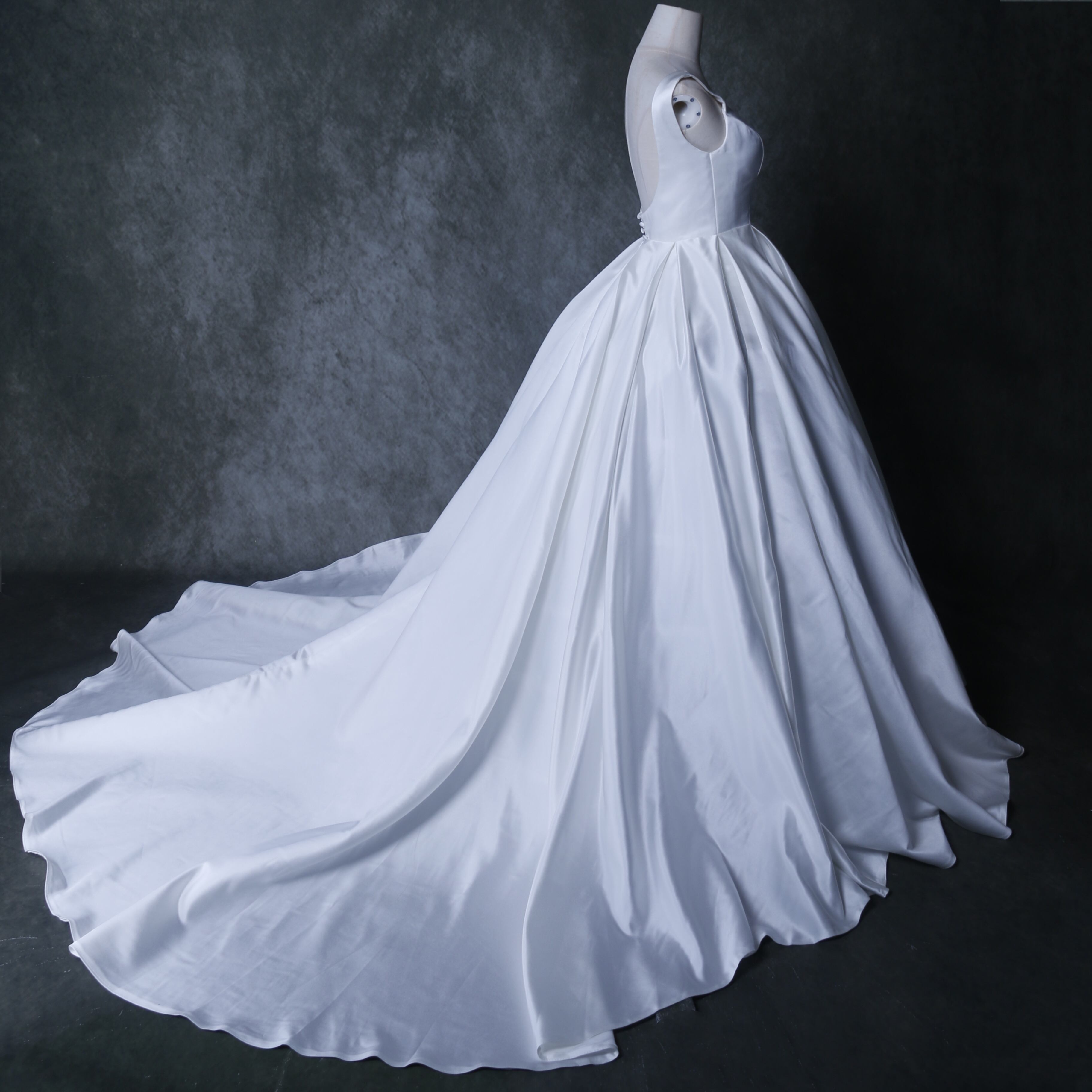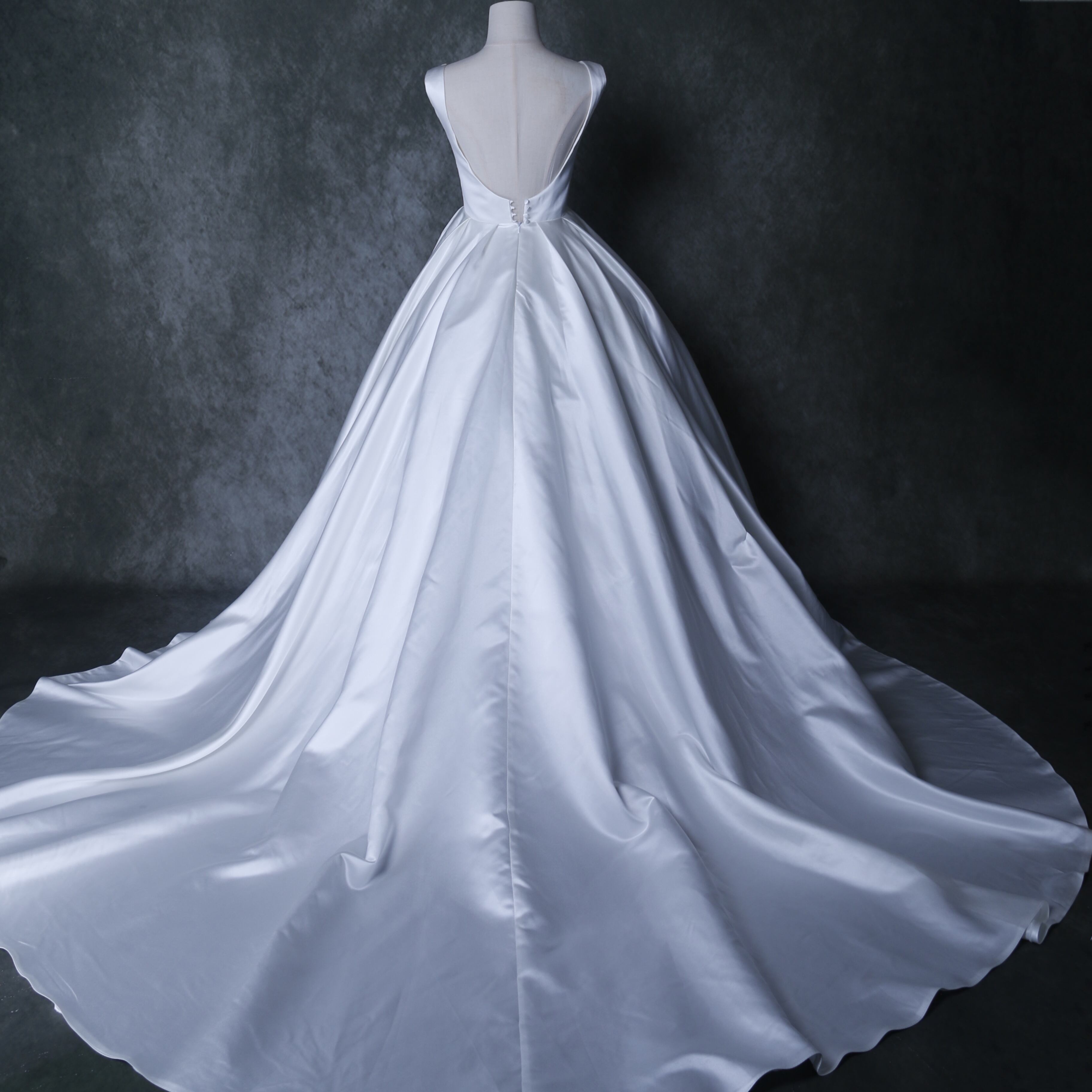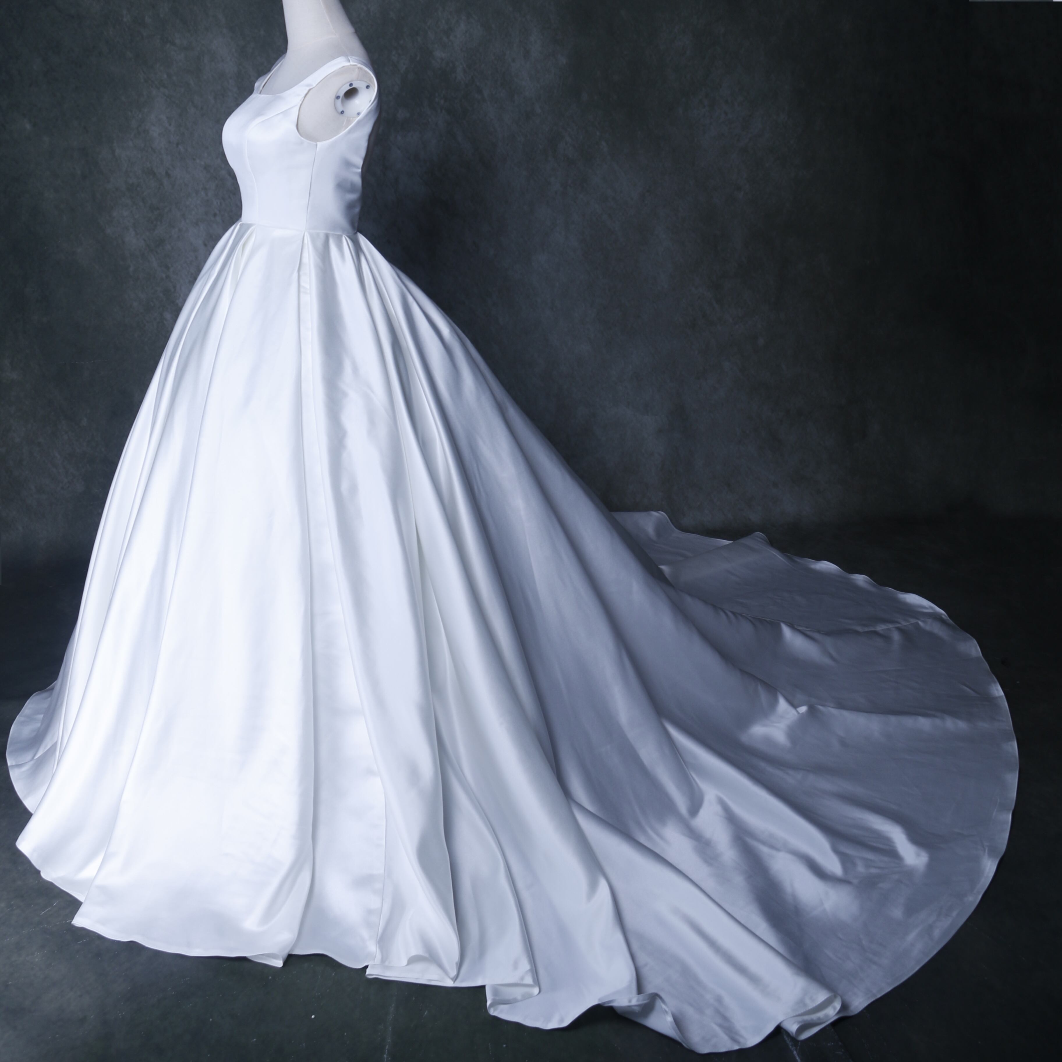 送料無料! 抜群のおしゃれ見えウホワイト ウエディングドレス ロングトレーン 結婚式 花嫁