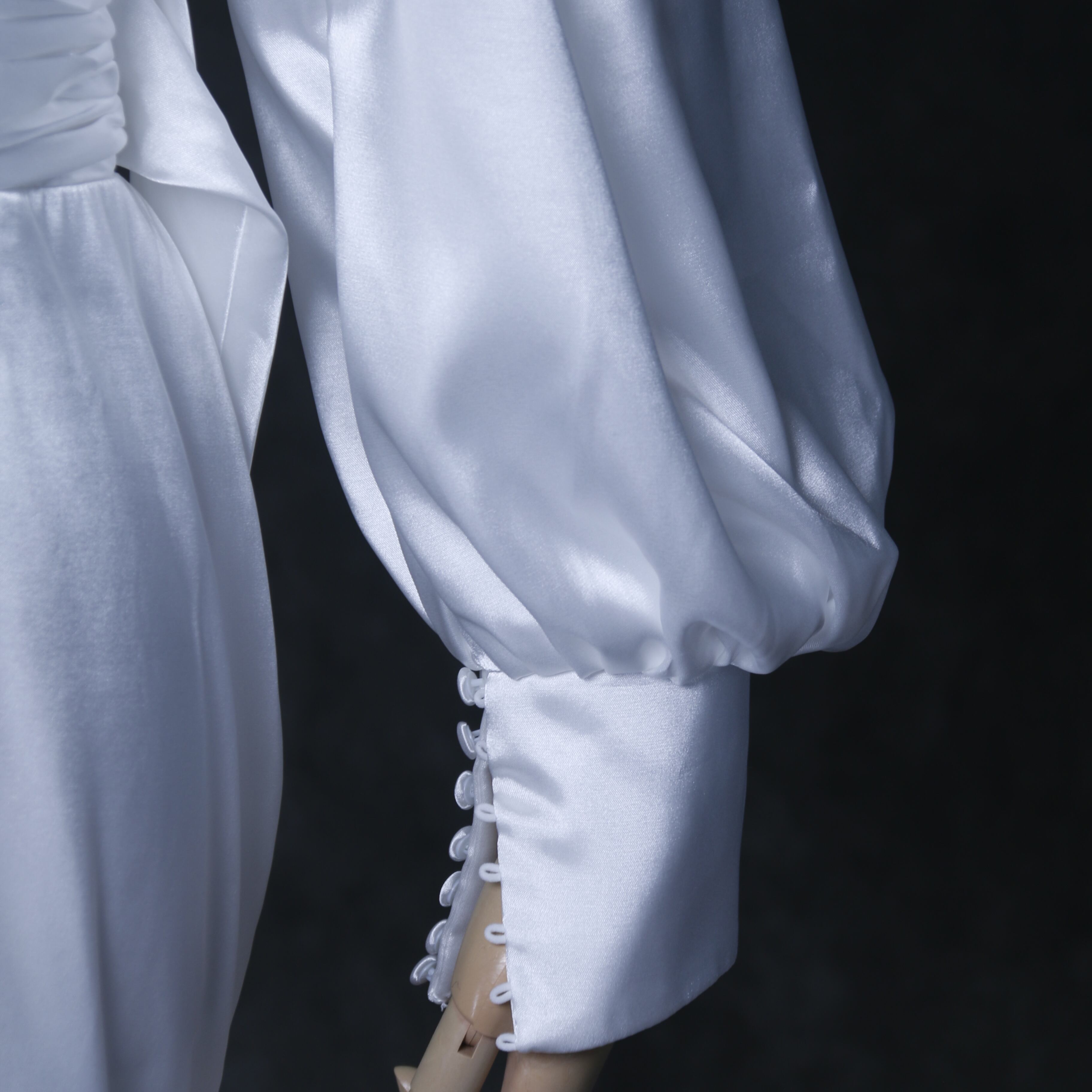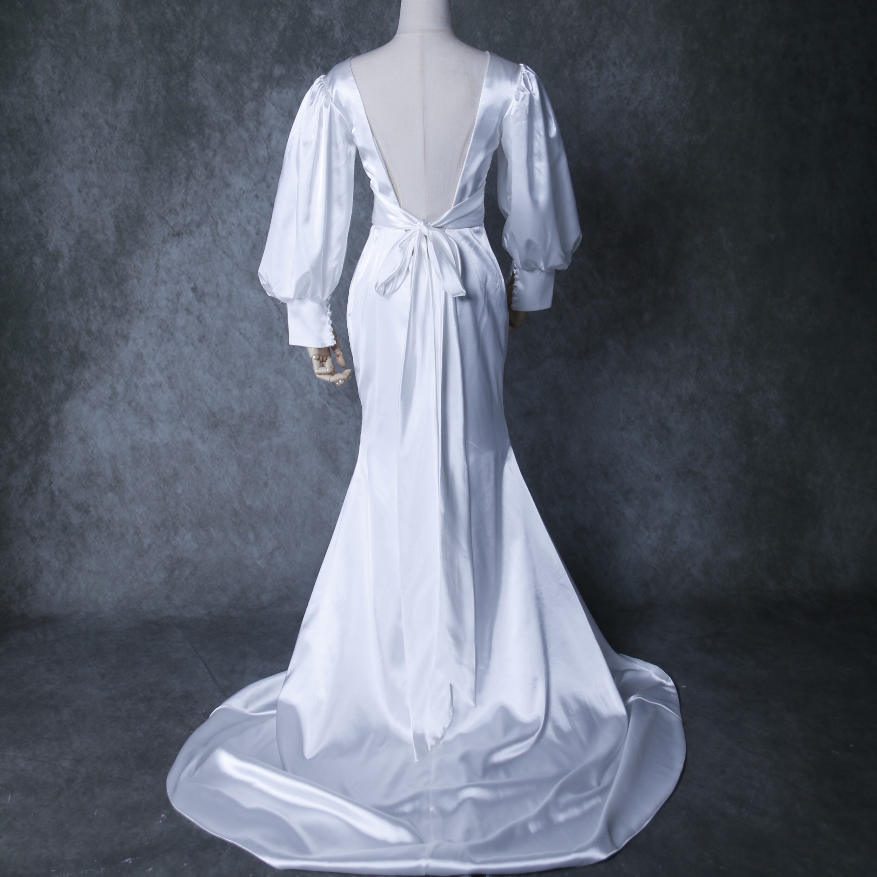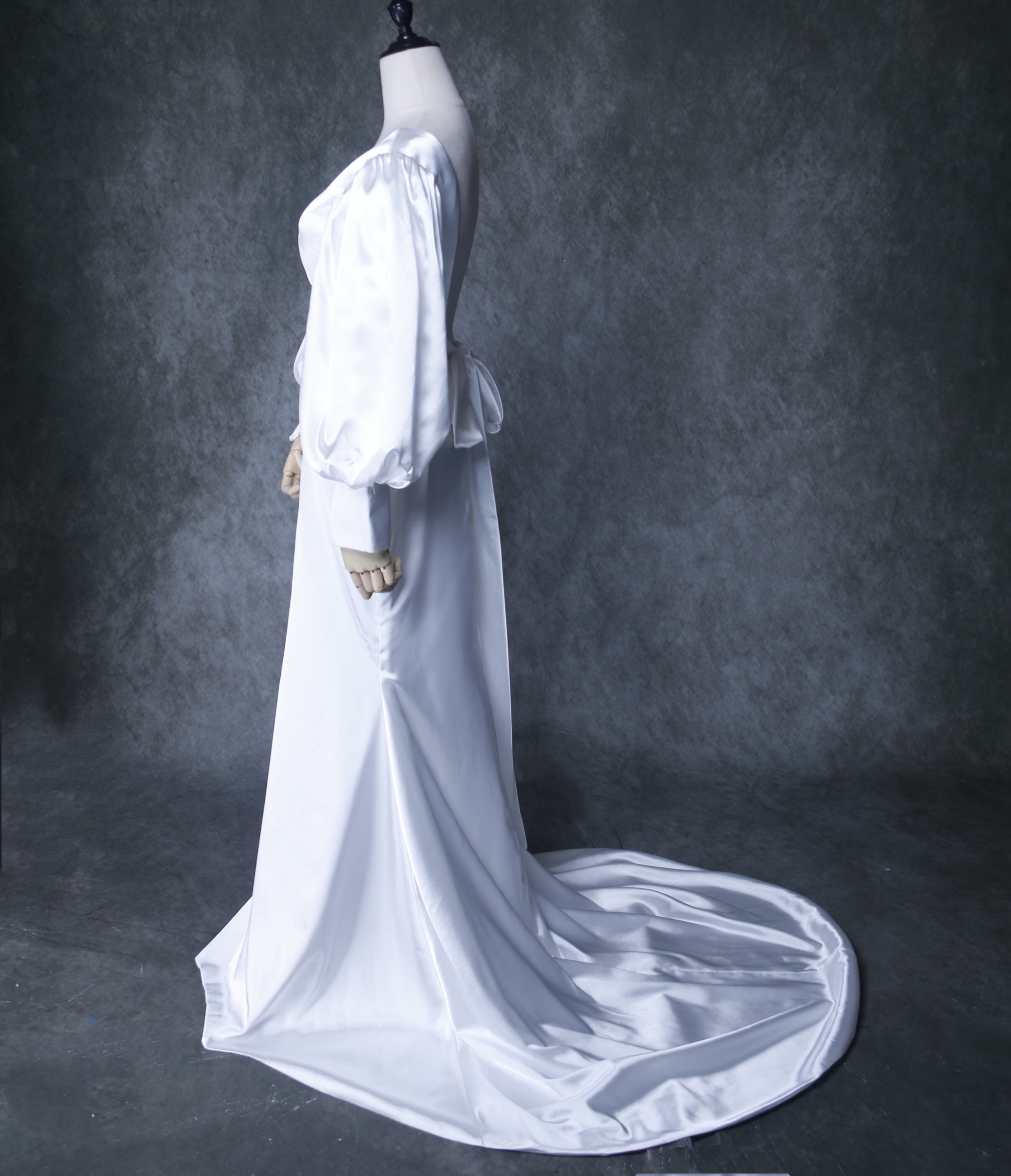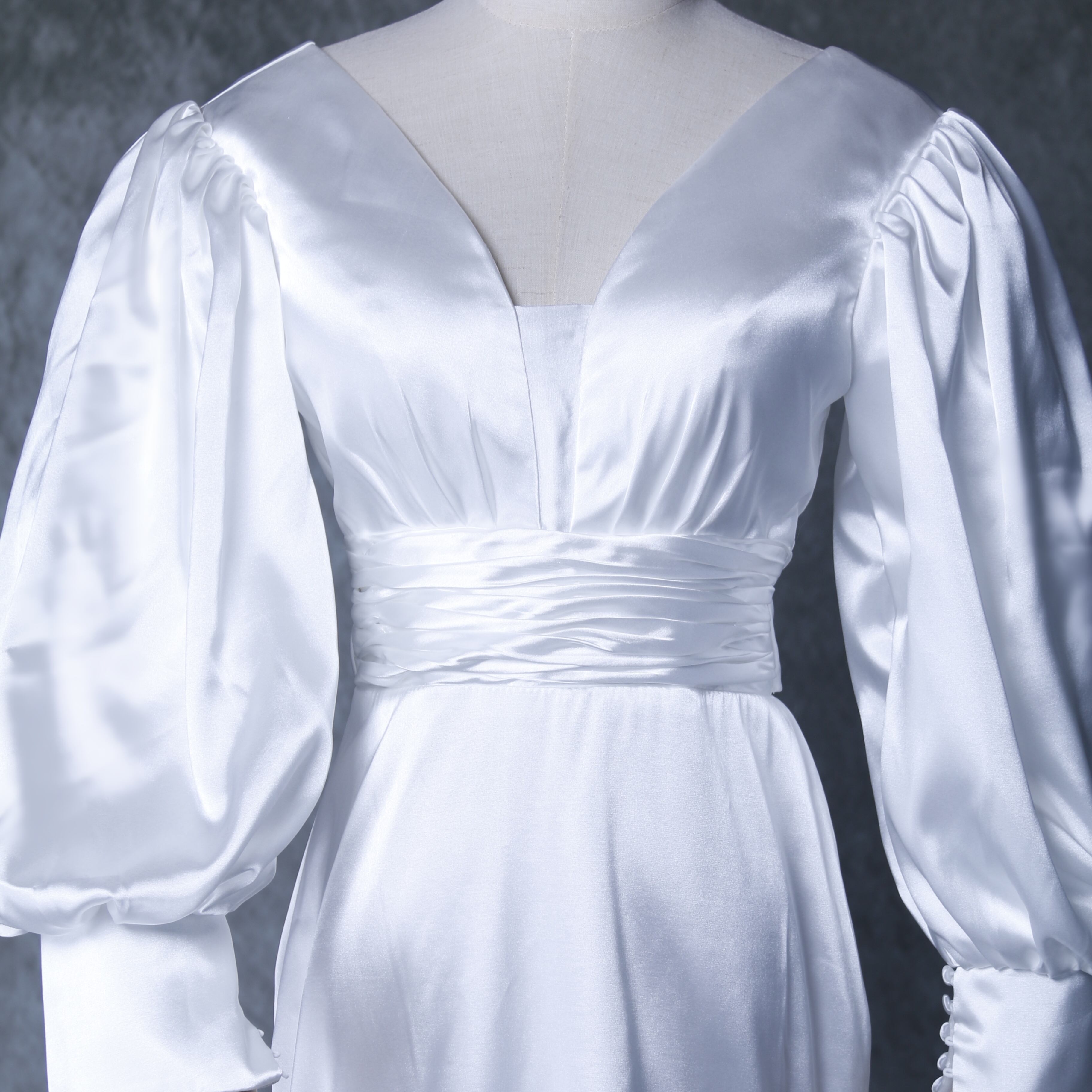送料無料! 抜群のおしゃれ見えウホワイト ウエディングドレス 長袖 ロングトレーン 結婚式 花嫁