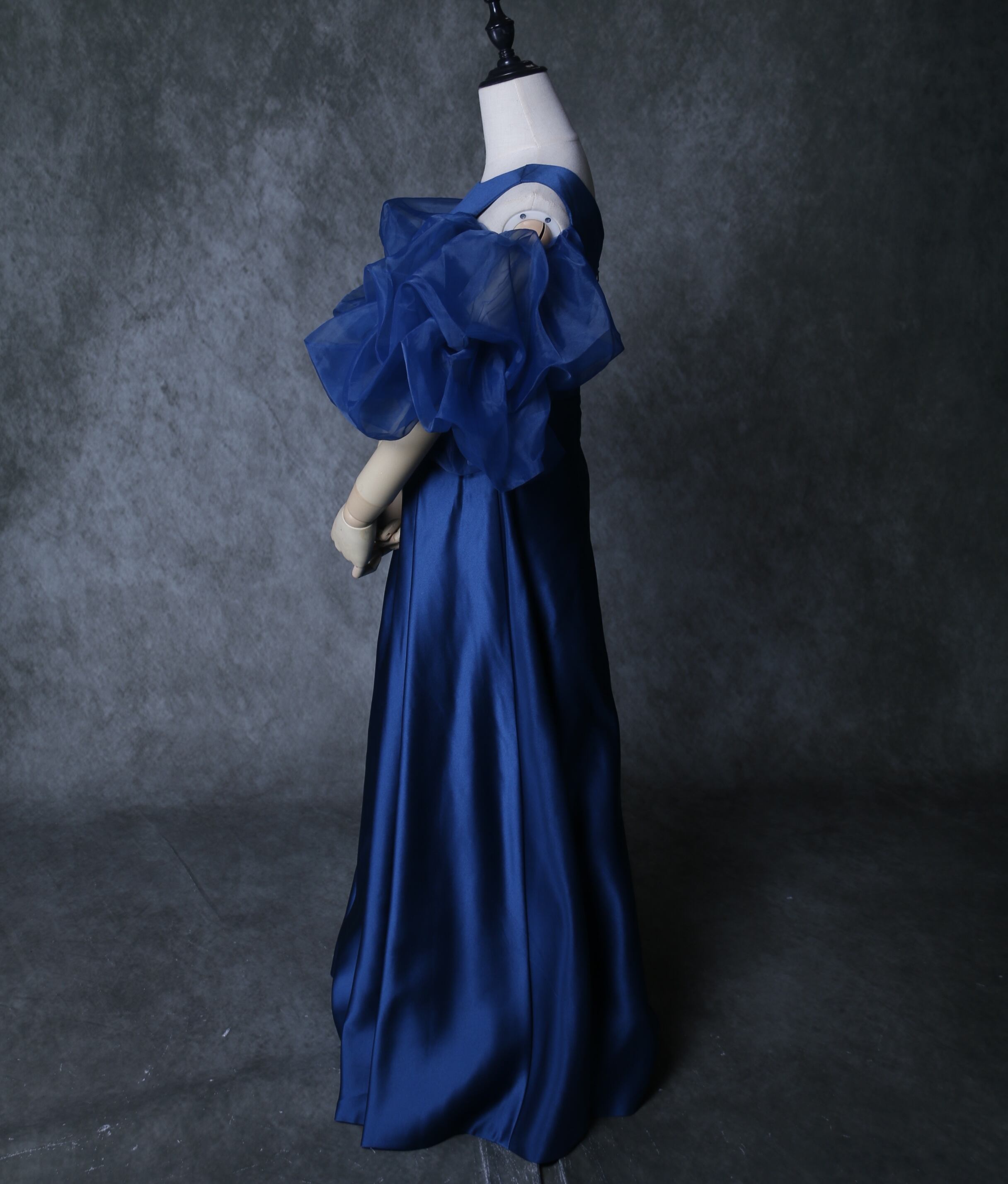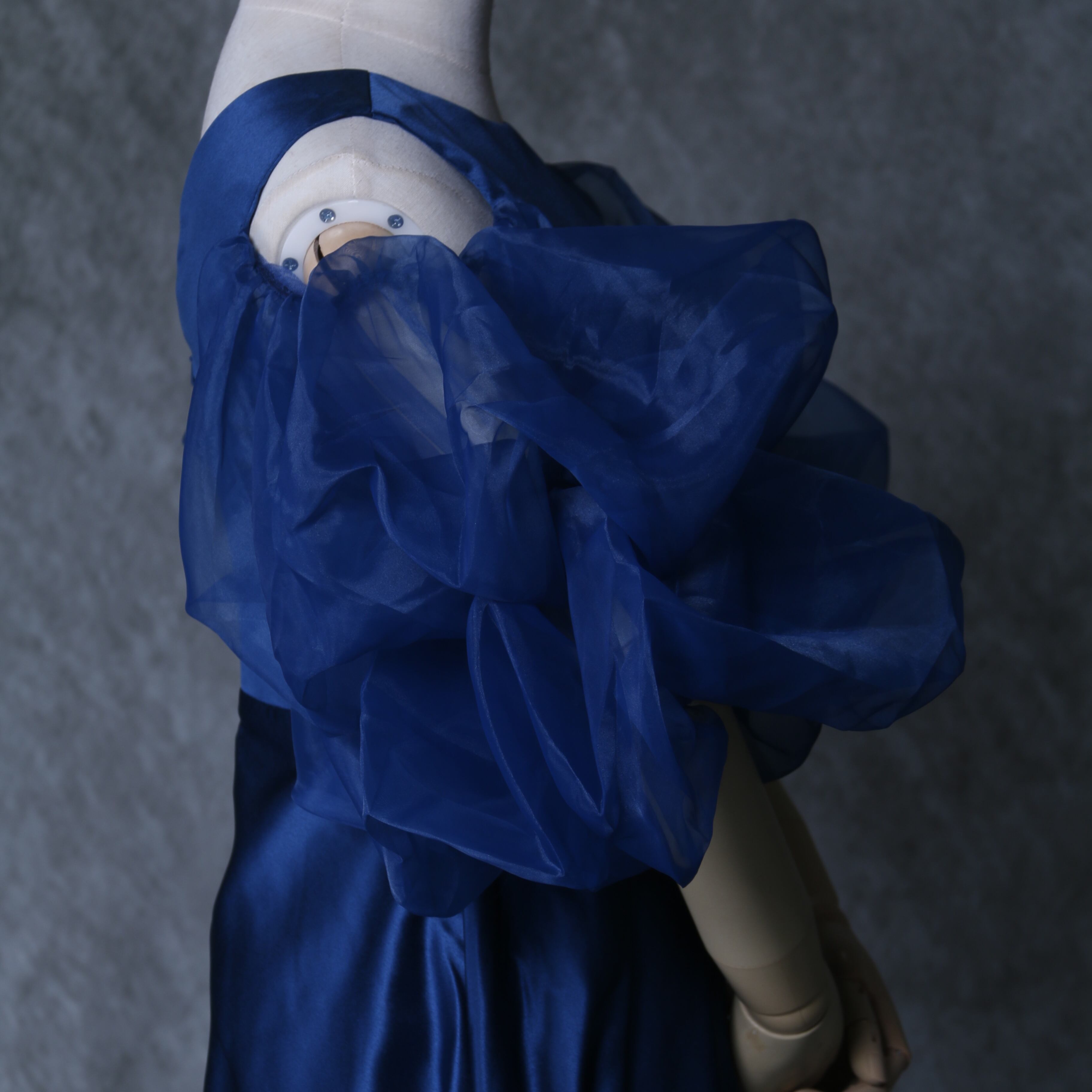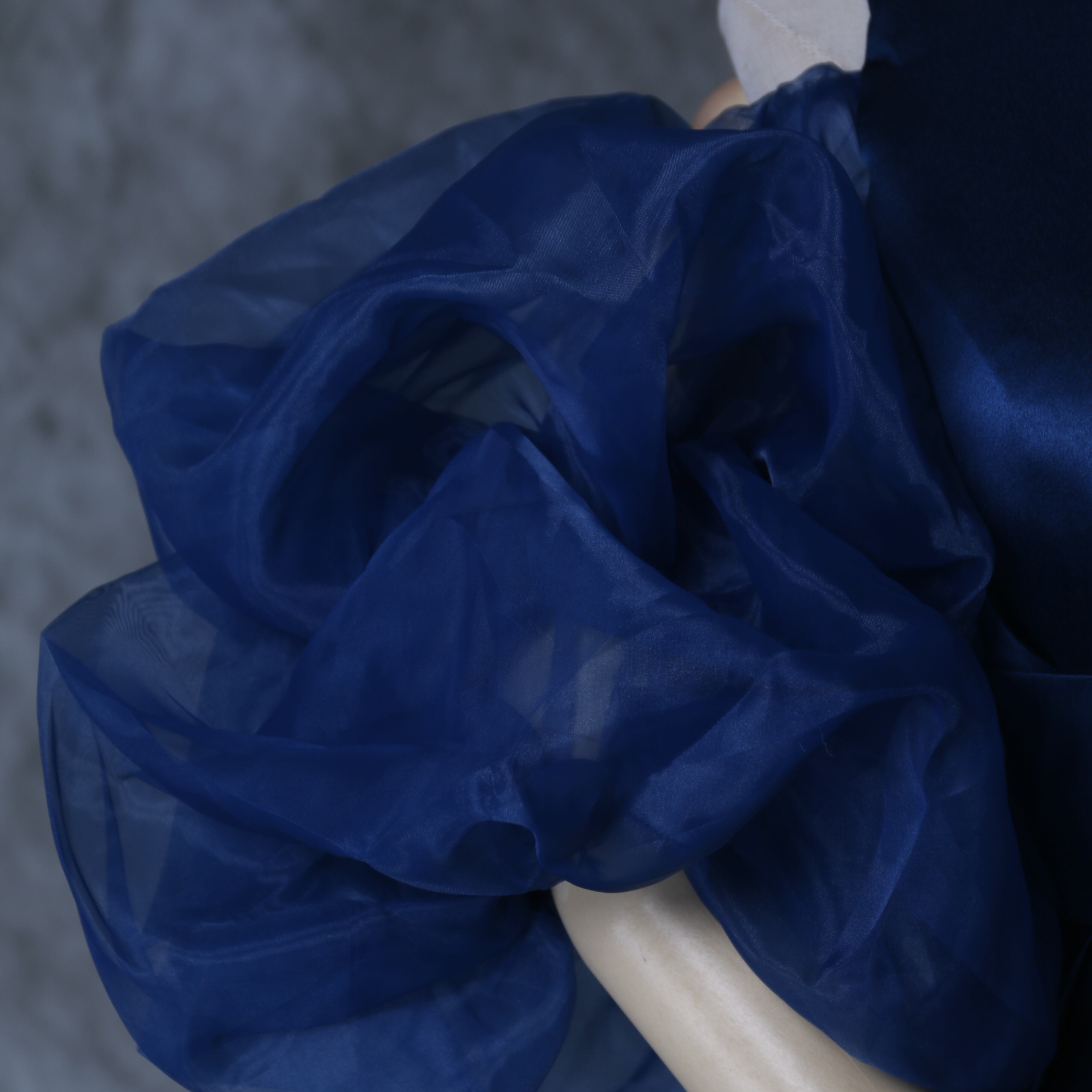 送料無料!人気上昇!ネイビー カラードレス 取り外し上質オーガンジー 姫袖 マーメイドライン結婚式/披露