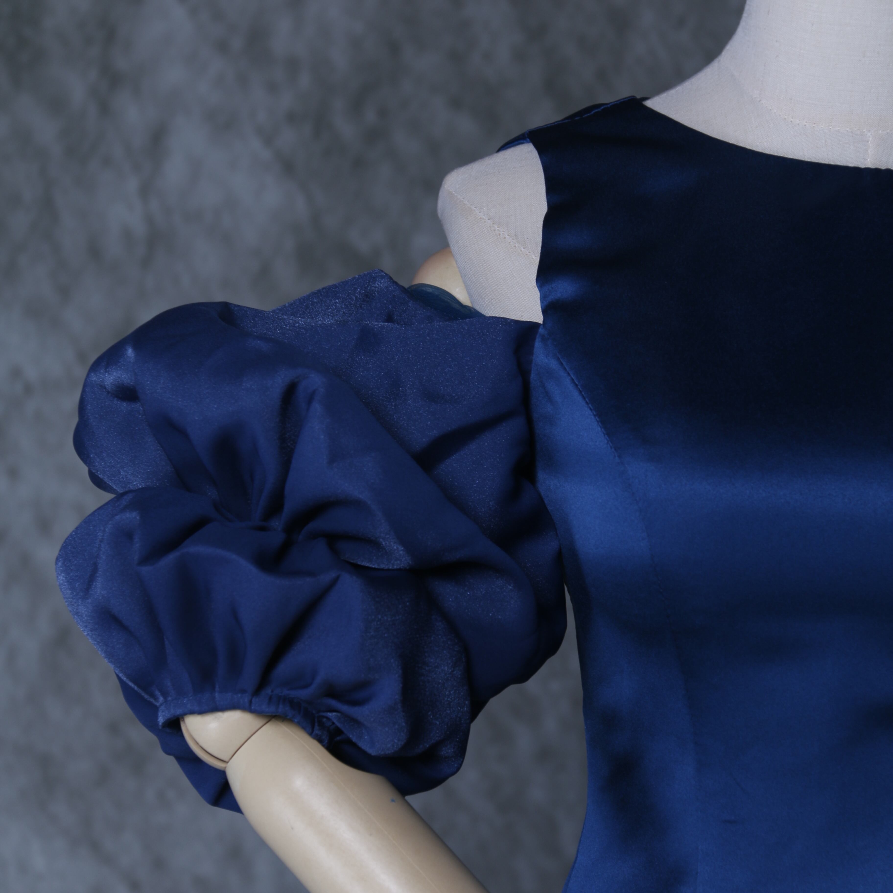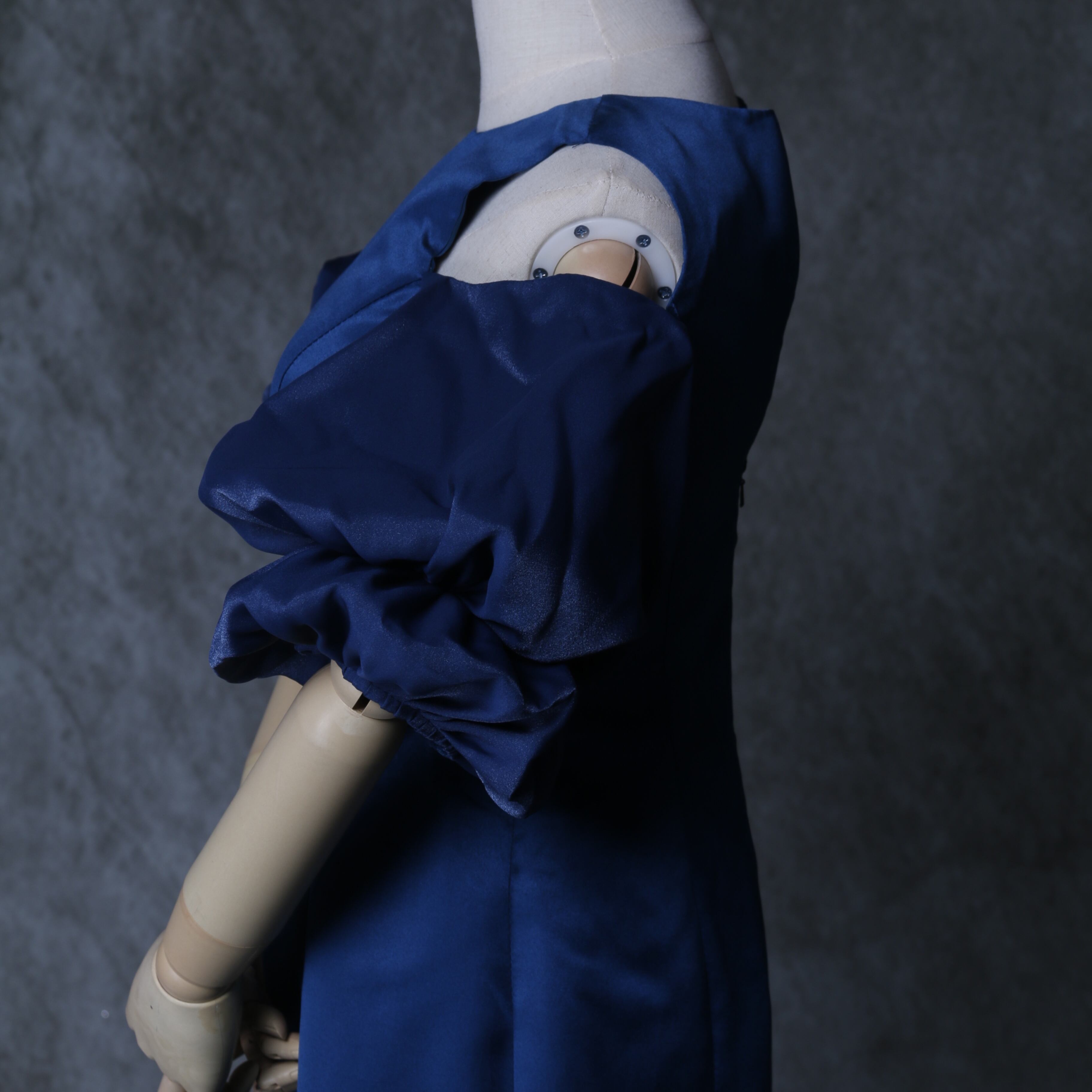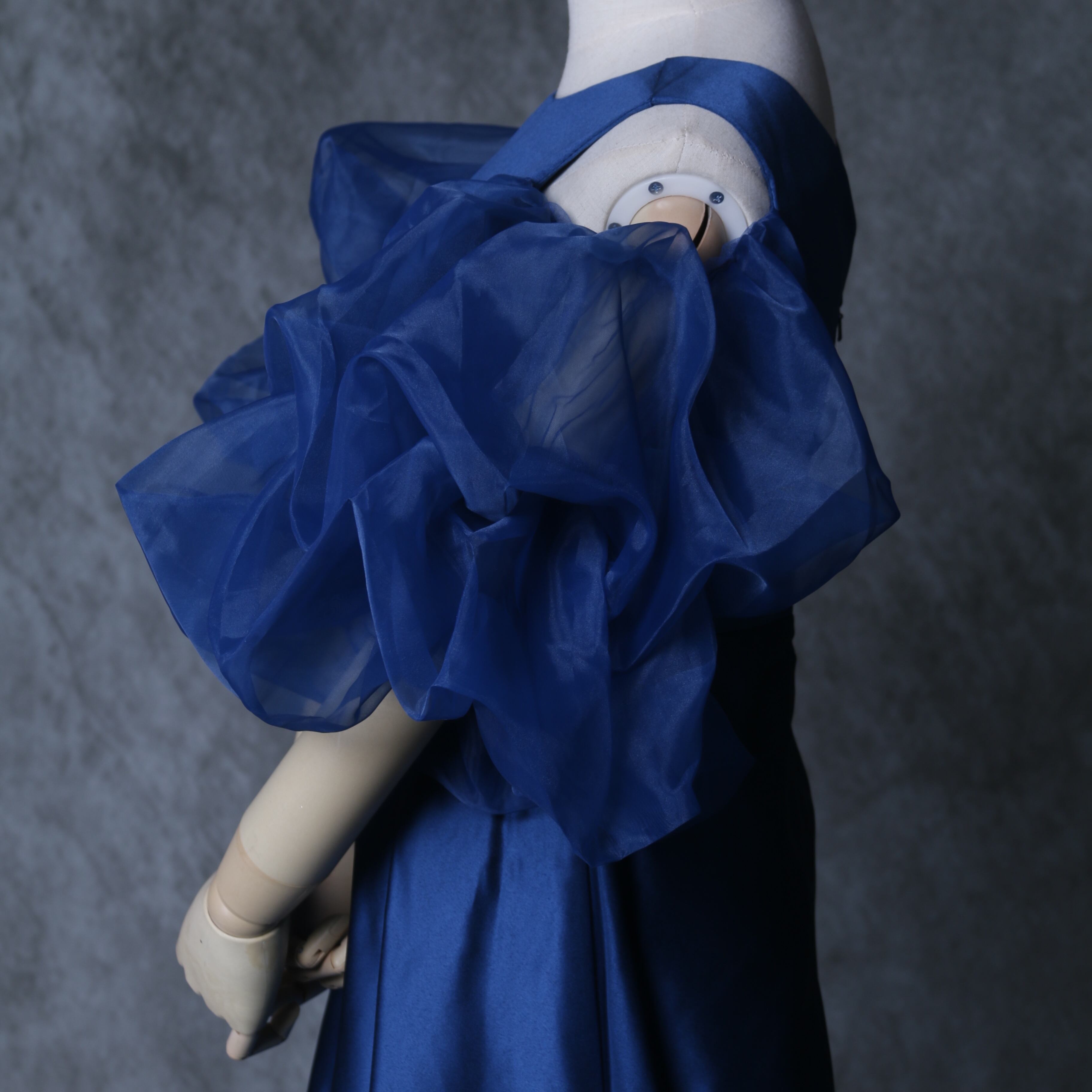 送料無料!人気上昇!ネイビー カラードレス 取り外し上質オーガンジー 姫袖 マーメイドライン結婚式/披露