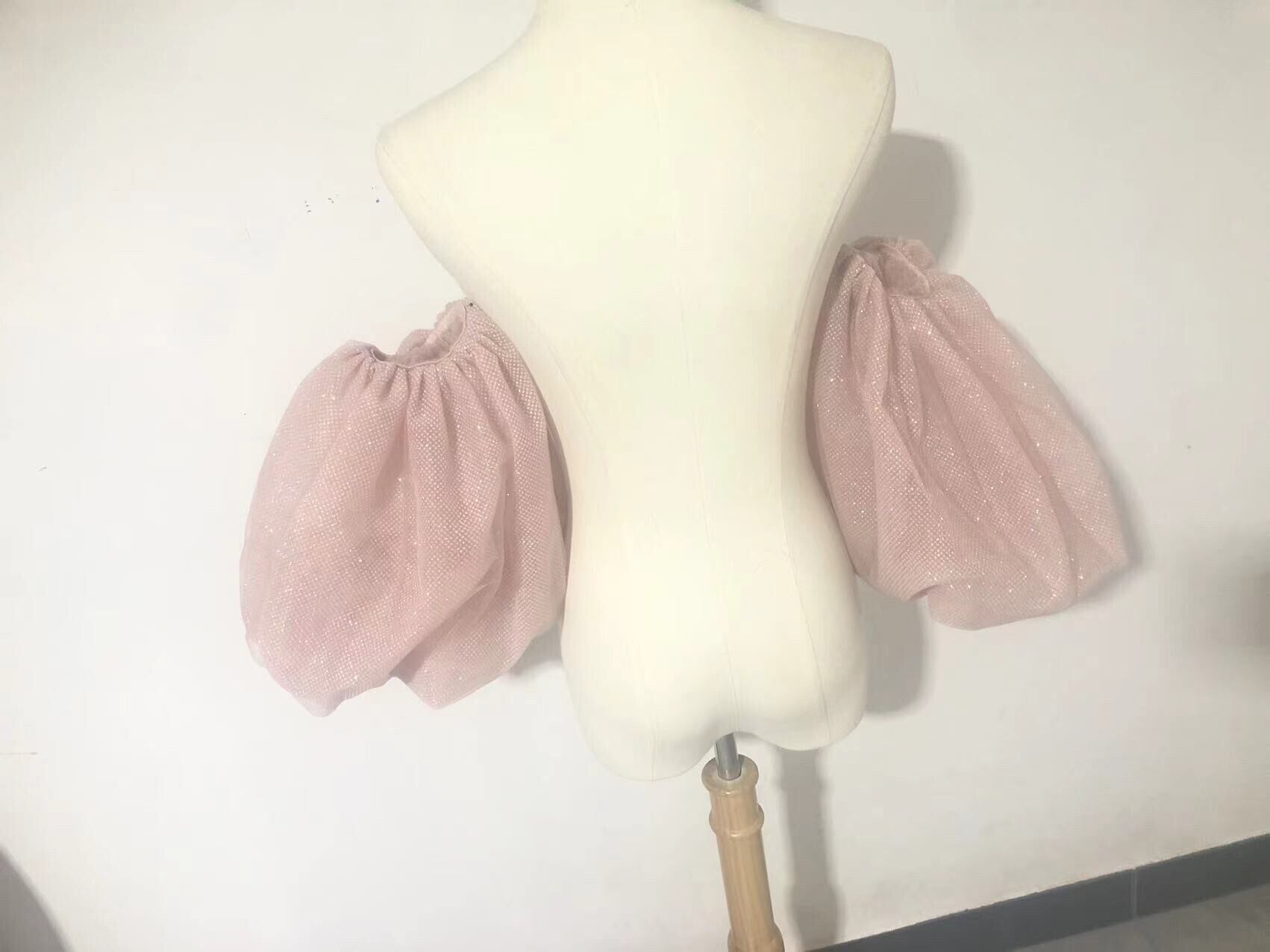 送料無料!大人気上昇 薄ピンク ボブスリーブ 取り外し袖 ショルダーの付け袖 パフスリーブ オーダー可能 二の腕を隠せ