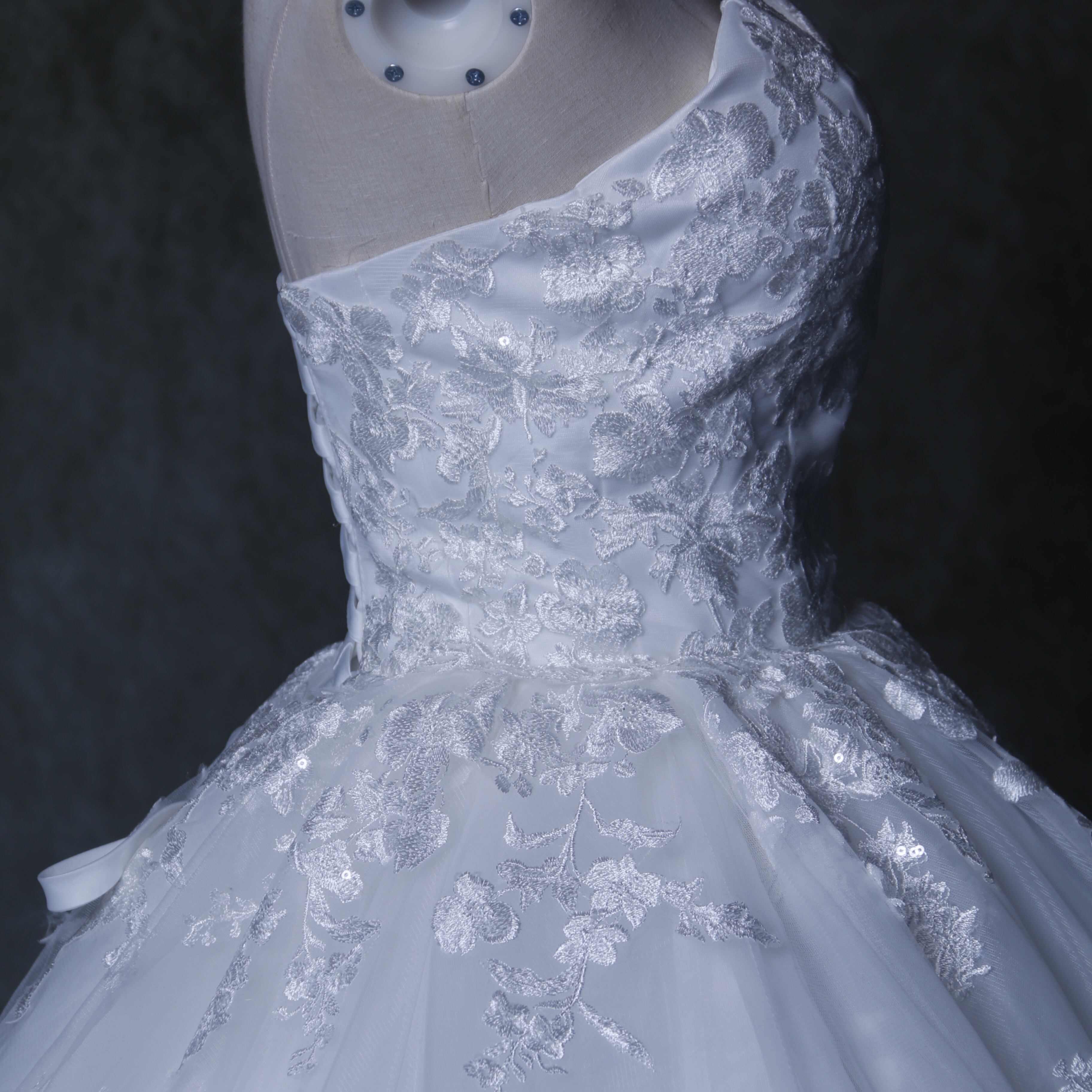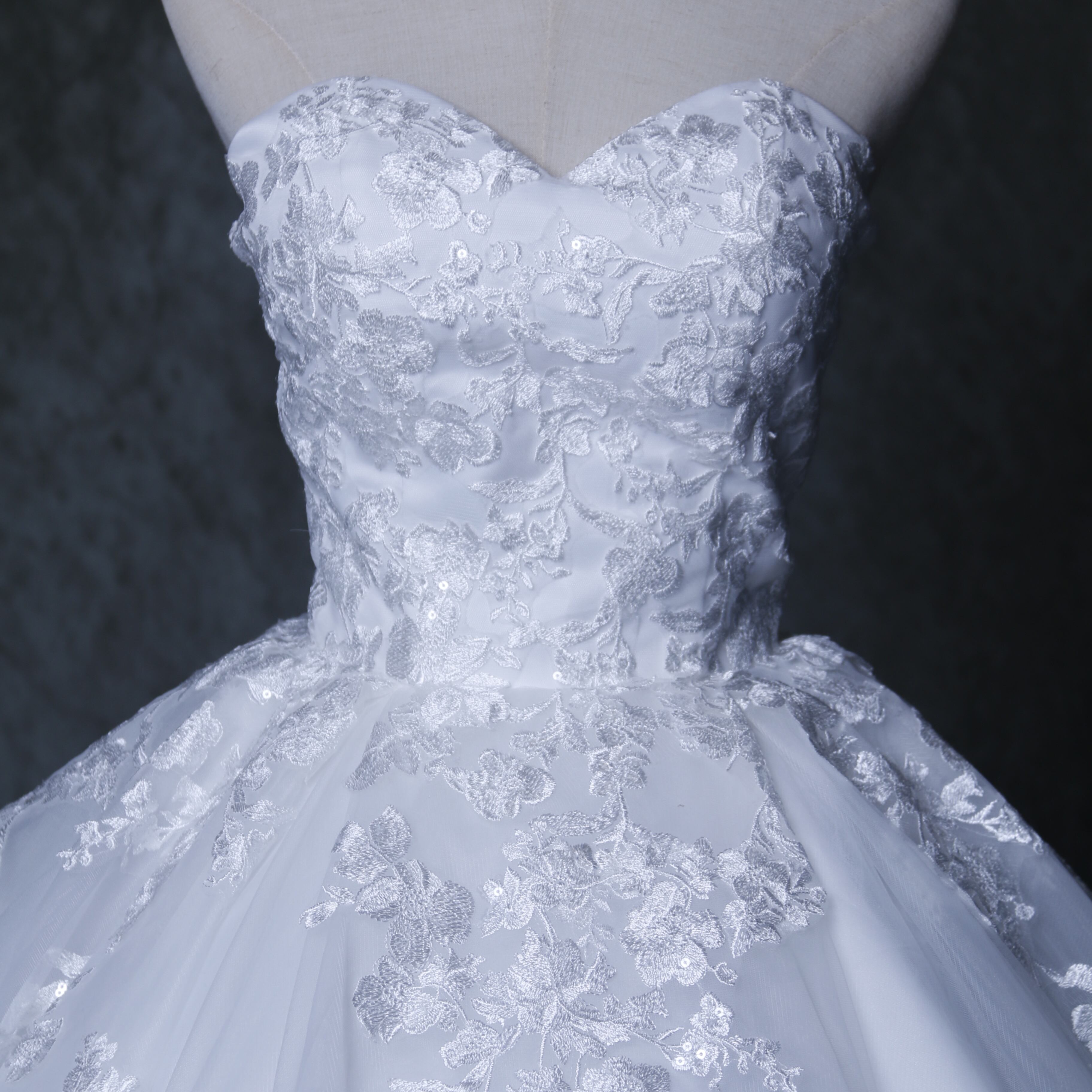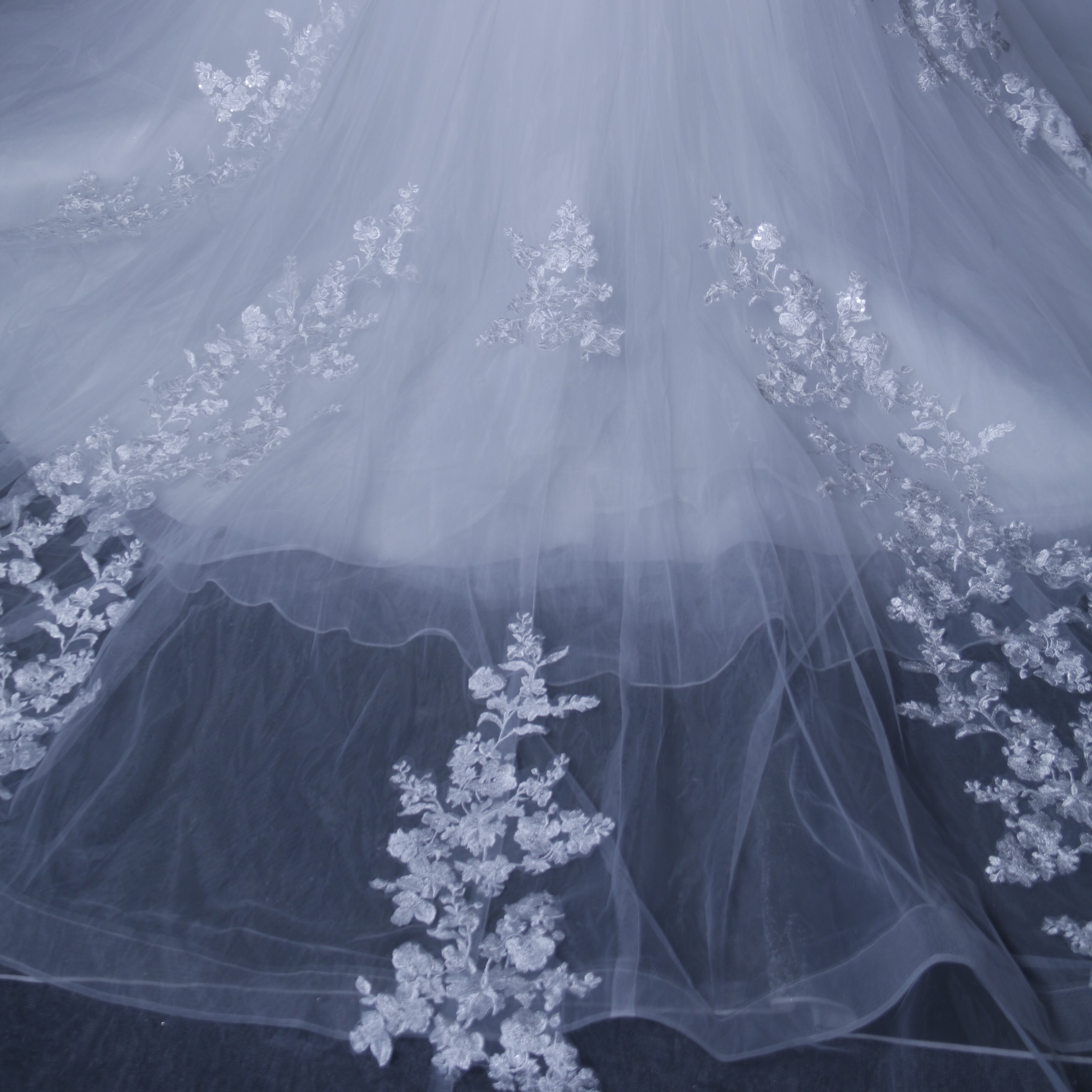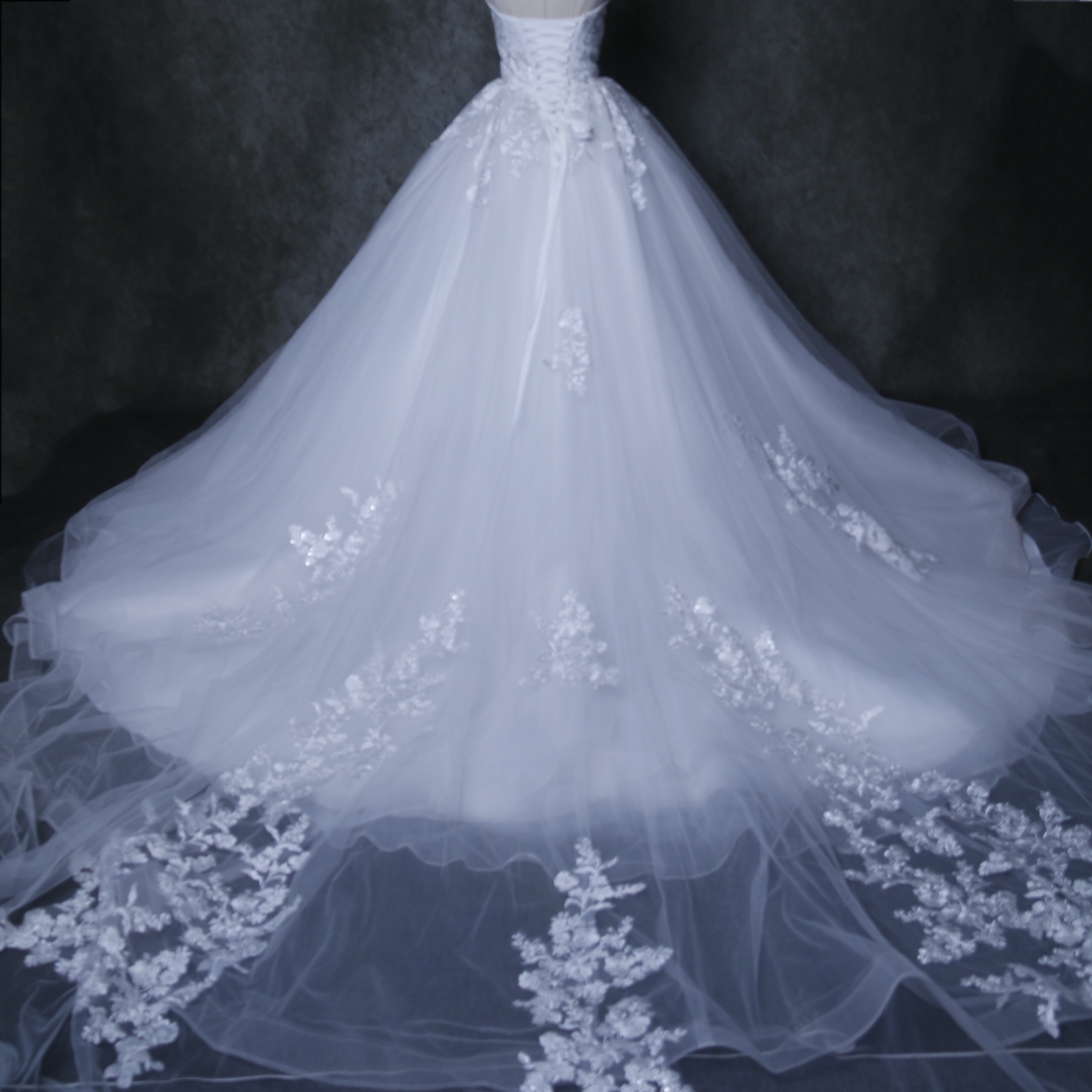 高品質! ホワイト 上品レース ウエディングドレス キラキラスパンコール 華やかなトレーン 結婚式