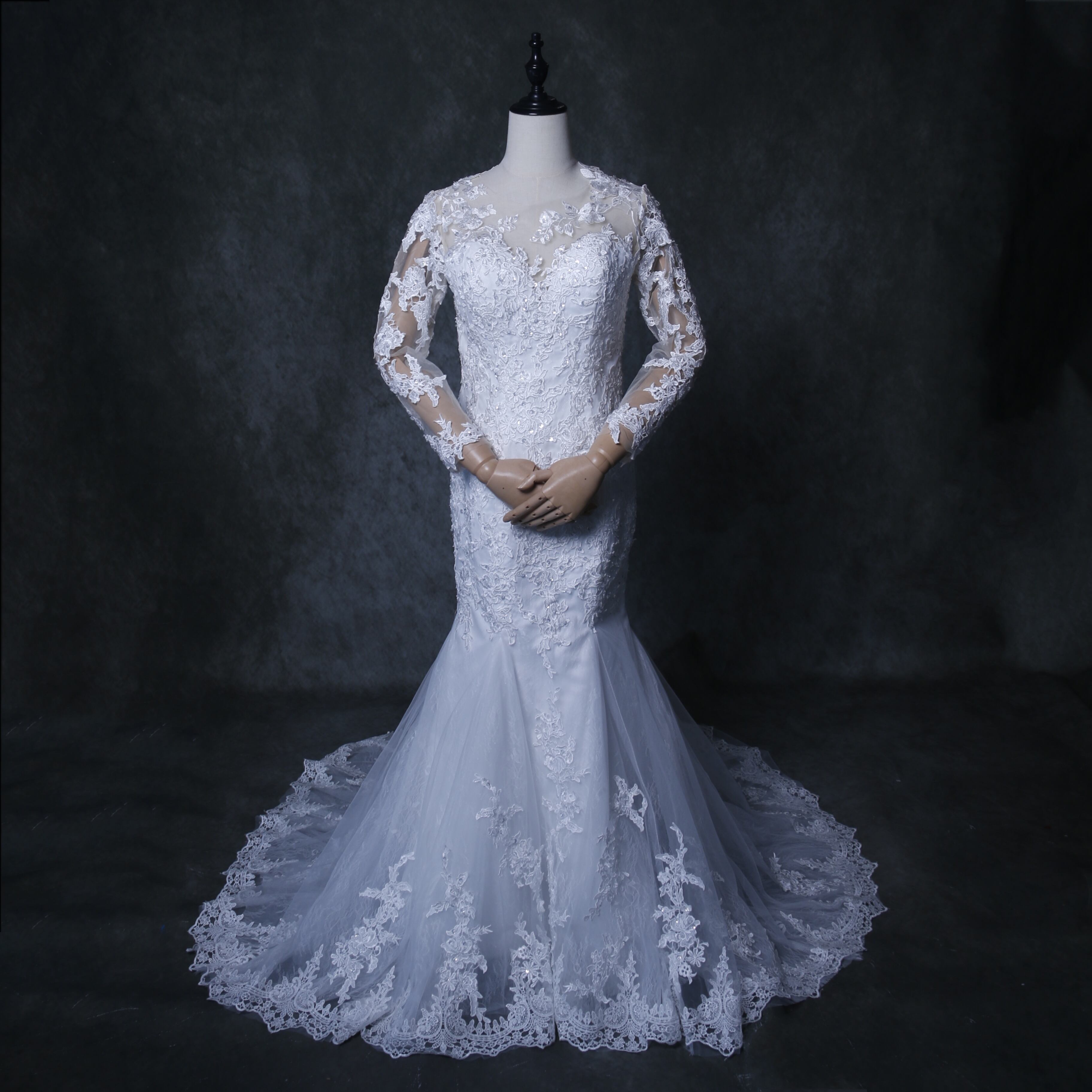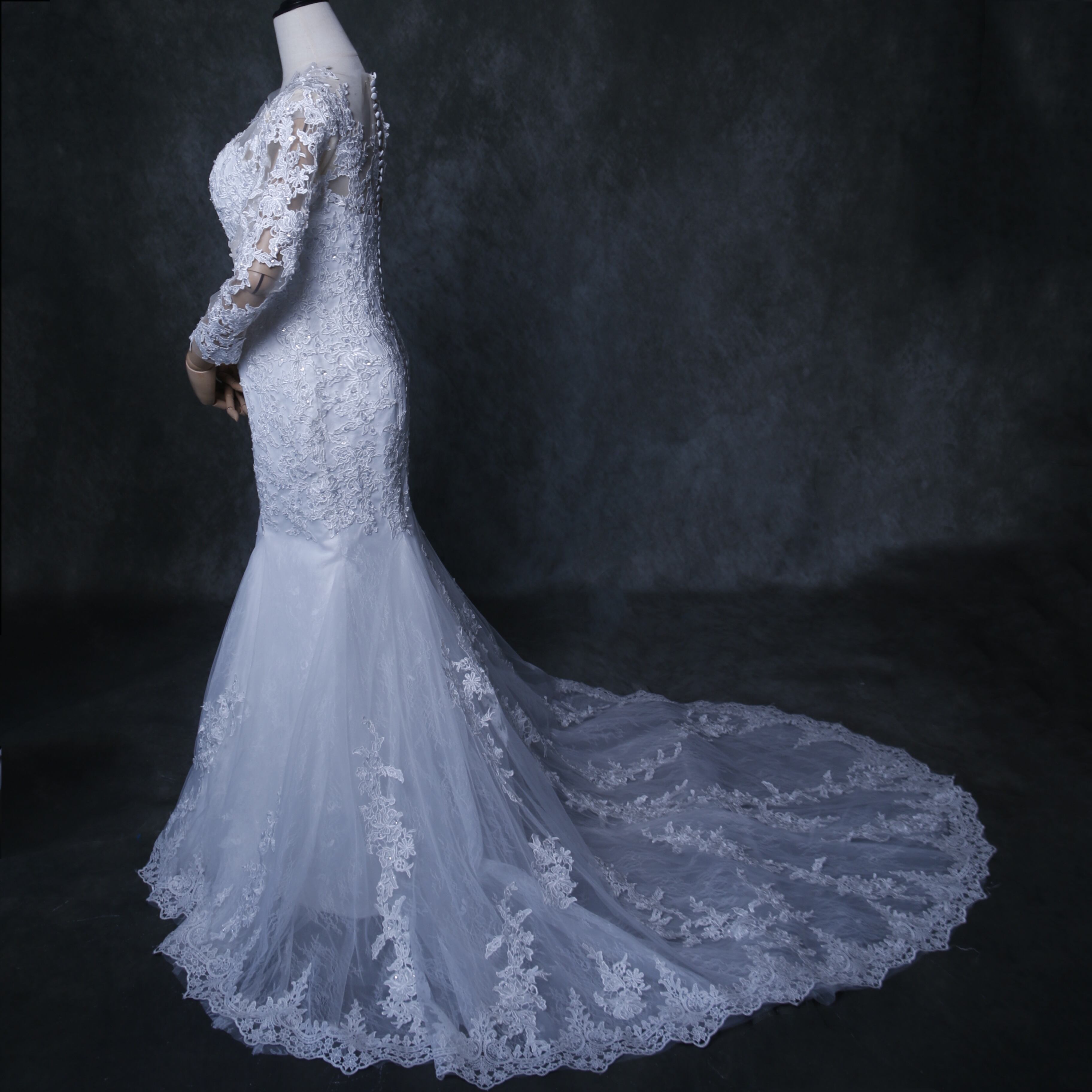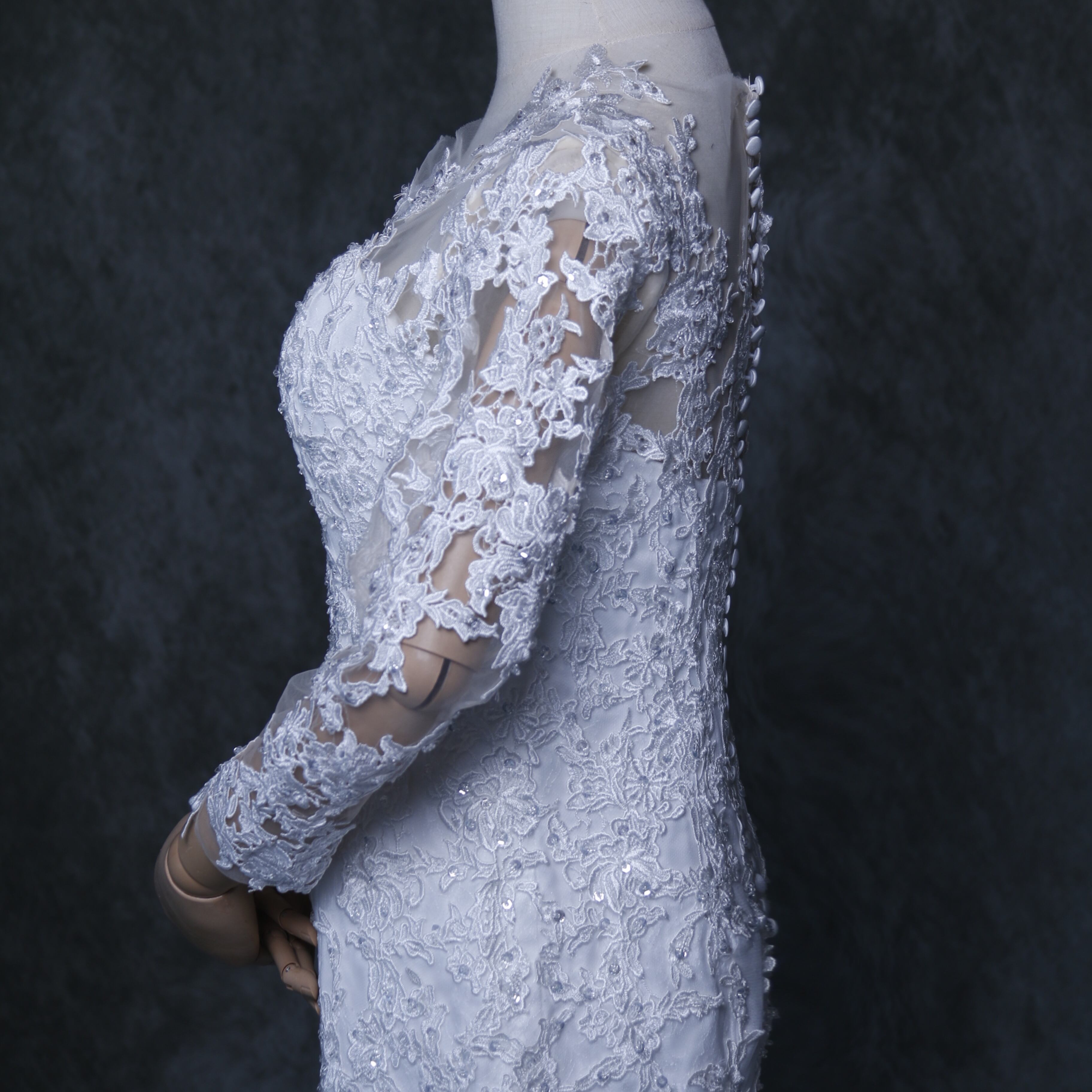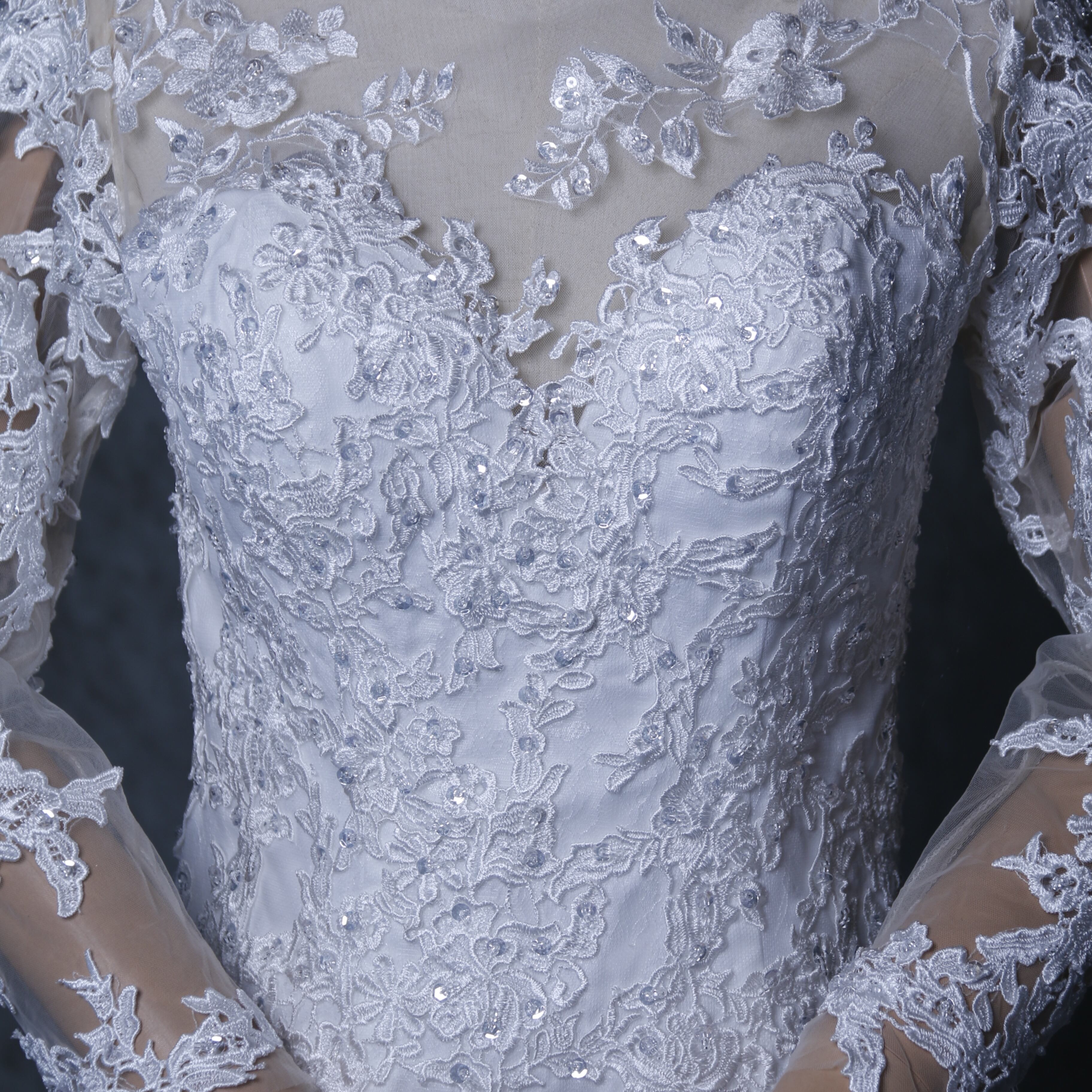 ハンドメイド キラキラスパンコール上品レース ウエディングドレス 長袖 華やかなトレーン 結婚式