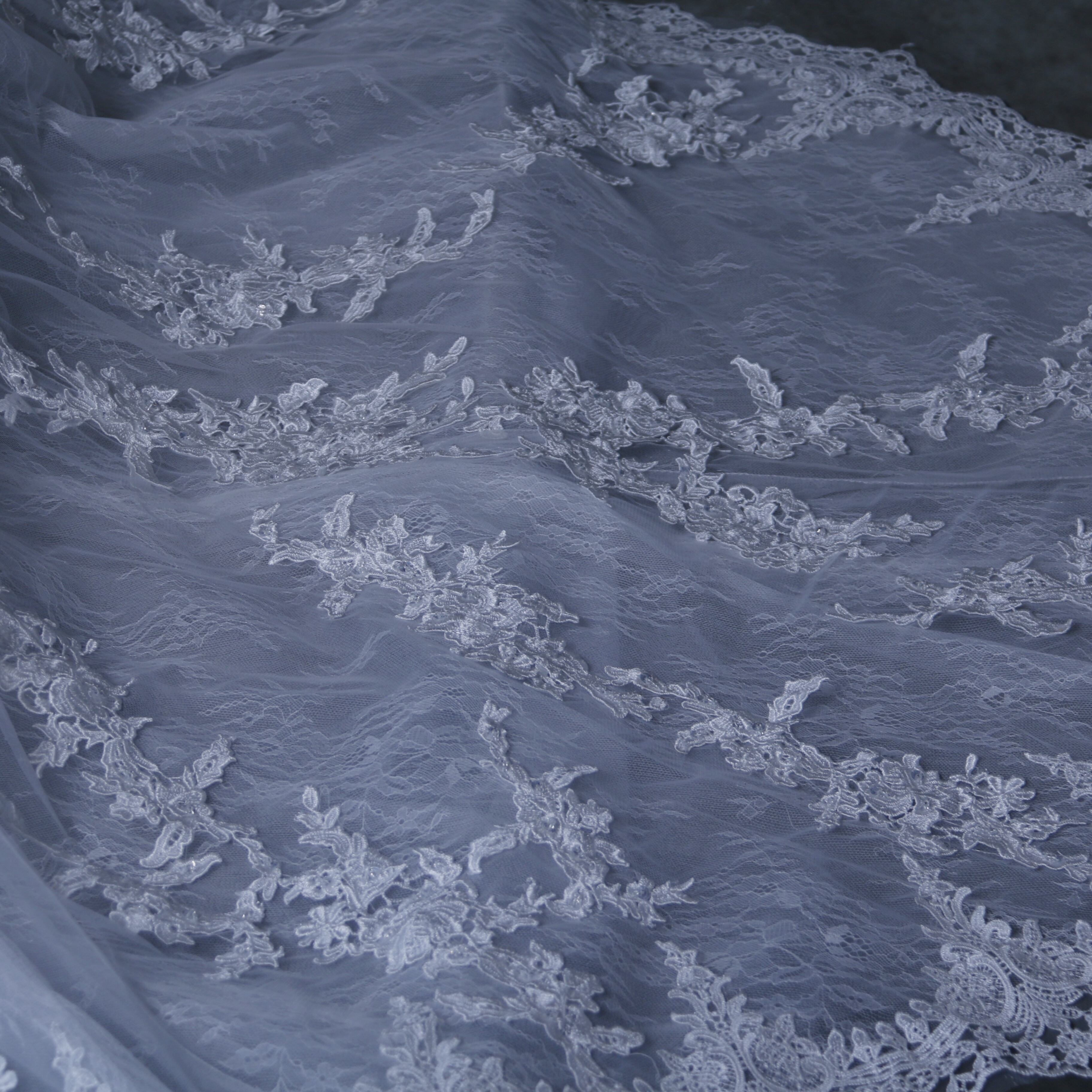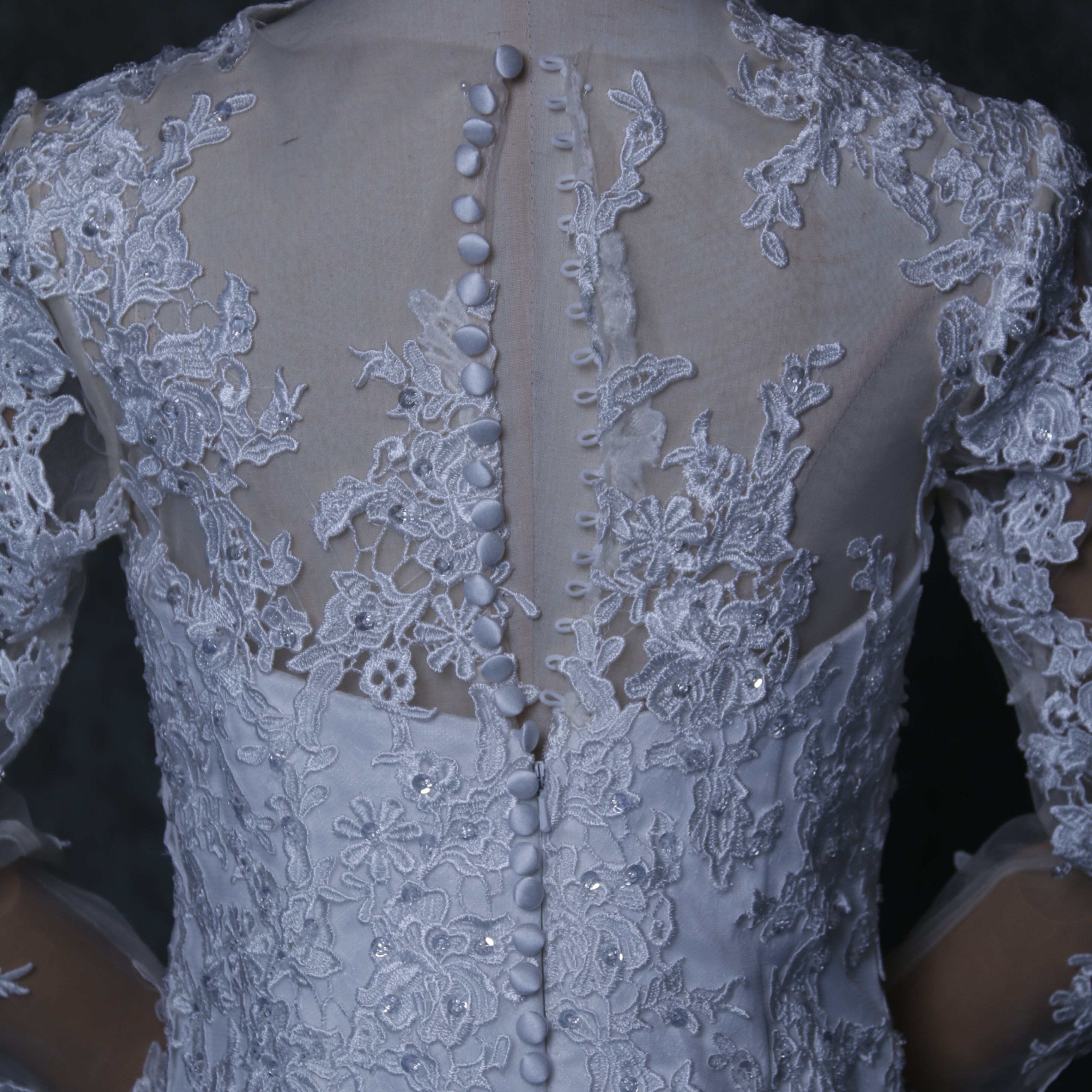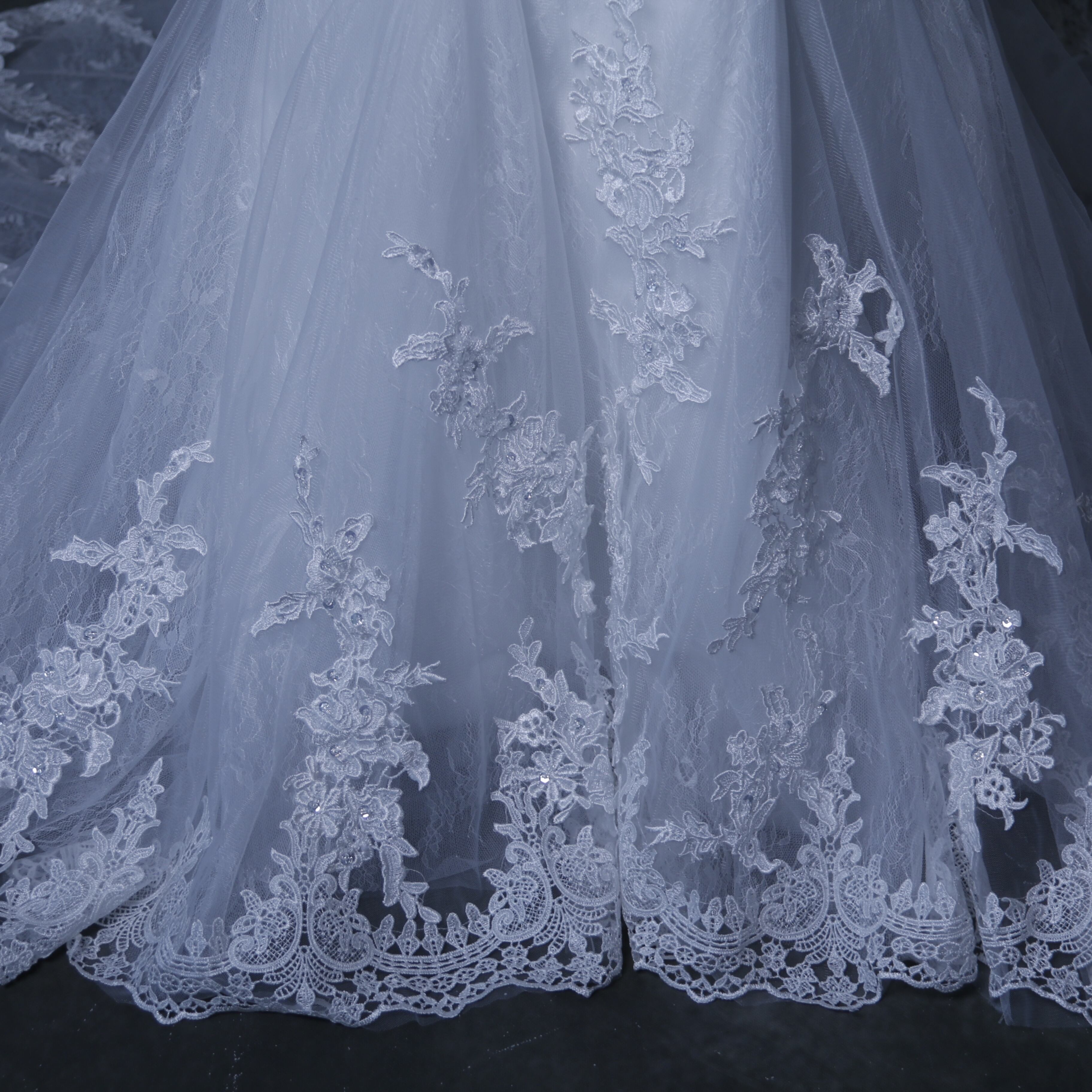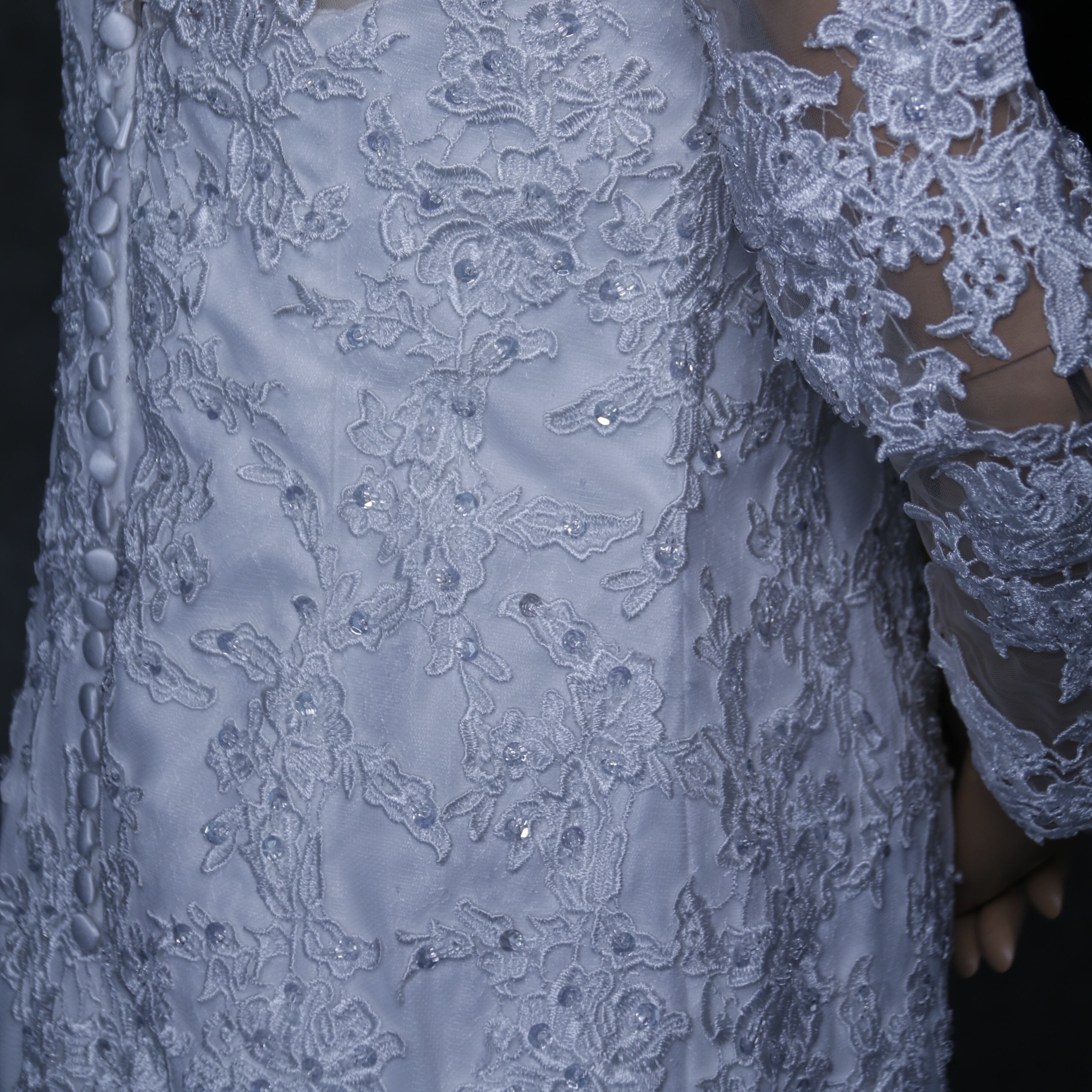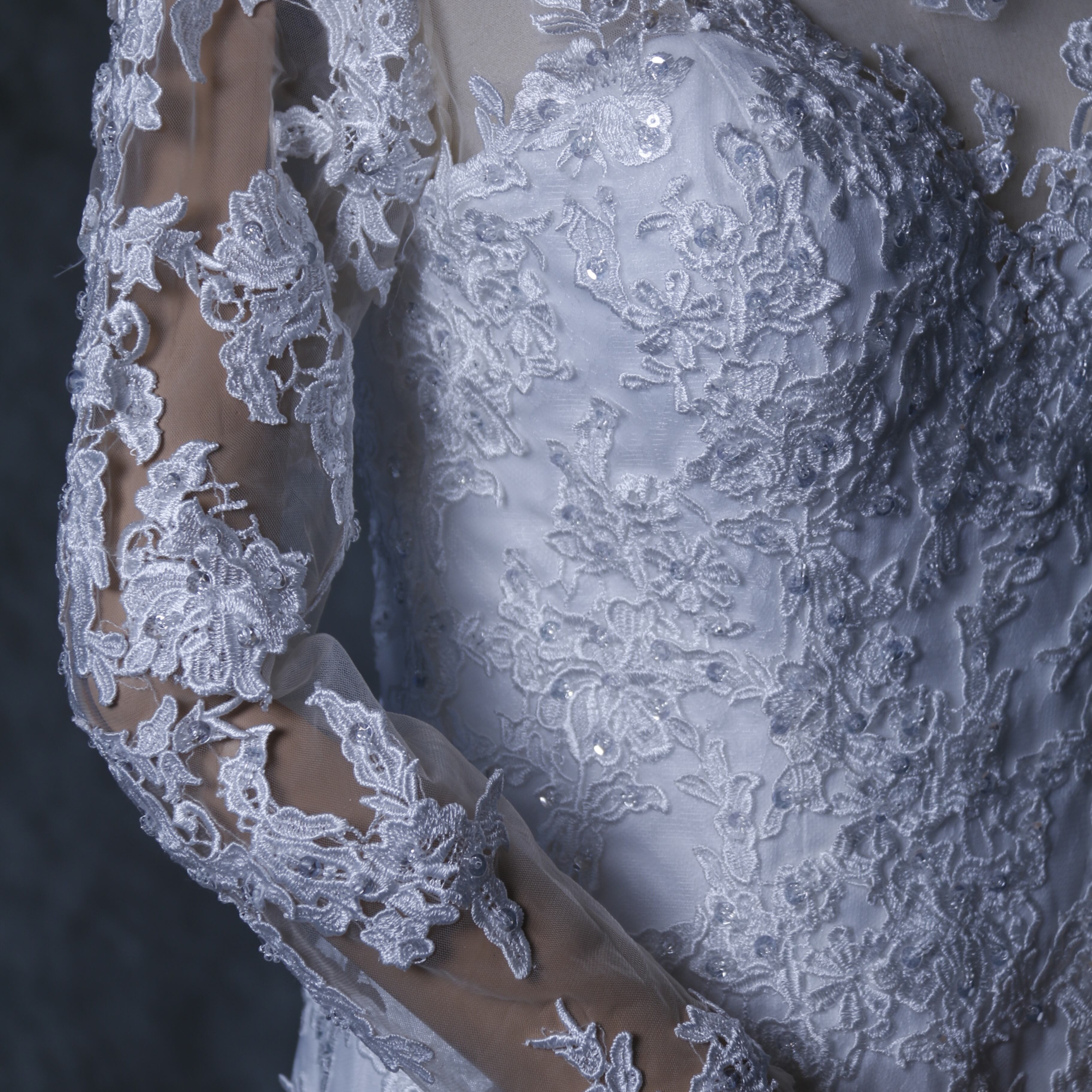 ハンドメイド キラキラスパンコール上品レース ウエディングドレス 長袖 華やかなトレーン 結婚式