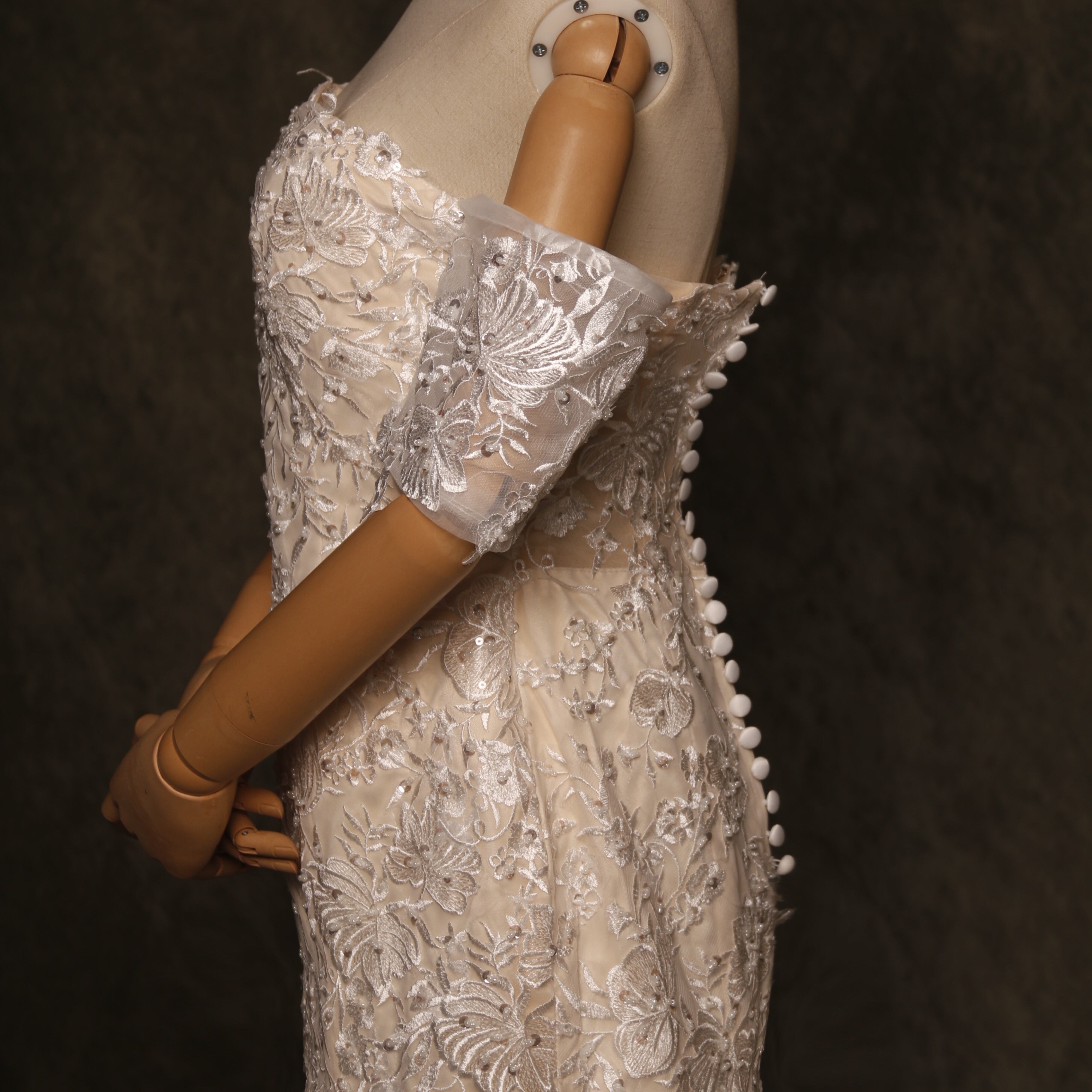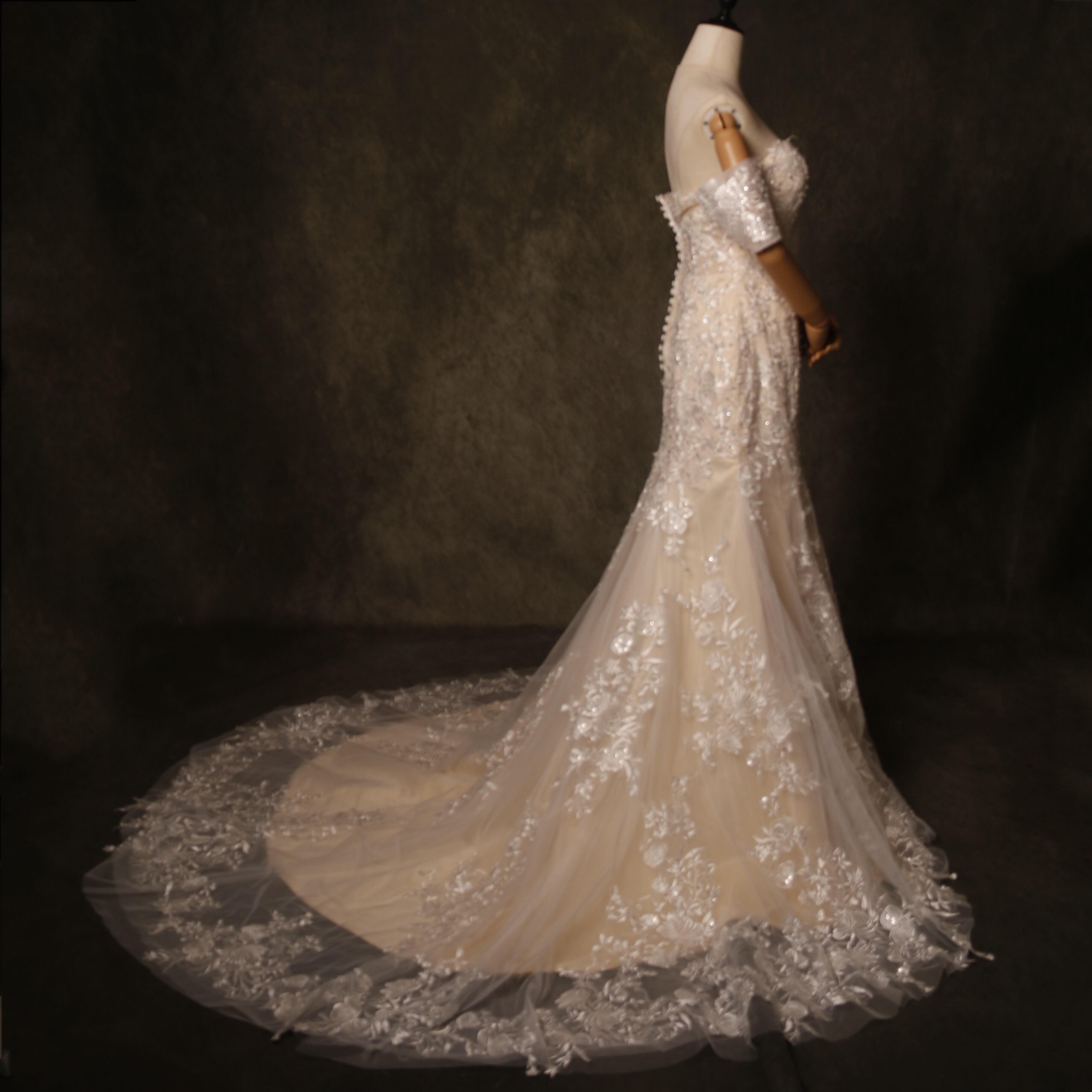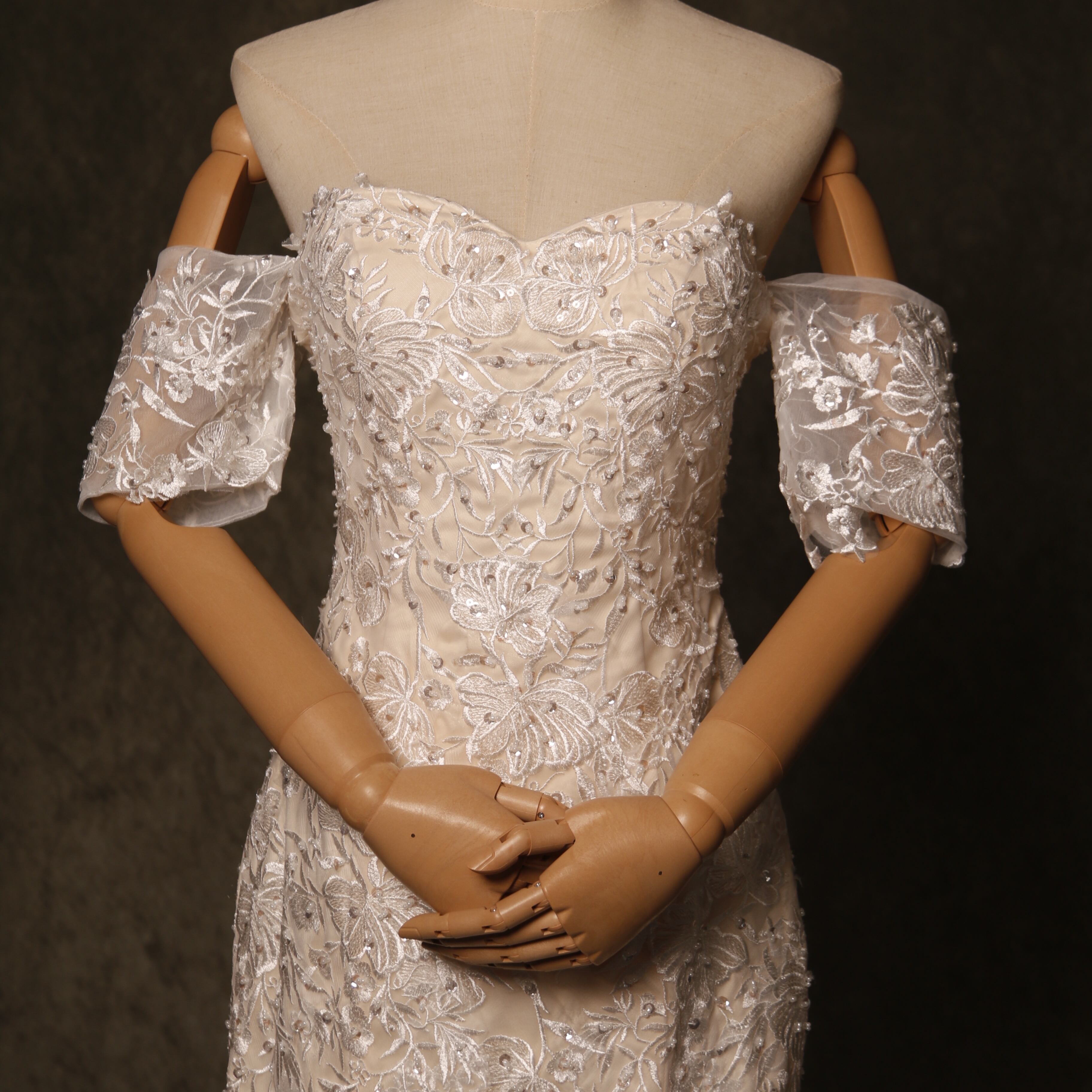 輝きな光彩を放つ 贅沢な小花総レース キラキラのハンドビーディング カラードレス 華やかなトレマーメイドライン前撮り/花嫁/