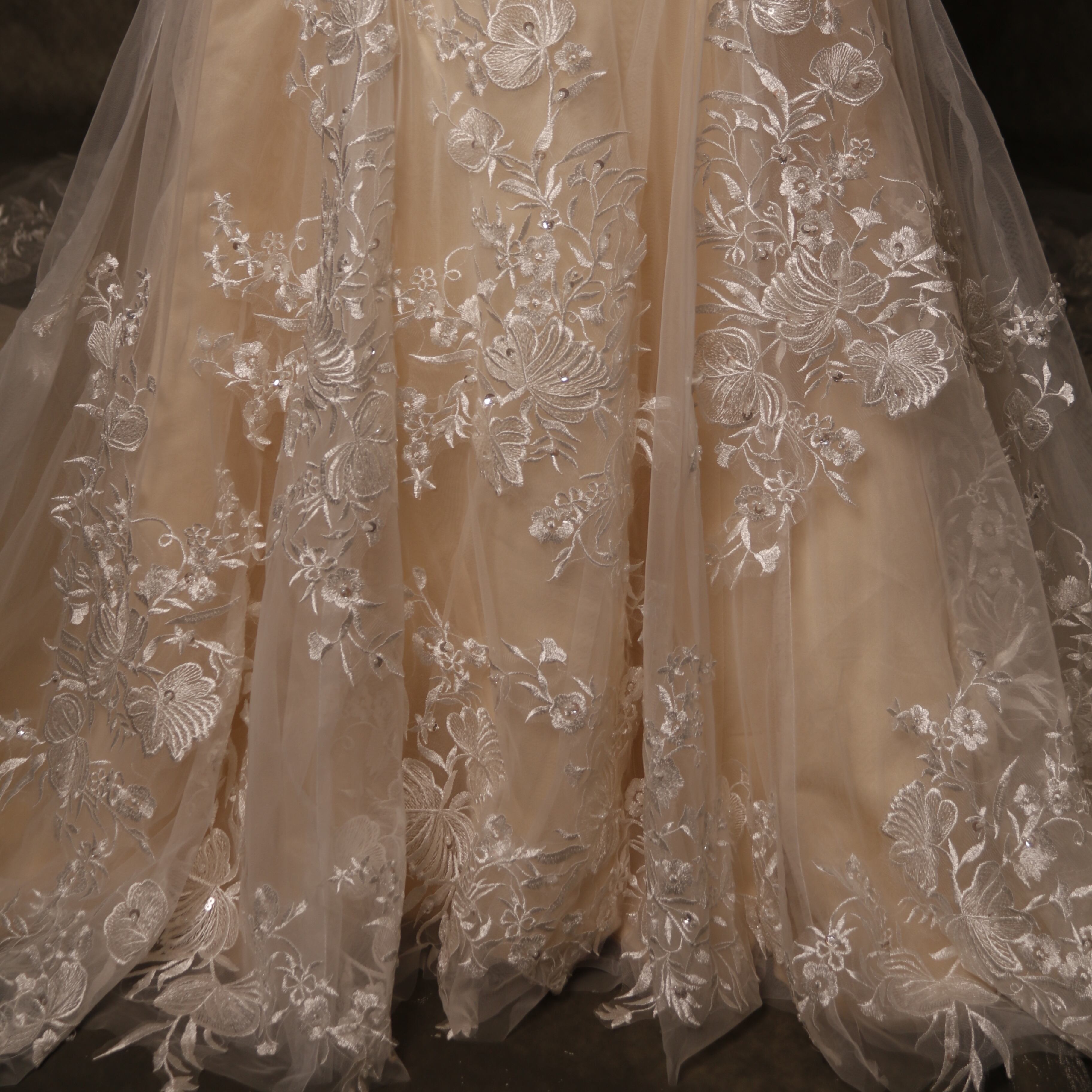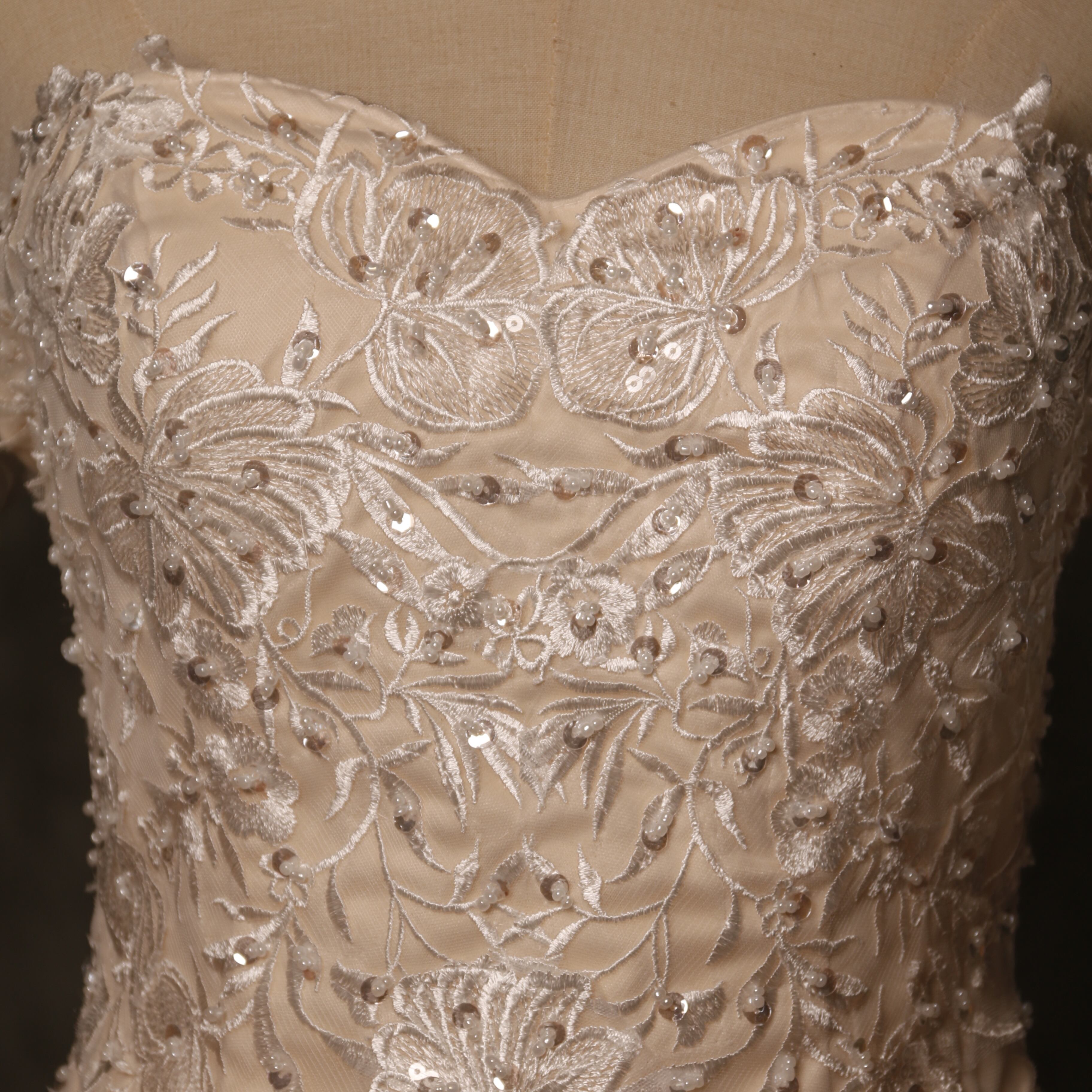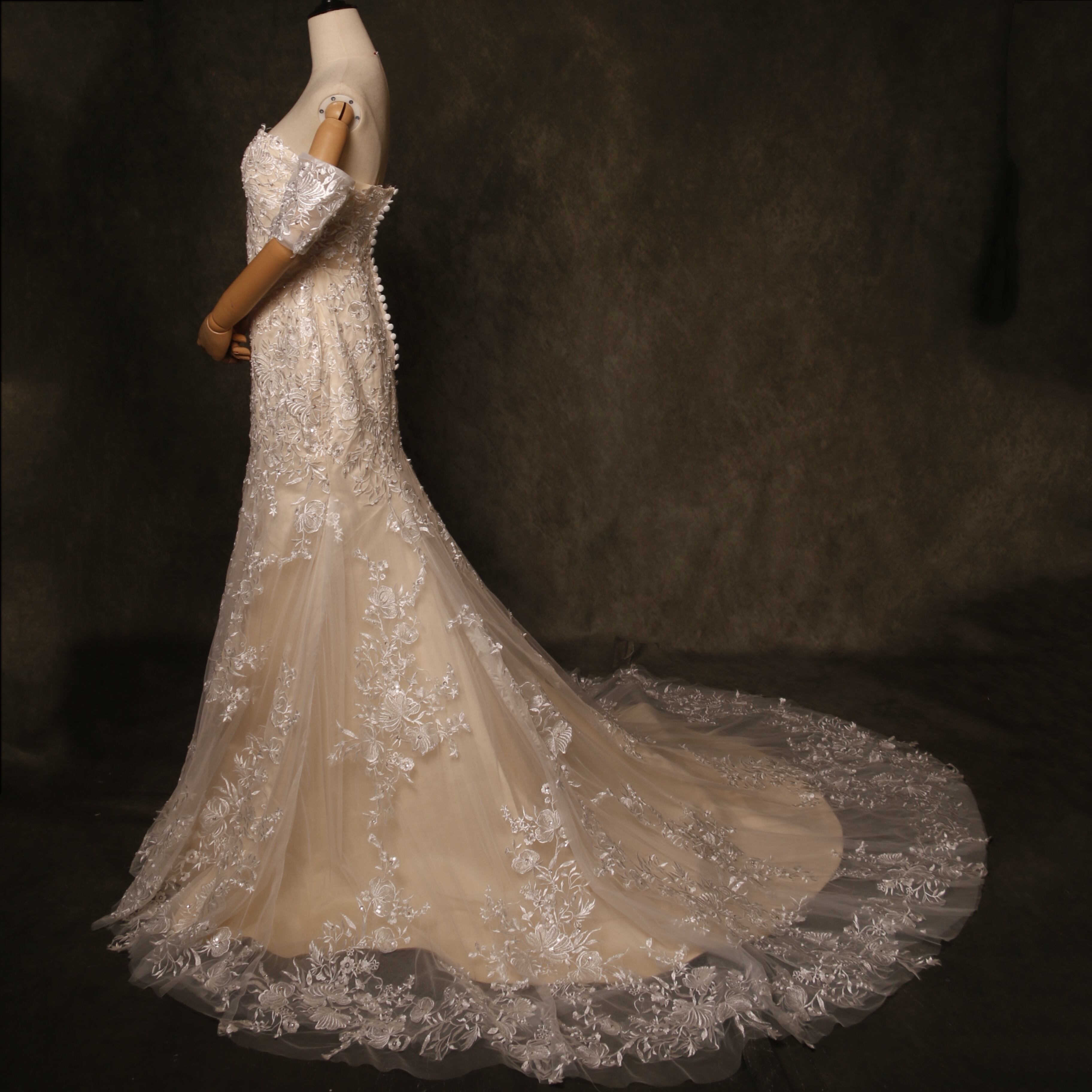 輝きな光彩を放つ 贅沢な小花総レース キラキラのハンドビーディング カラードレス 華やかなトレマーメイドライン前撮り/花嫁/