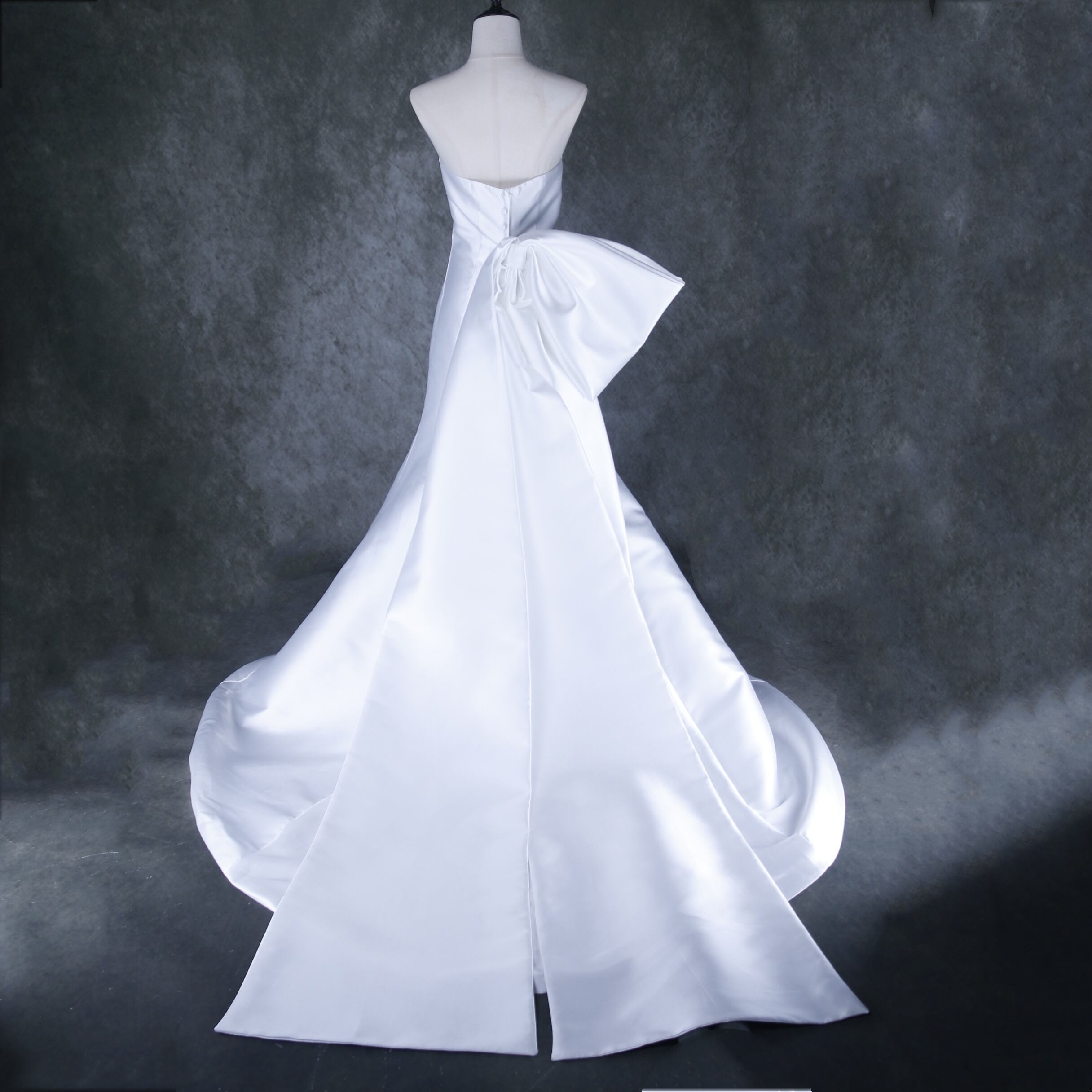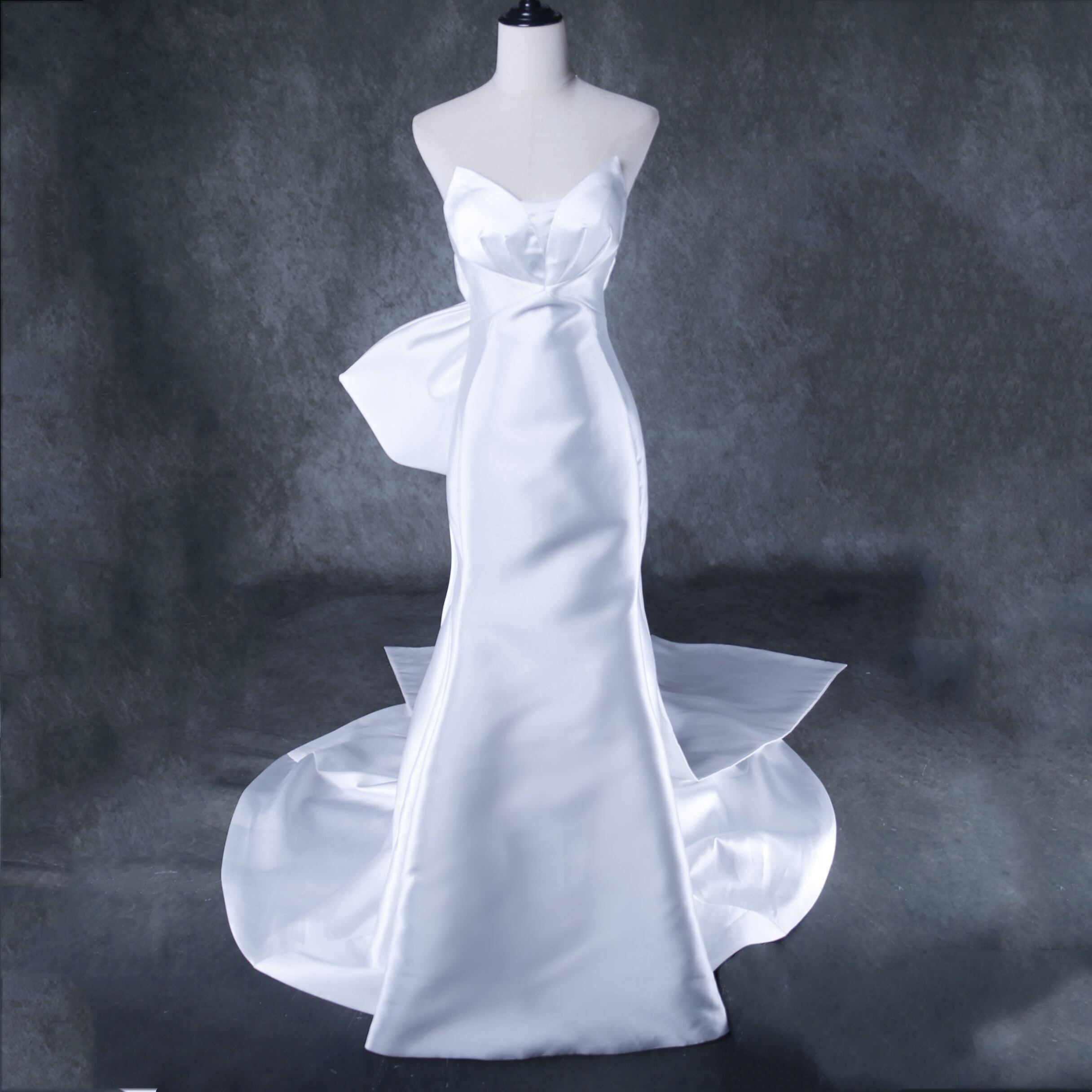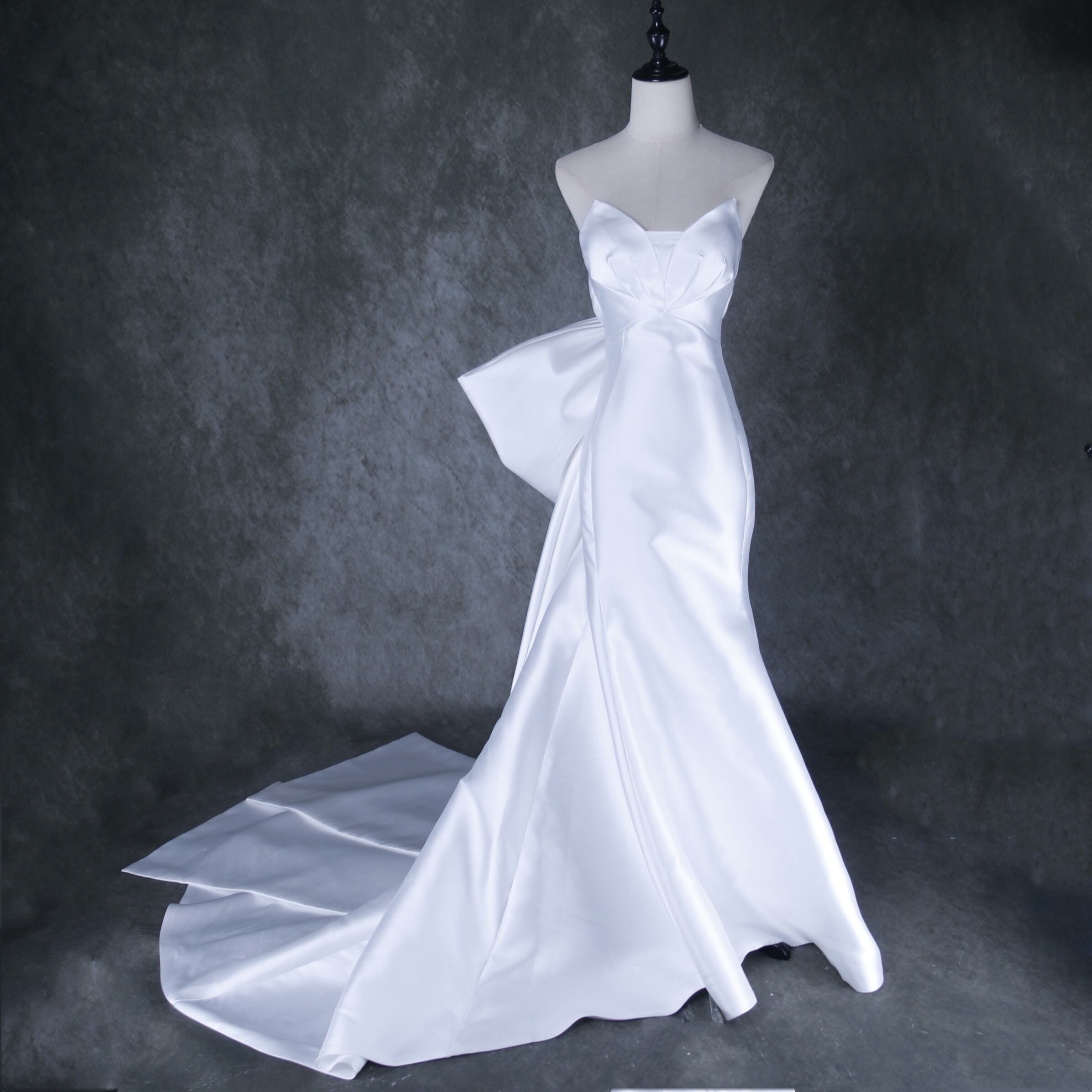 送料無料!ホワイ ウエディングドレス ふっくら柔らかなバックリボン マーメイドライン /前撮り/花嫁/結婚式
