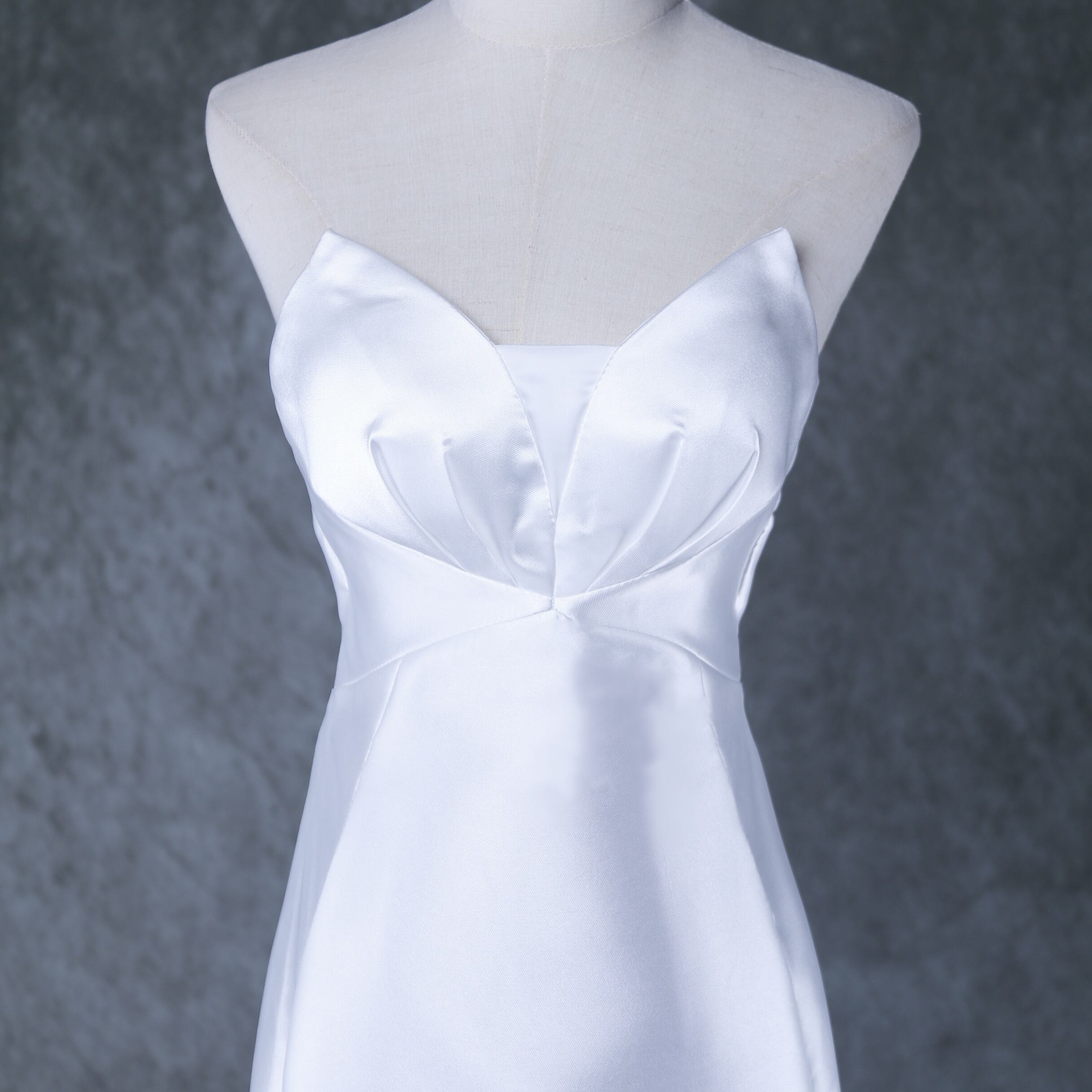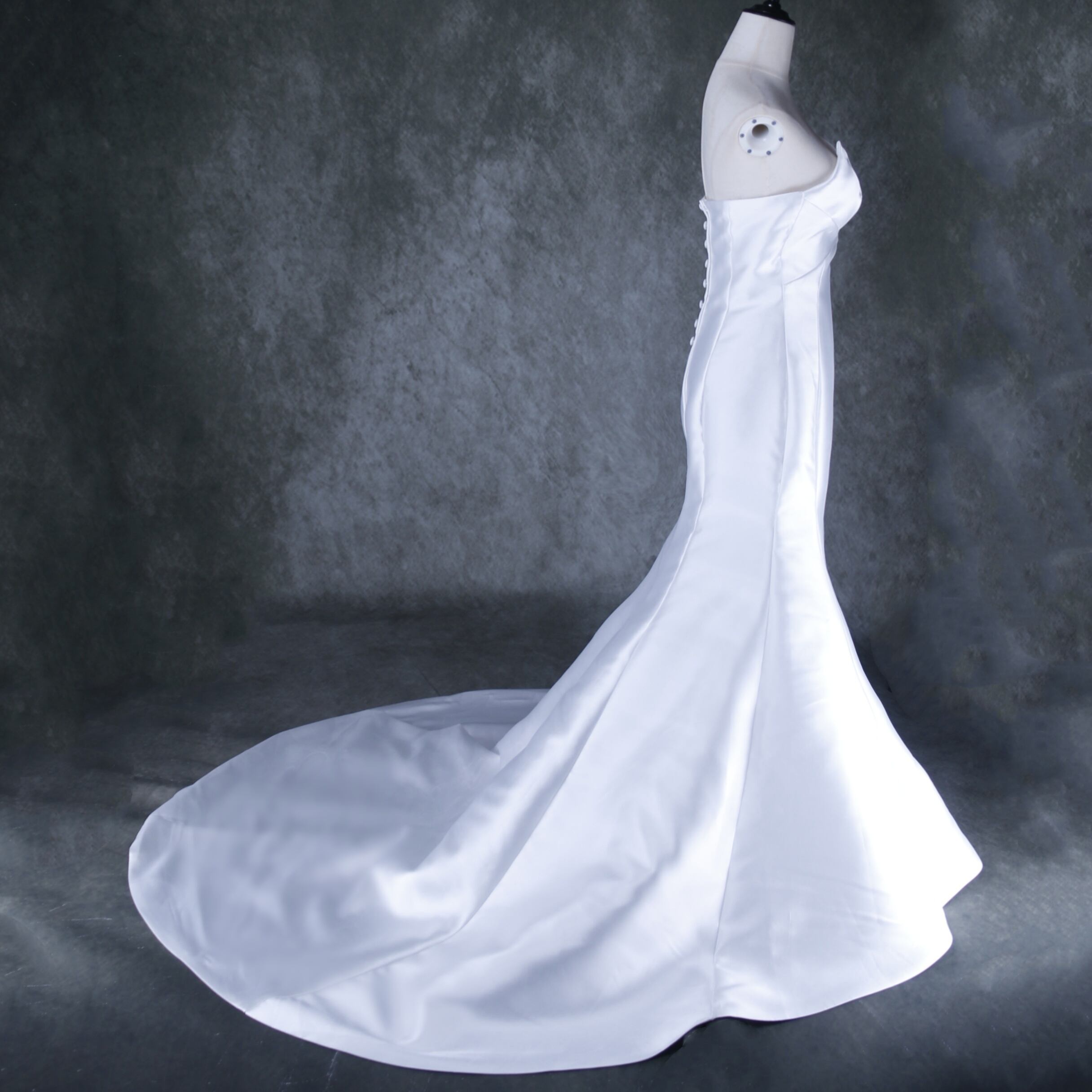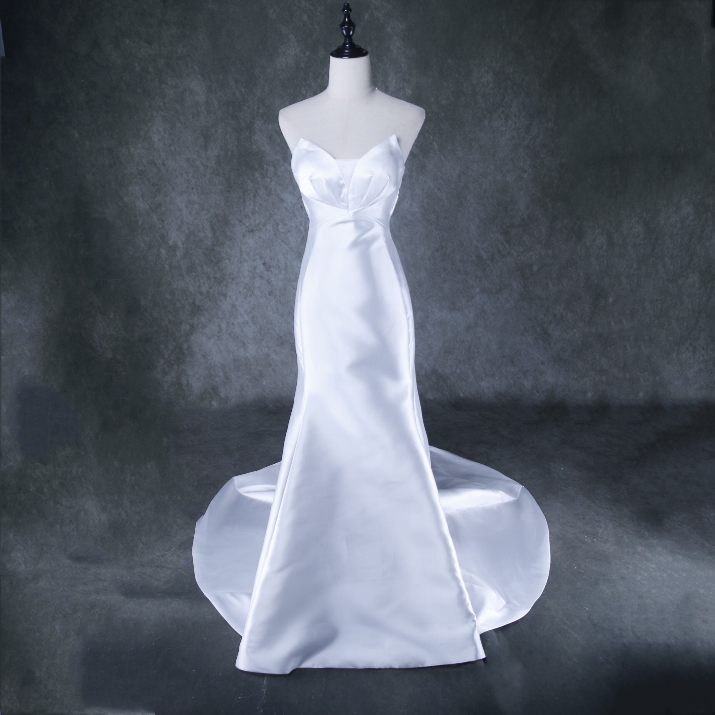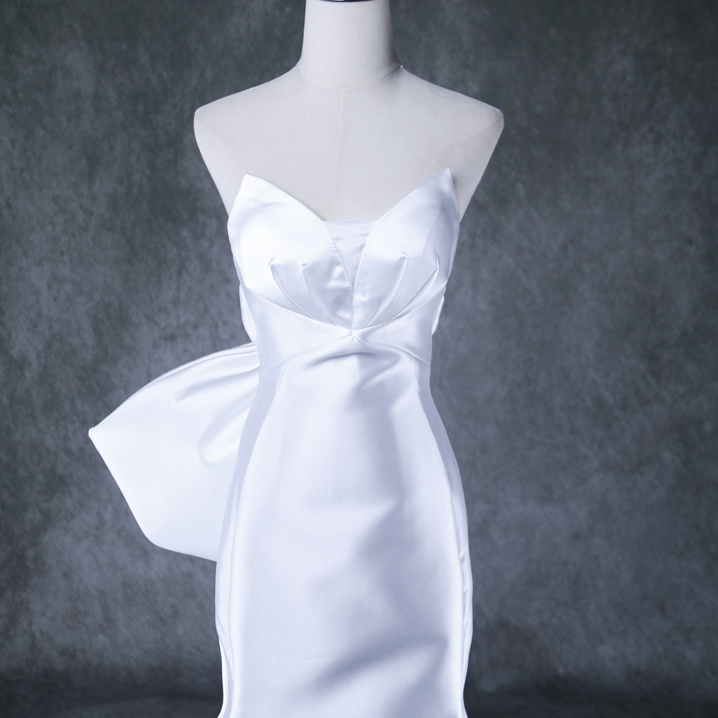 送料無料!ホワイ ウエディングドレス ふっくら柔らかなバックリボン マーメイドライン /前撮り/花嫁/結婚式