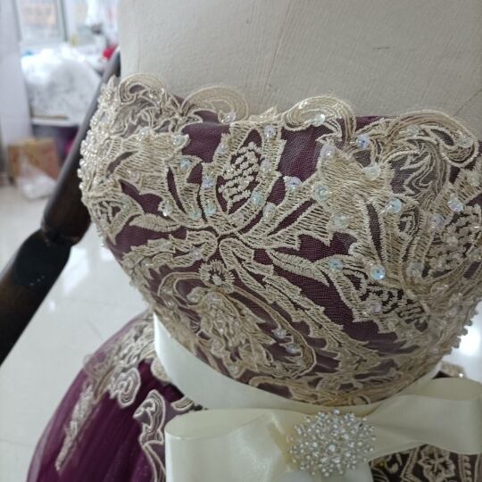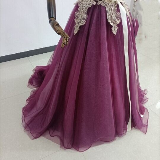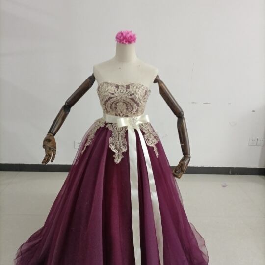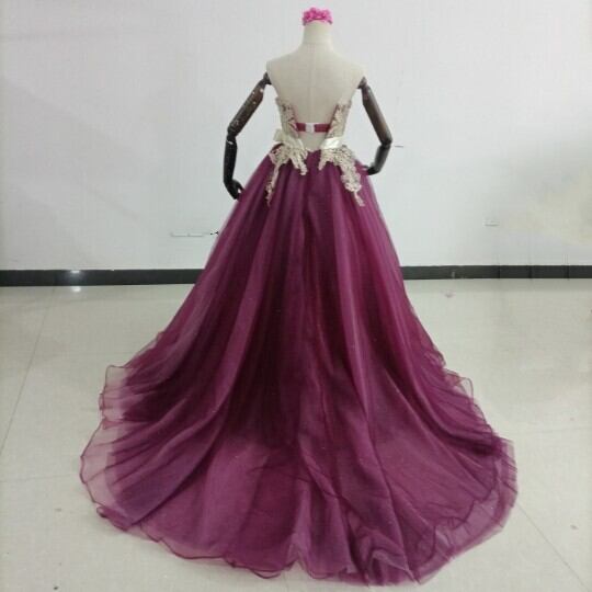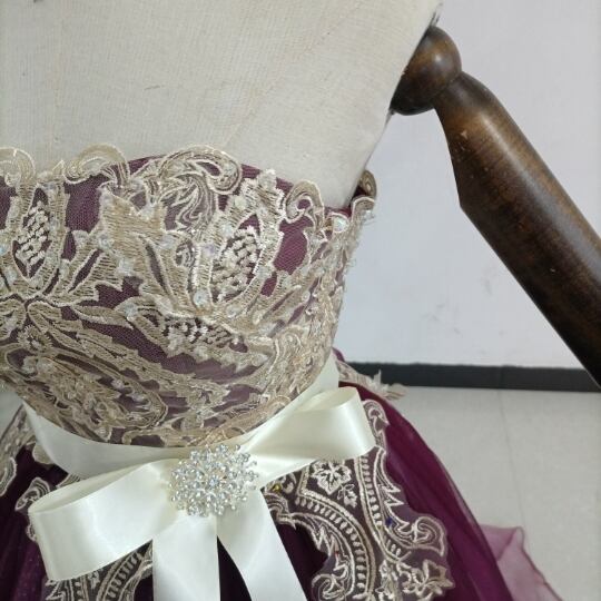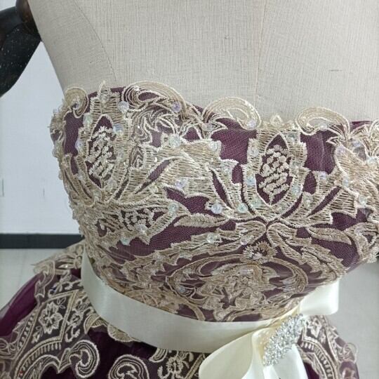 高品質! カラードレス 3D立体レース刺繍 キラキラチュール ベアトップ 結婚式/披露宴