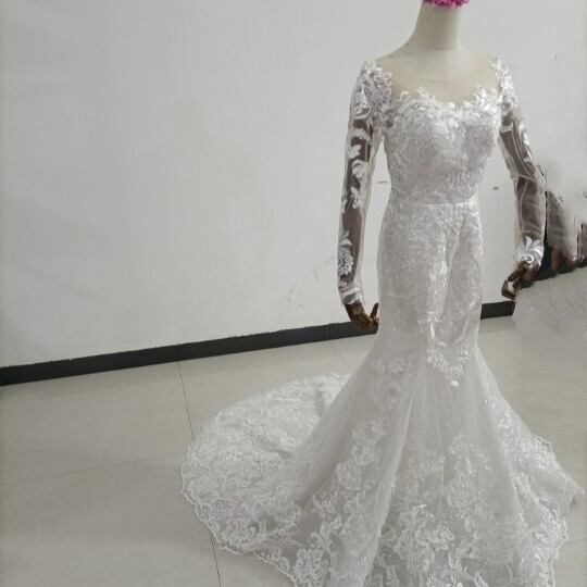 高品質! ウエディングドレス 3D立体レース刺繍 マーメイドライン 人気上昇