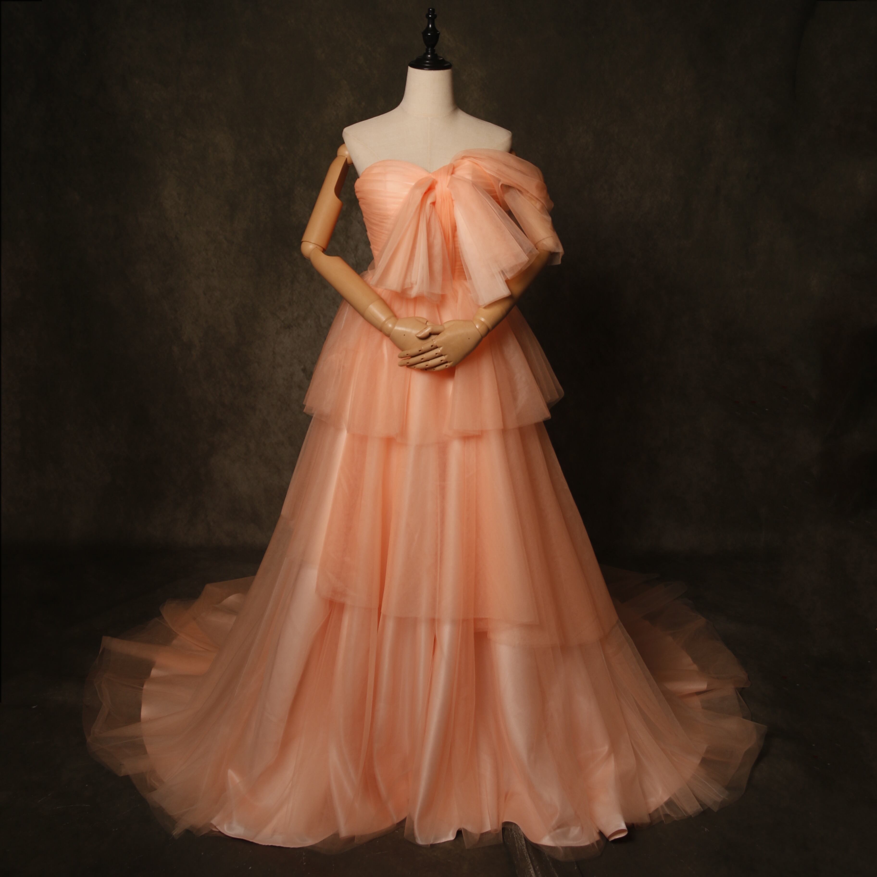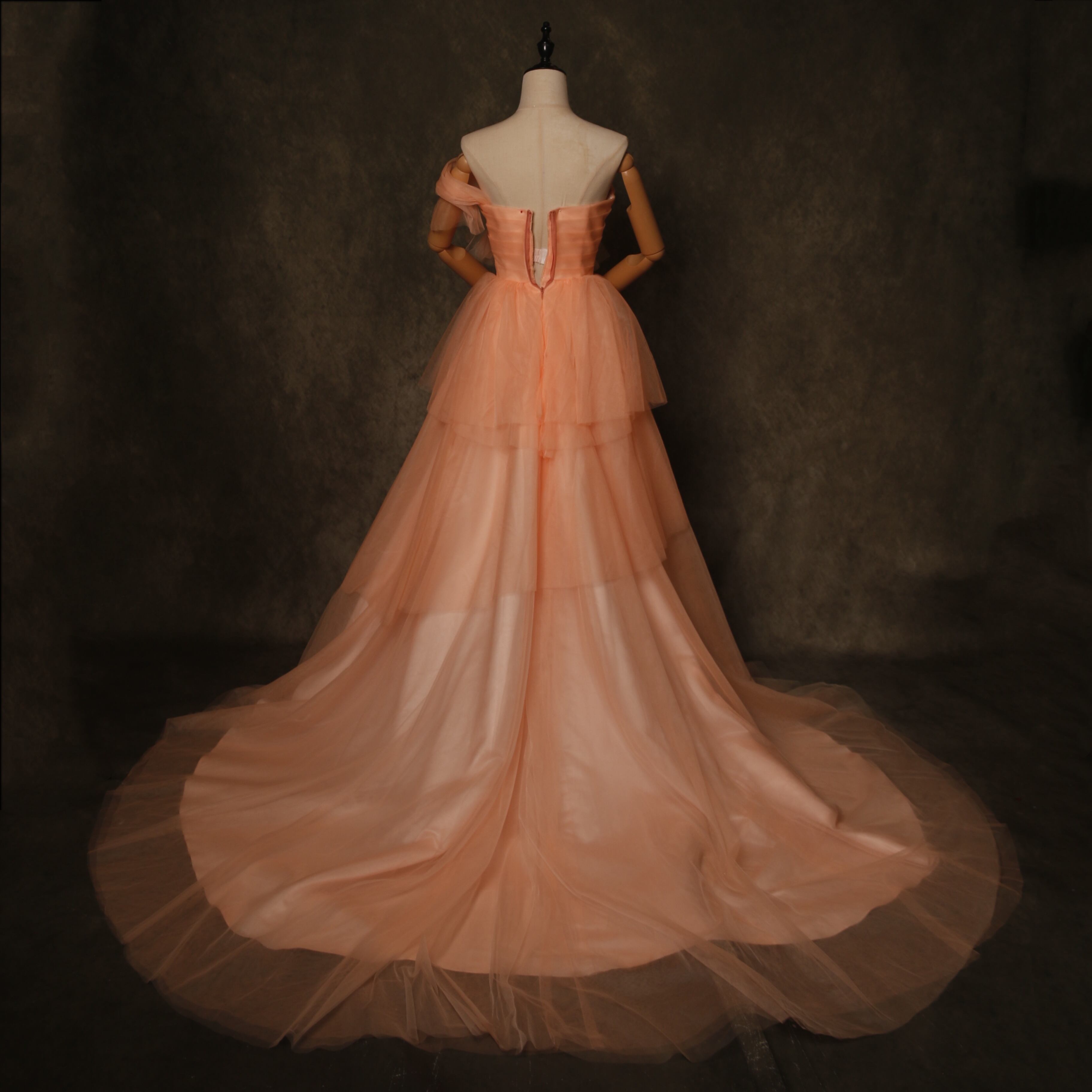 輝きな光彩を放つ オレンジ ワンショルダー カラードレス ソフトチュール 華やかなトレ前撮り/花嫁/