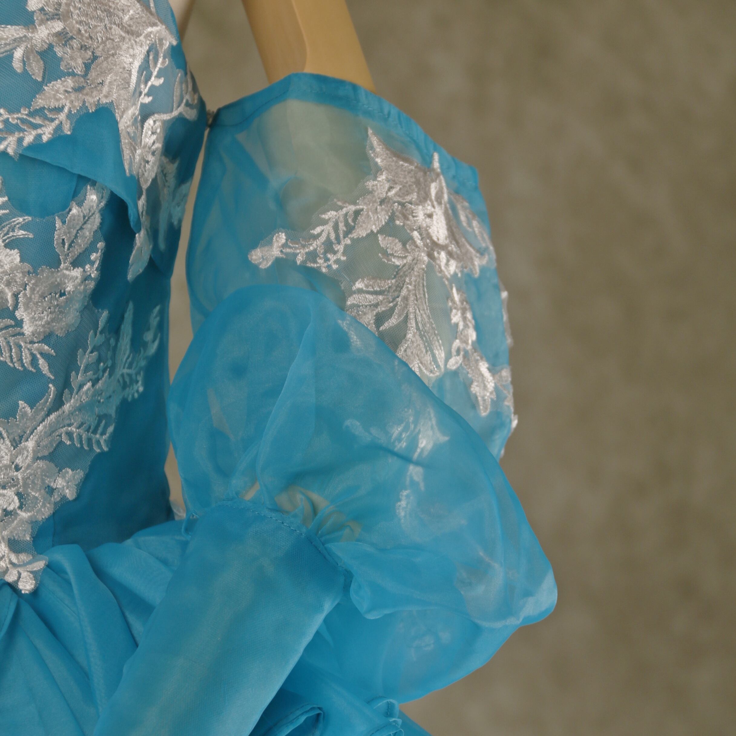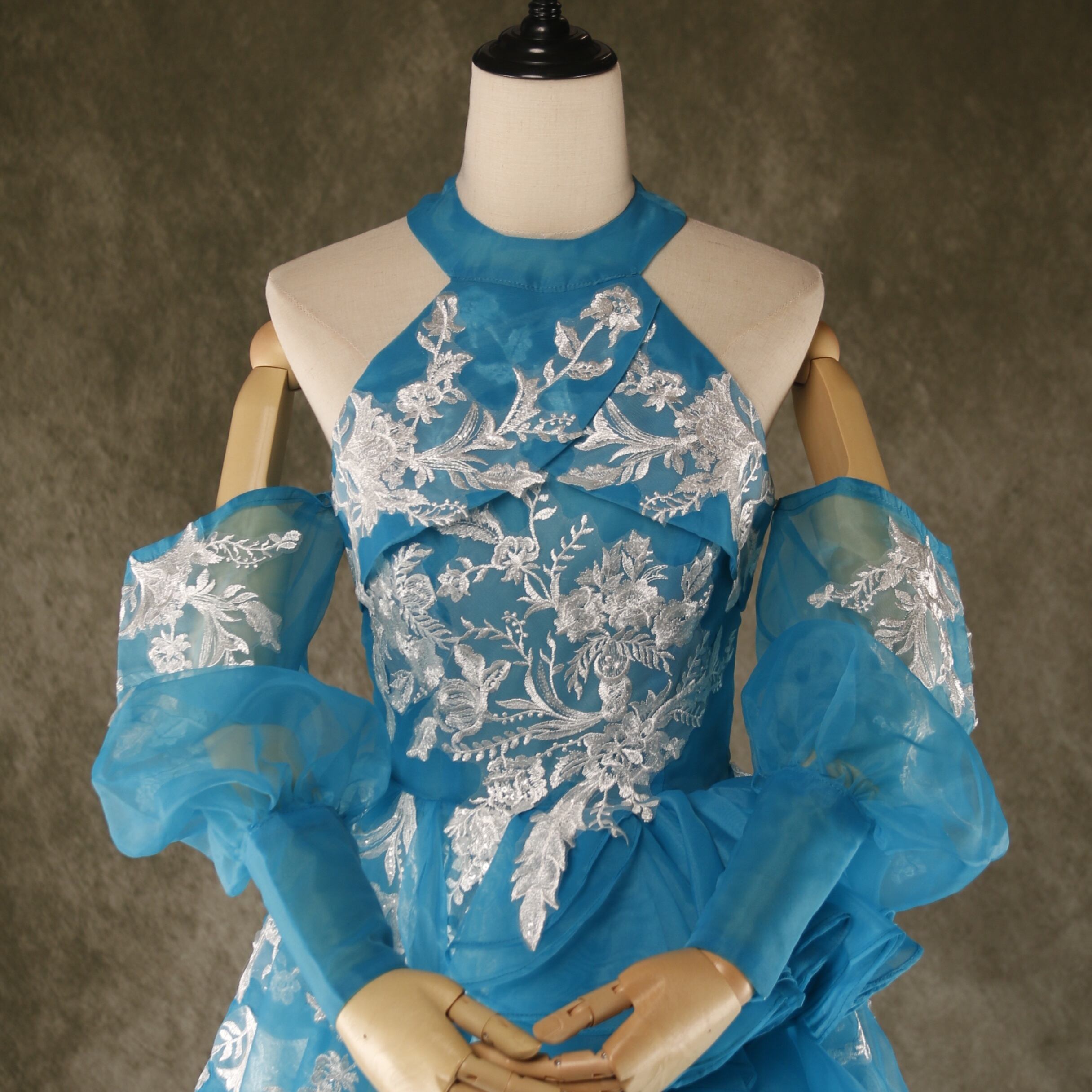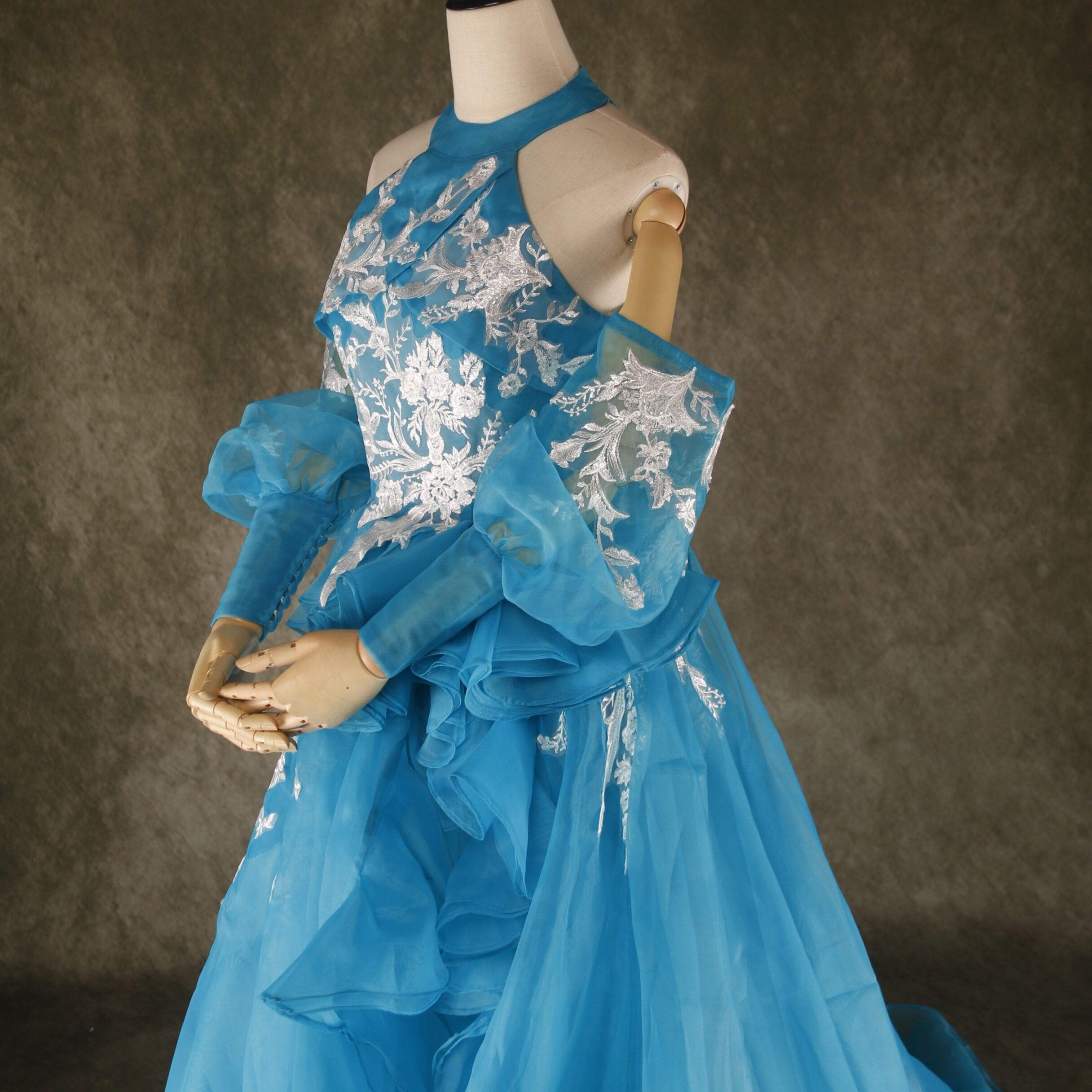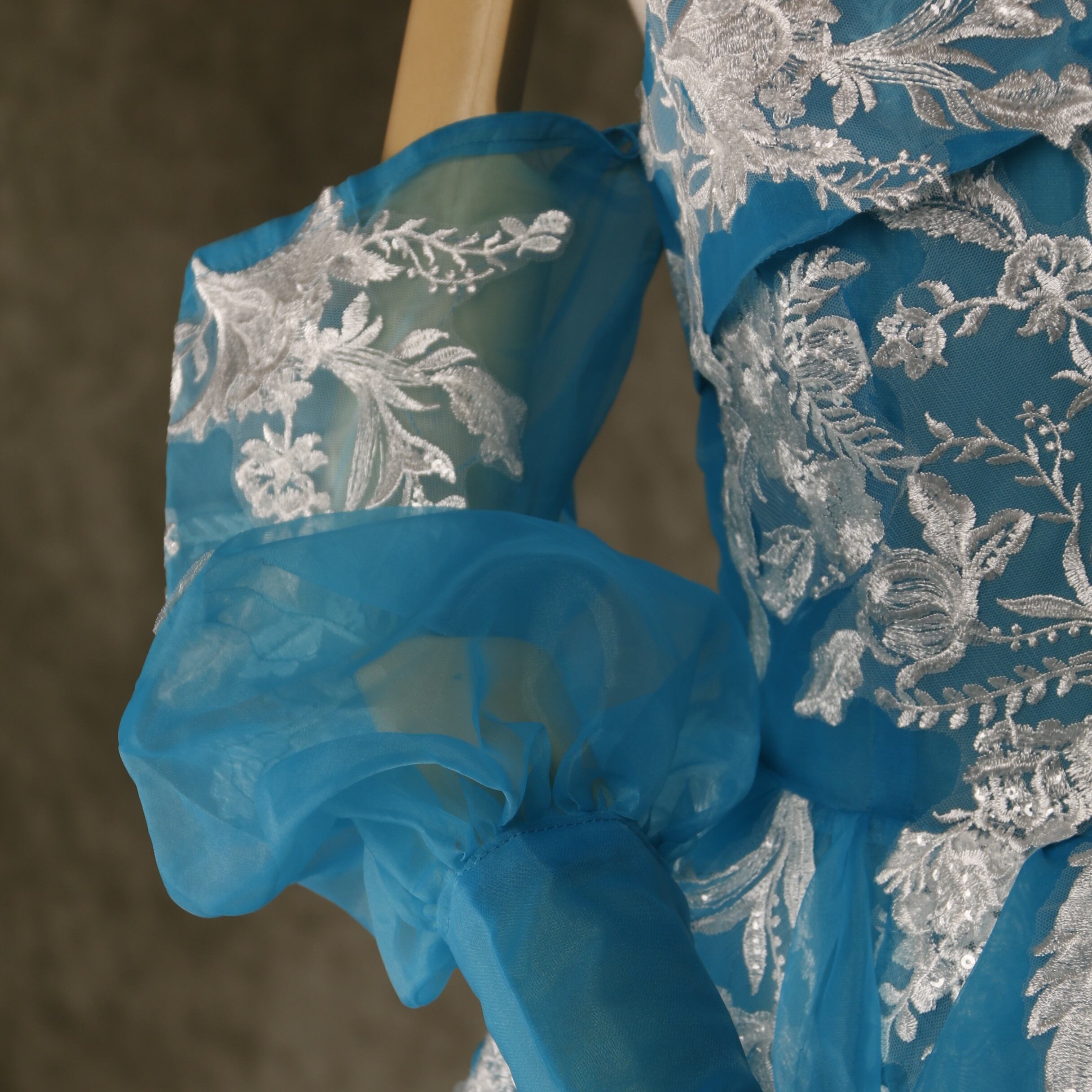 送料無料! 輝きな光彩を放つ 青 上品レース カラードレス オーバードレス 前撮り/花嫁/