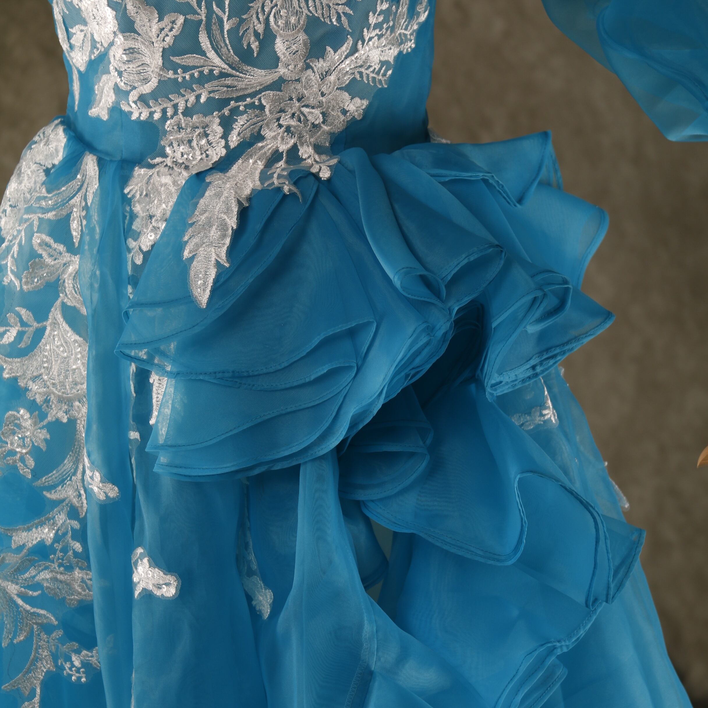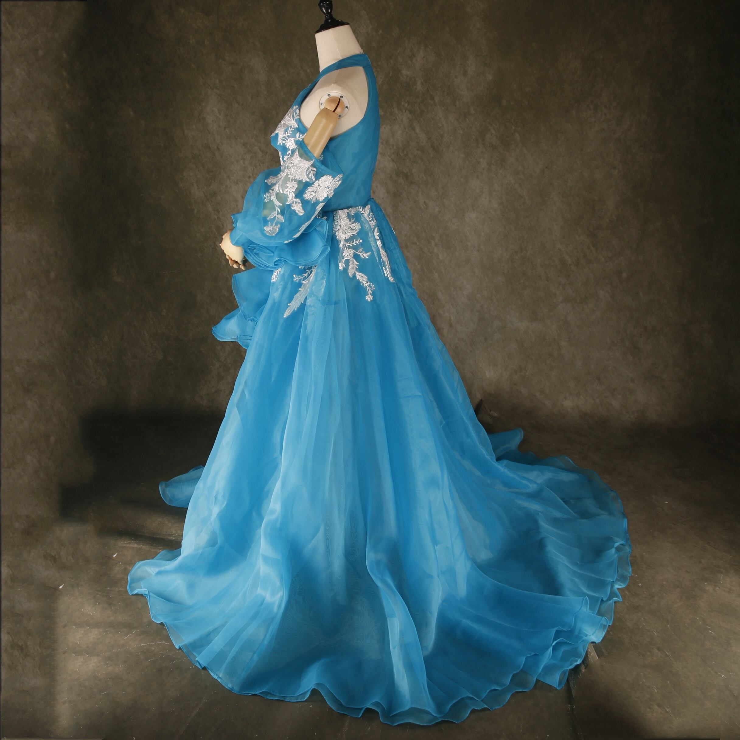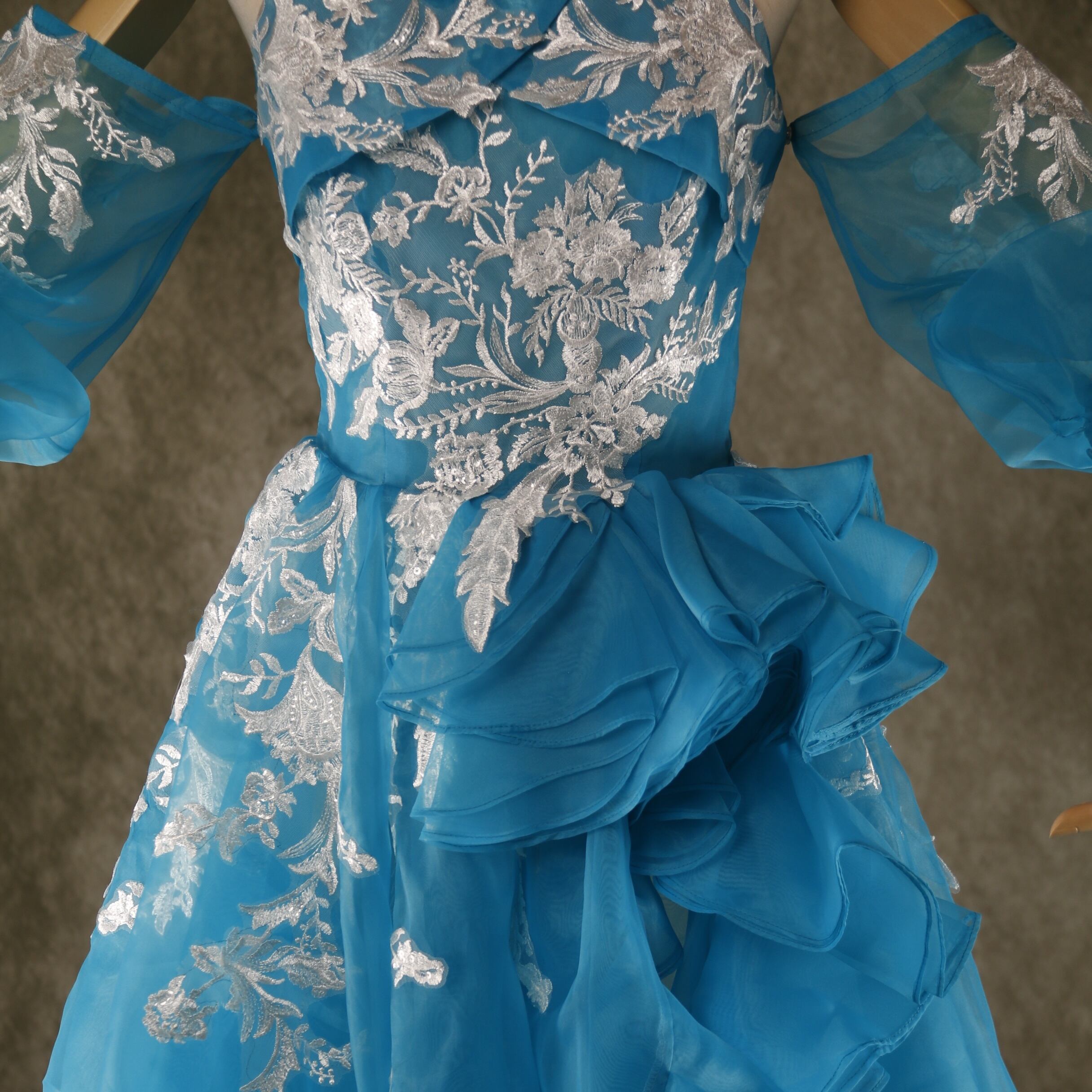 送料無料! 輝きな光彩を放つ 青 上品レース カラードレス オーバードレス 前撮り/花嫁/