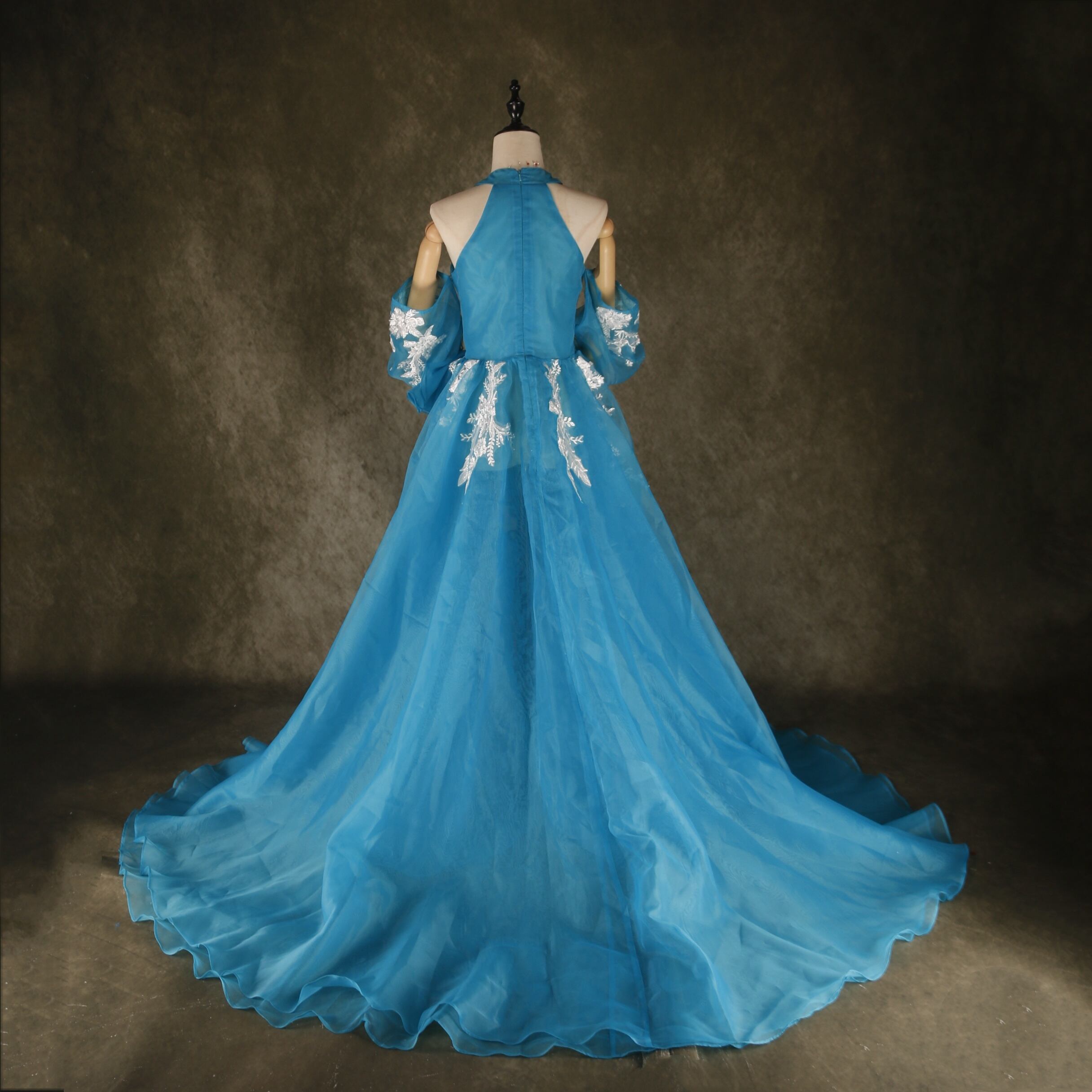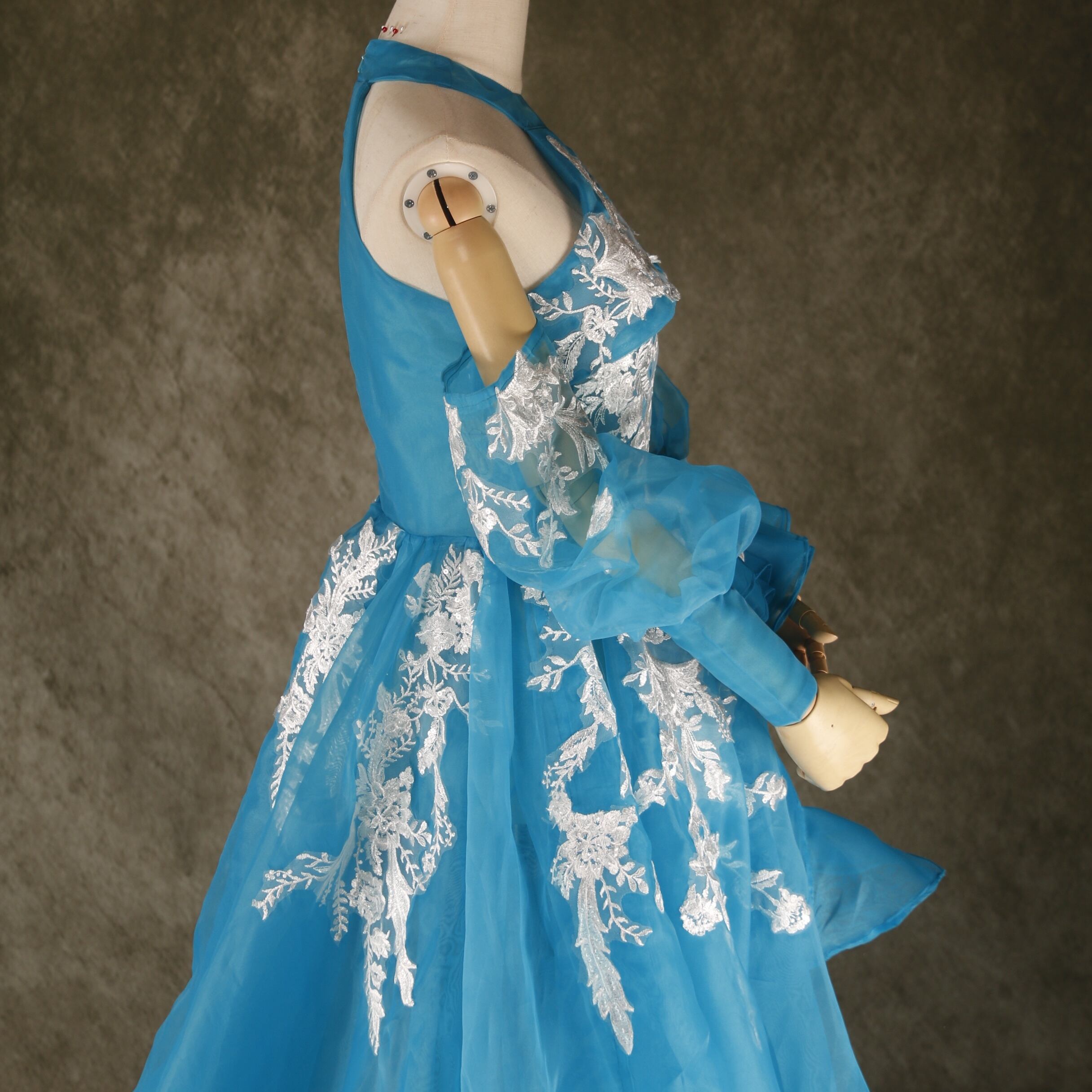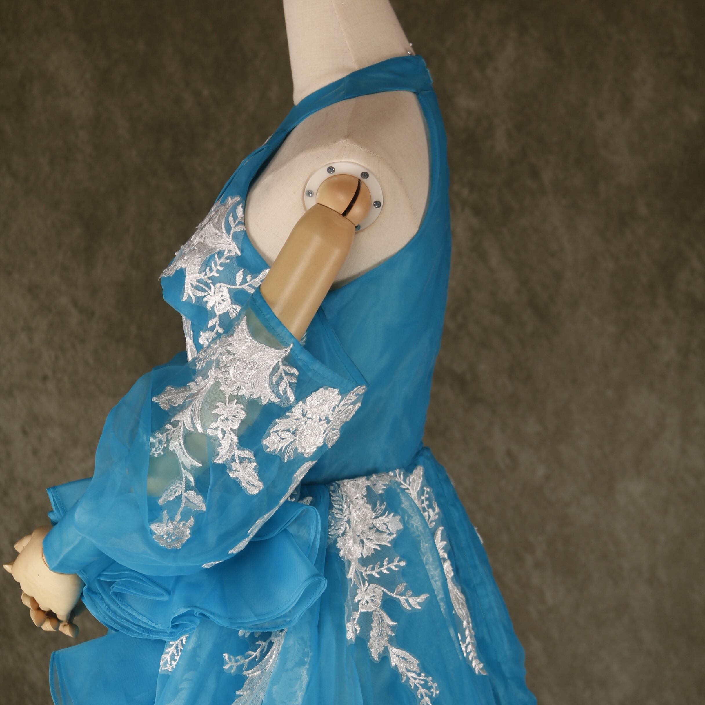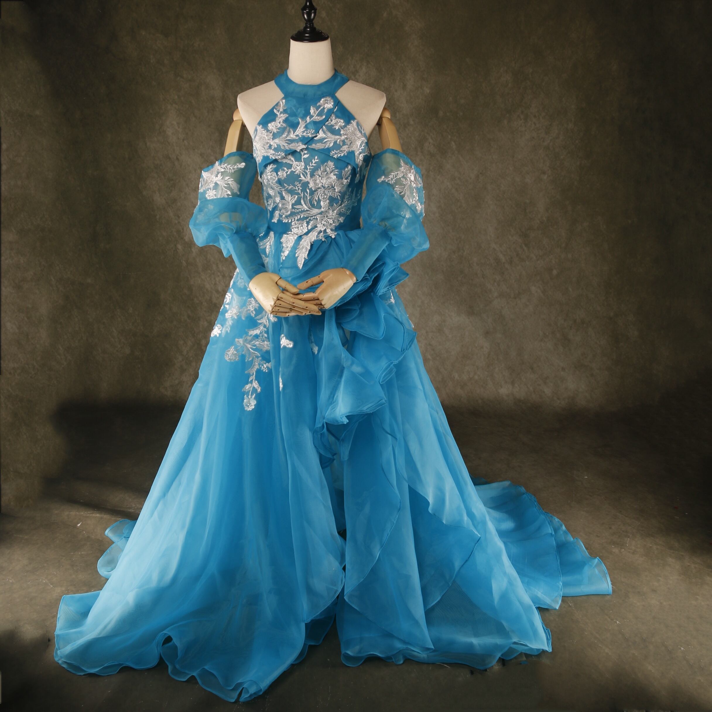 送料無料! 輝きな光彩を放つ 青 上品レース カラードレス オーバードレス 前撮り/花嫁/