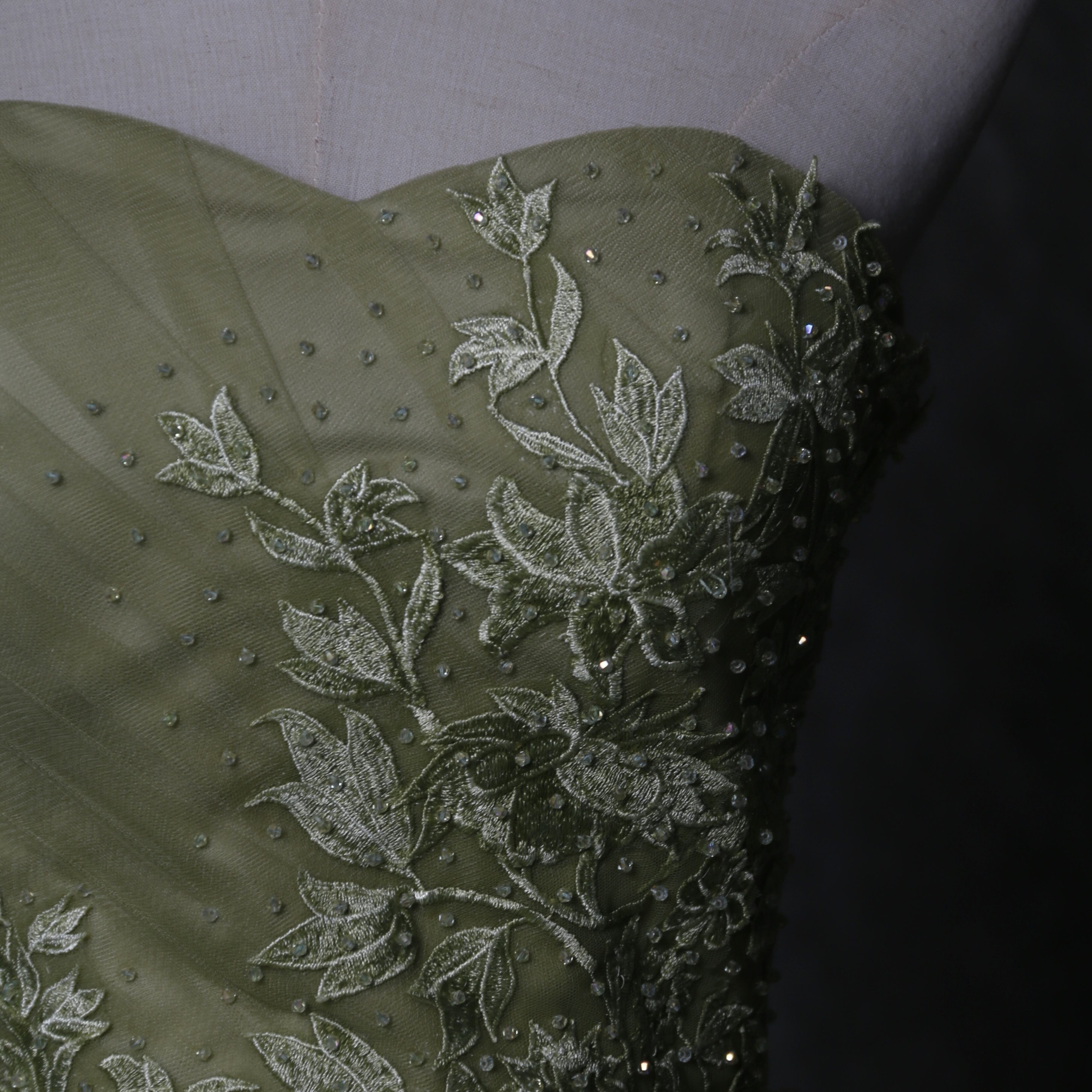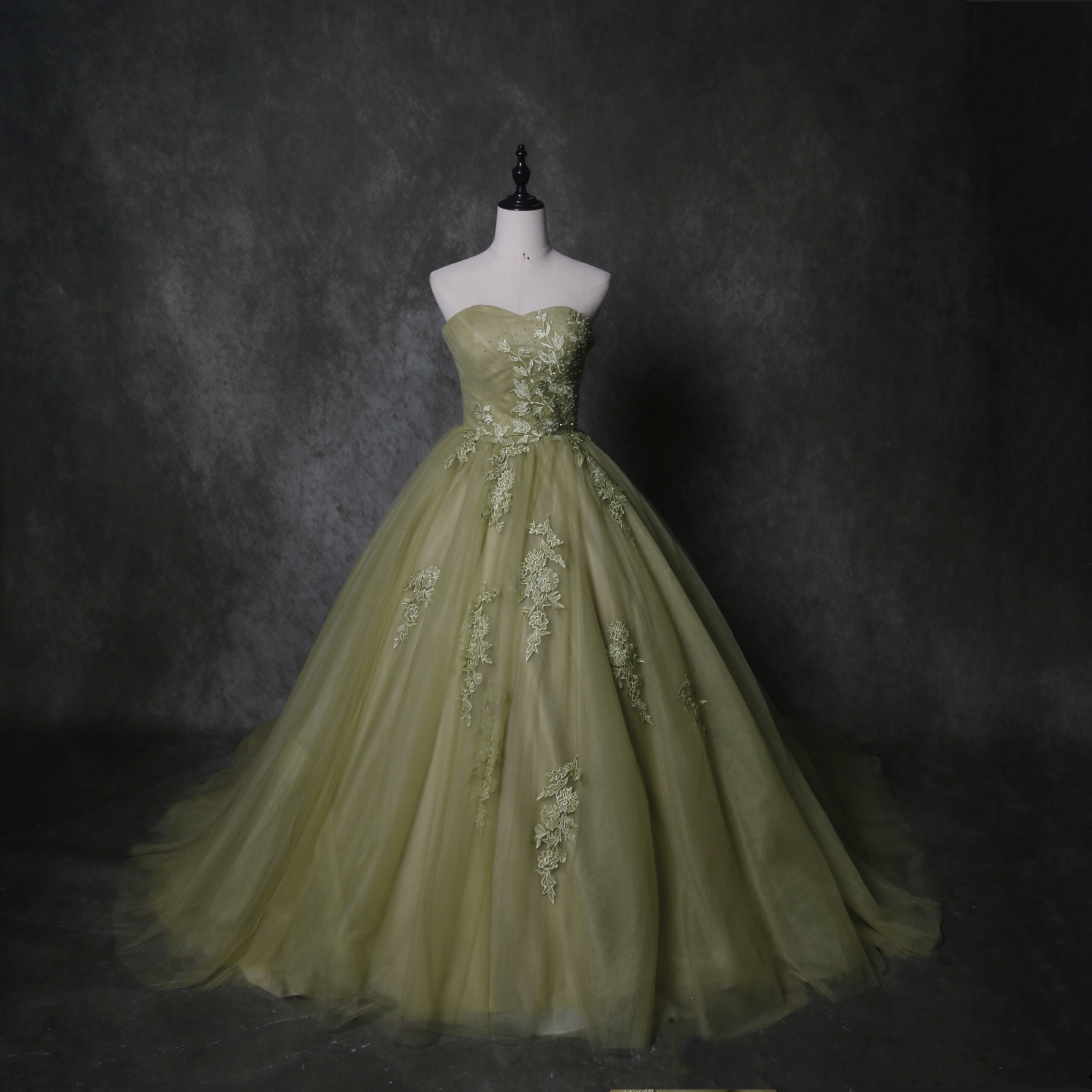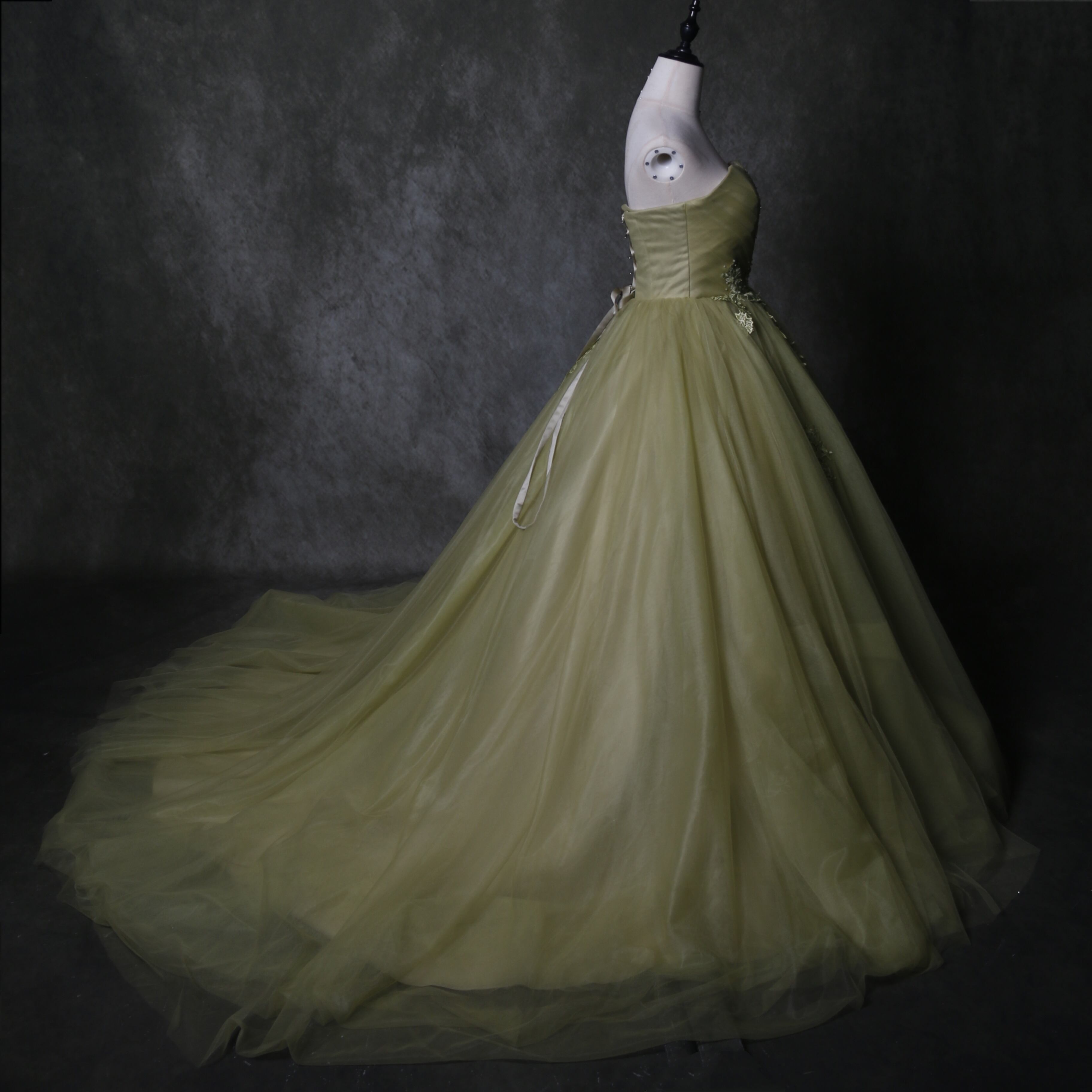 送料無料!美品!グリーン カラードレス ソフトチュール 上品花レース 前撮り/花嫁/