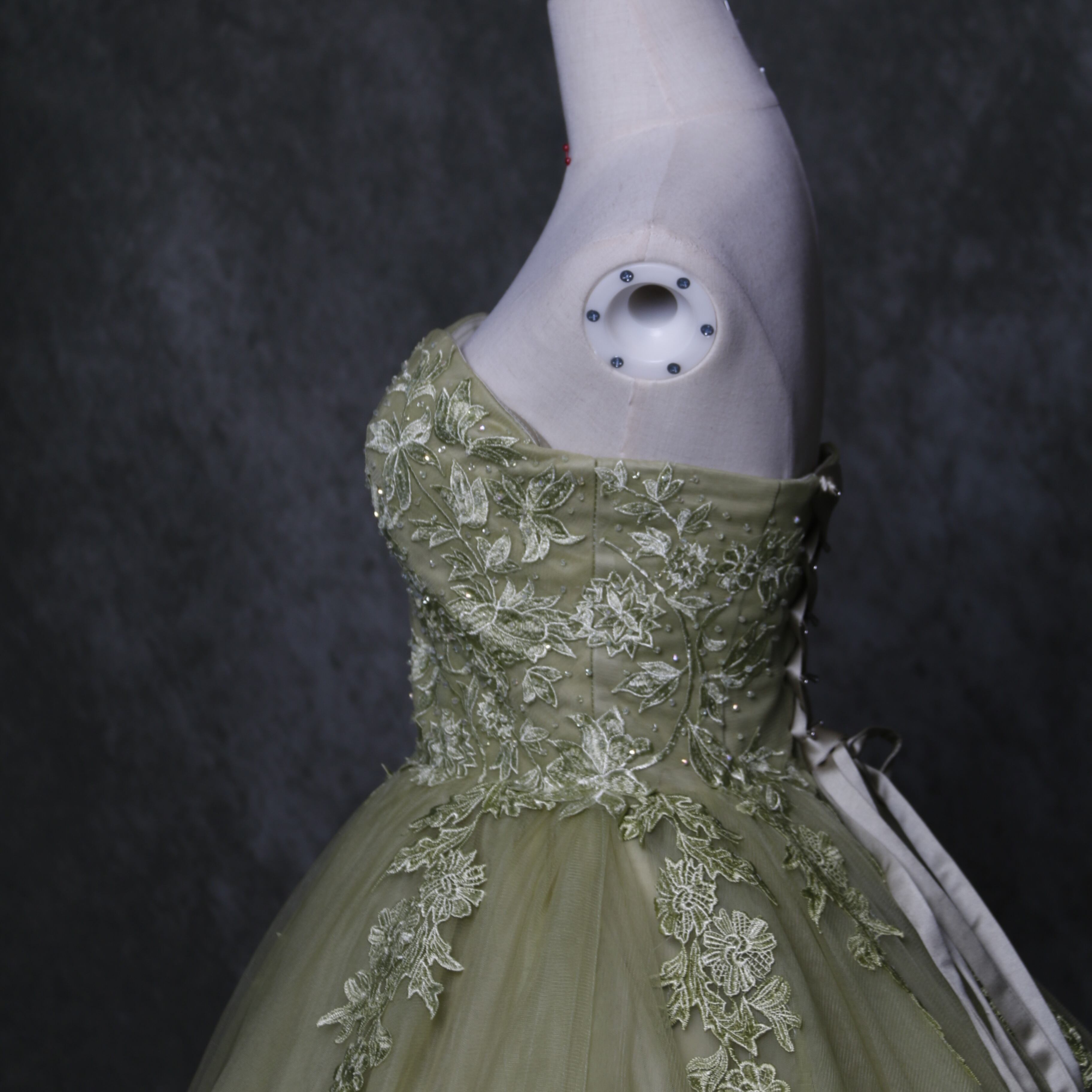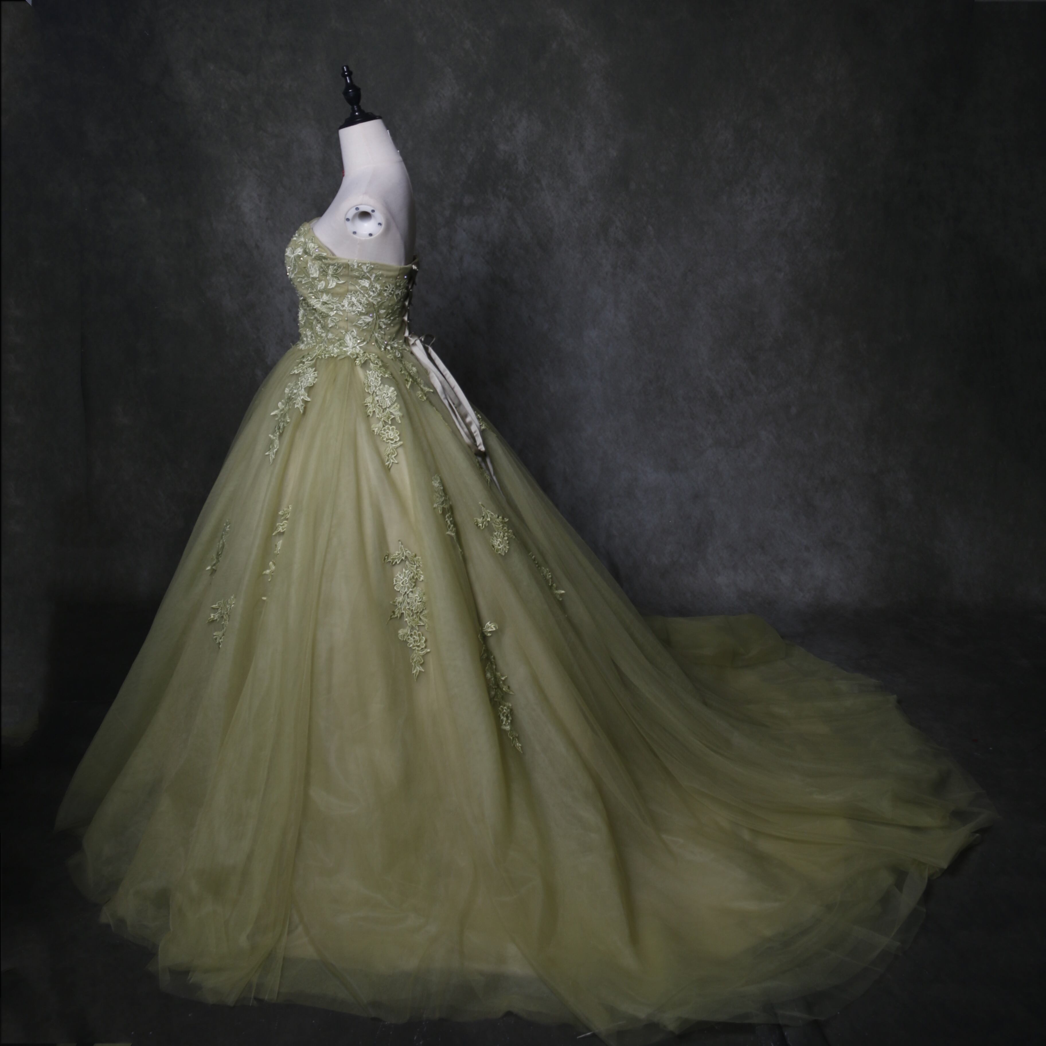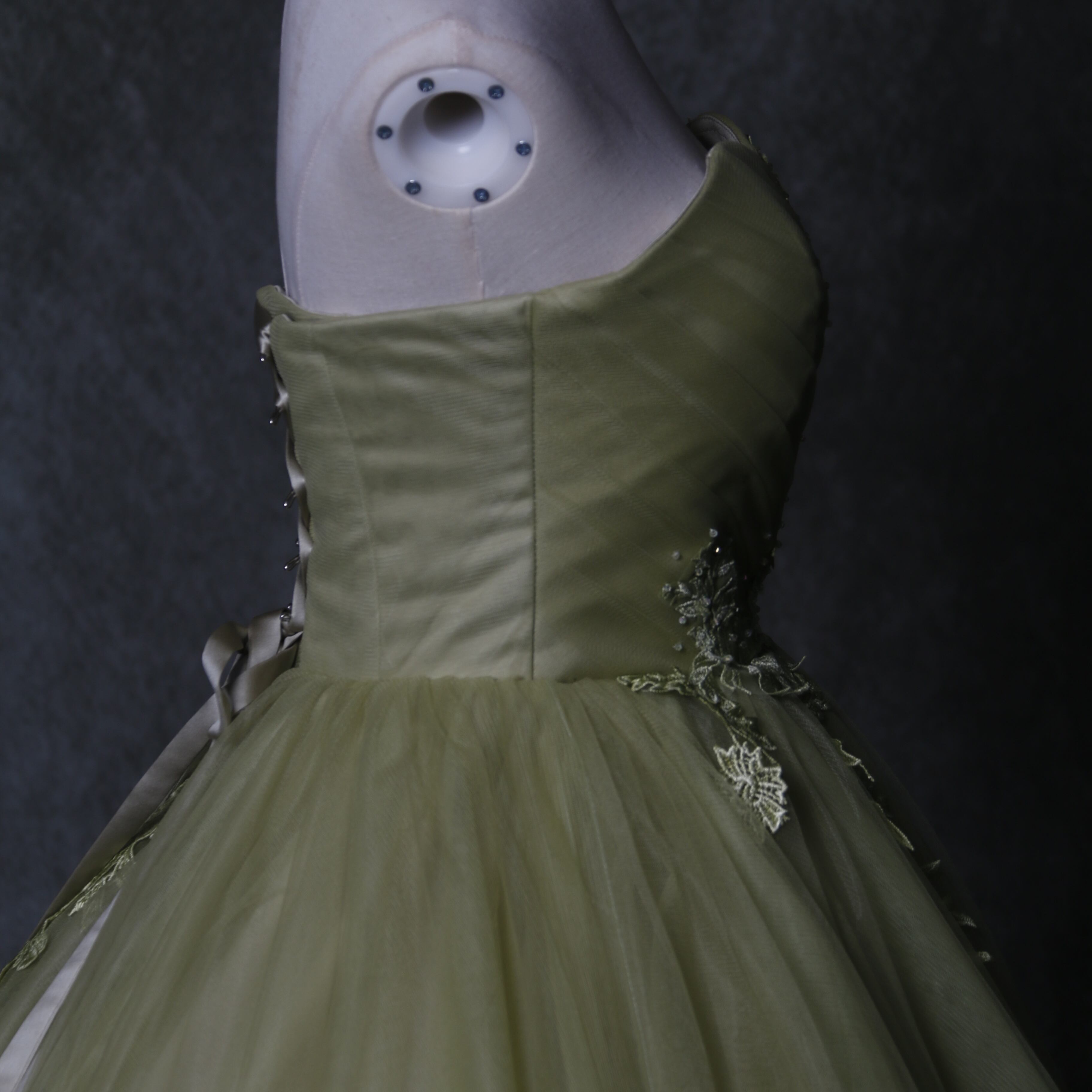 送料無料!美品!グリーン カラードレス ソフトチュール 上品花レース 前撮り/花嫁/