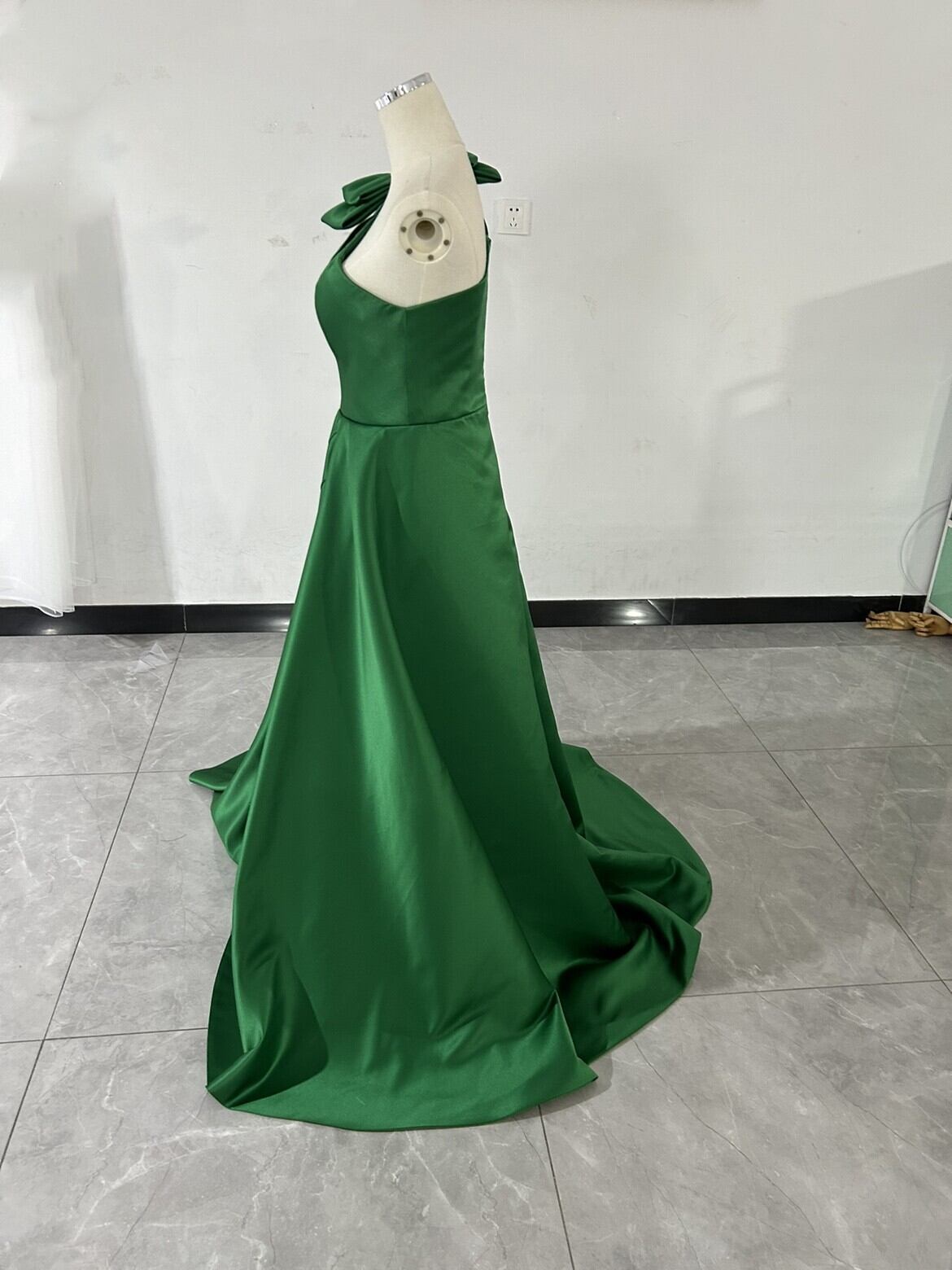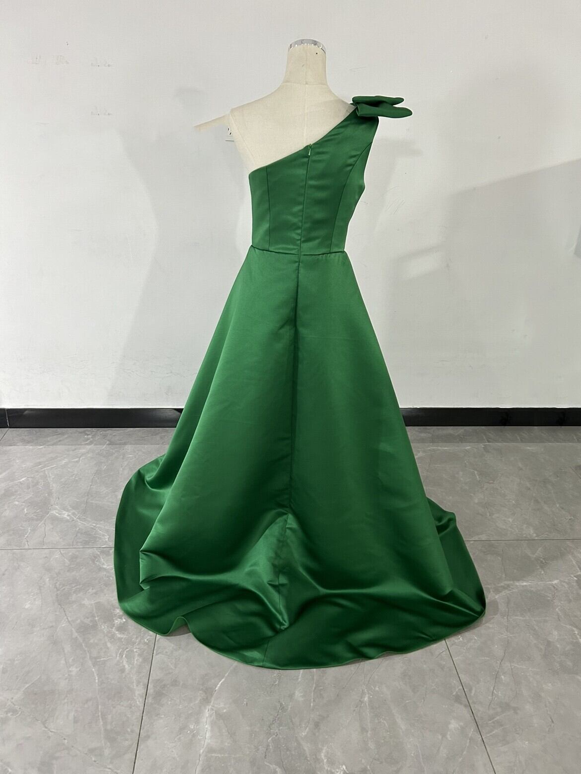 上品!パーティードレス 緑 ワンショルダー スリット プリンセスライン ロングドレス お呼ばれ/二次会
