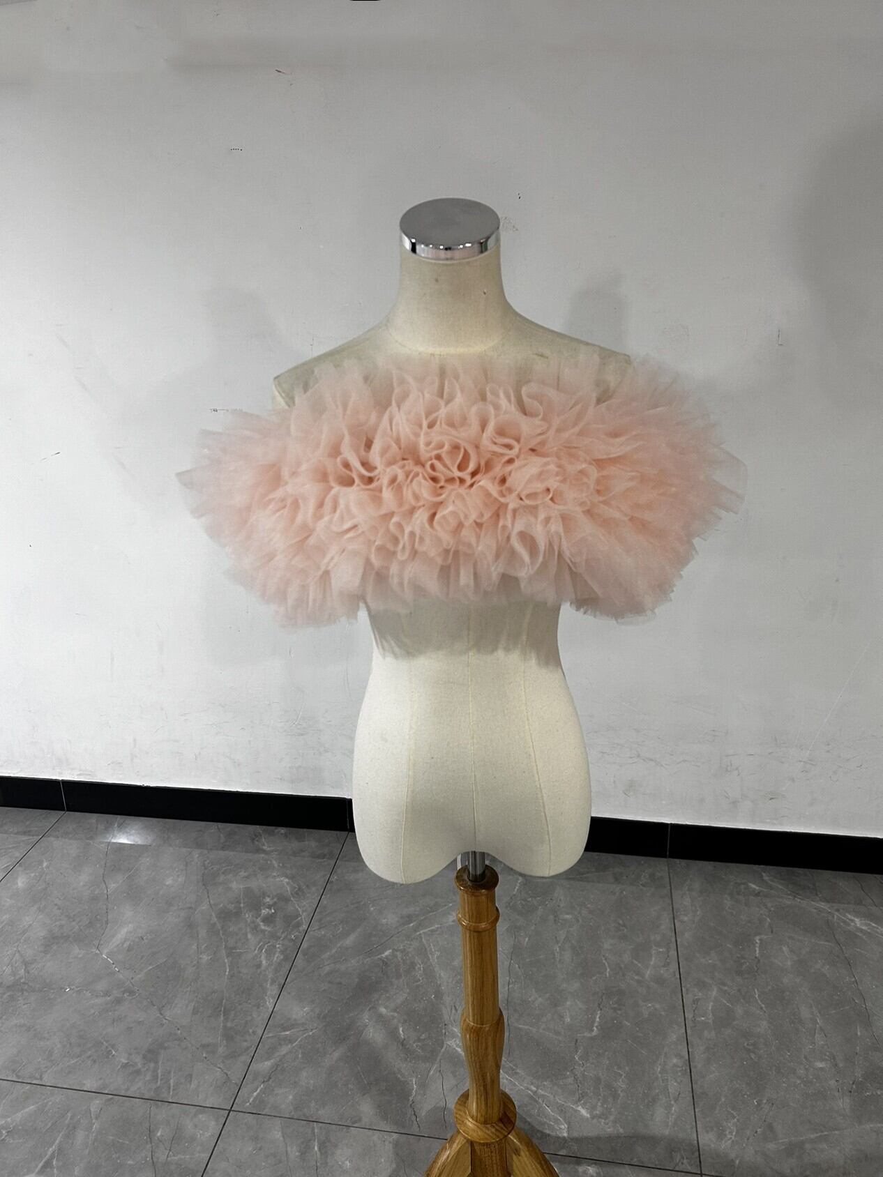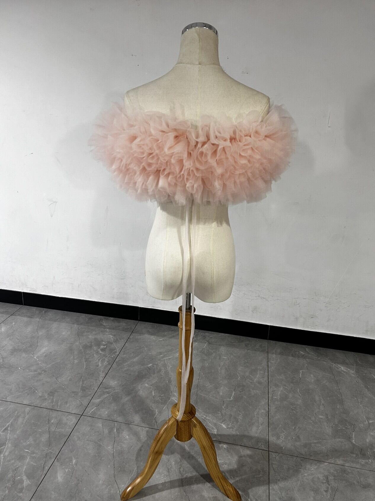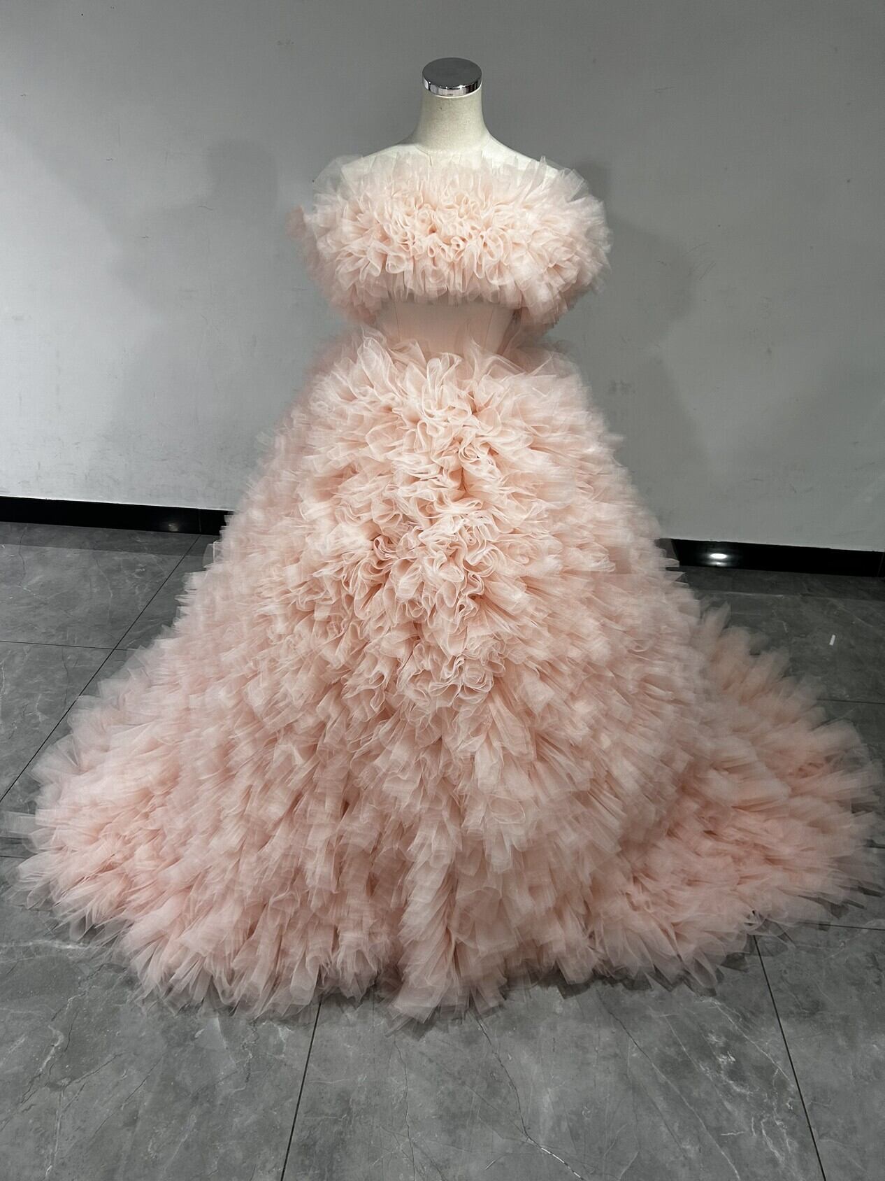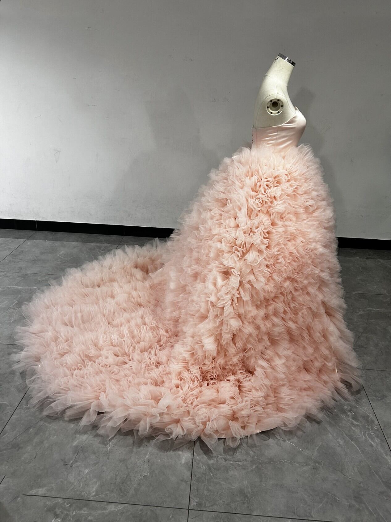 高品質! ウエディングドレス 薄ピンク ソフトチュール 柔らかく重ねたチュールスカート 結婚式/披露宴
