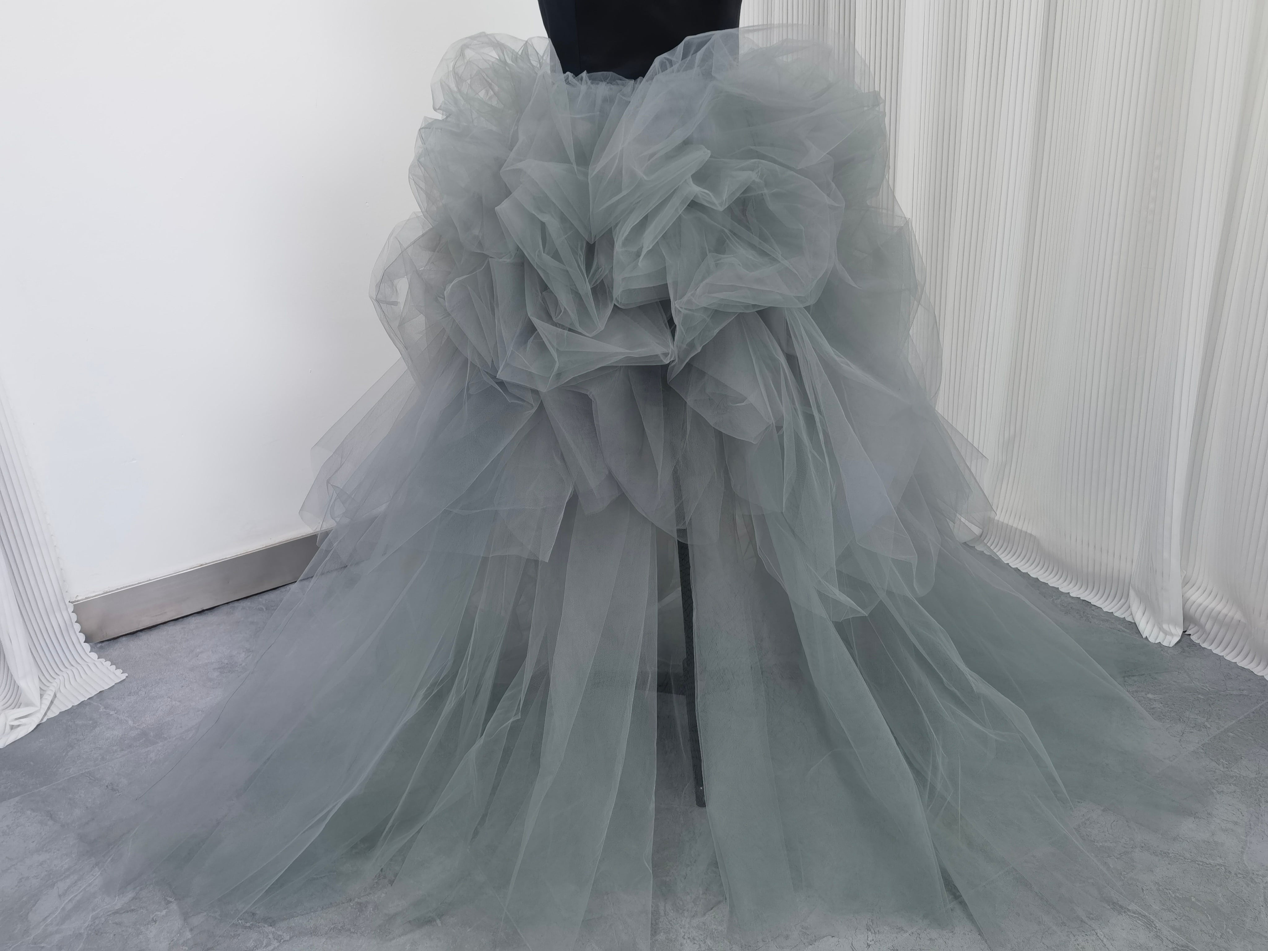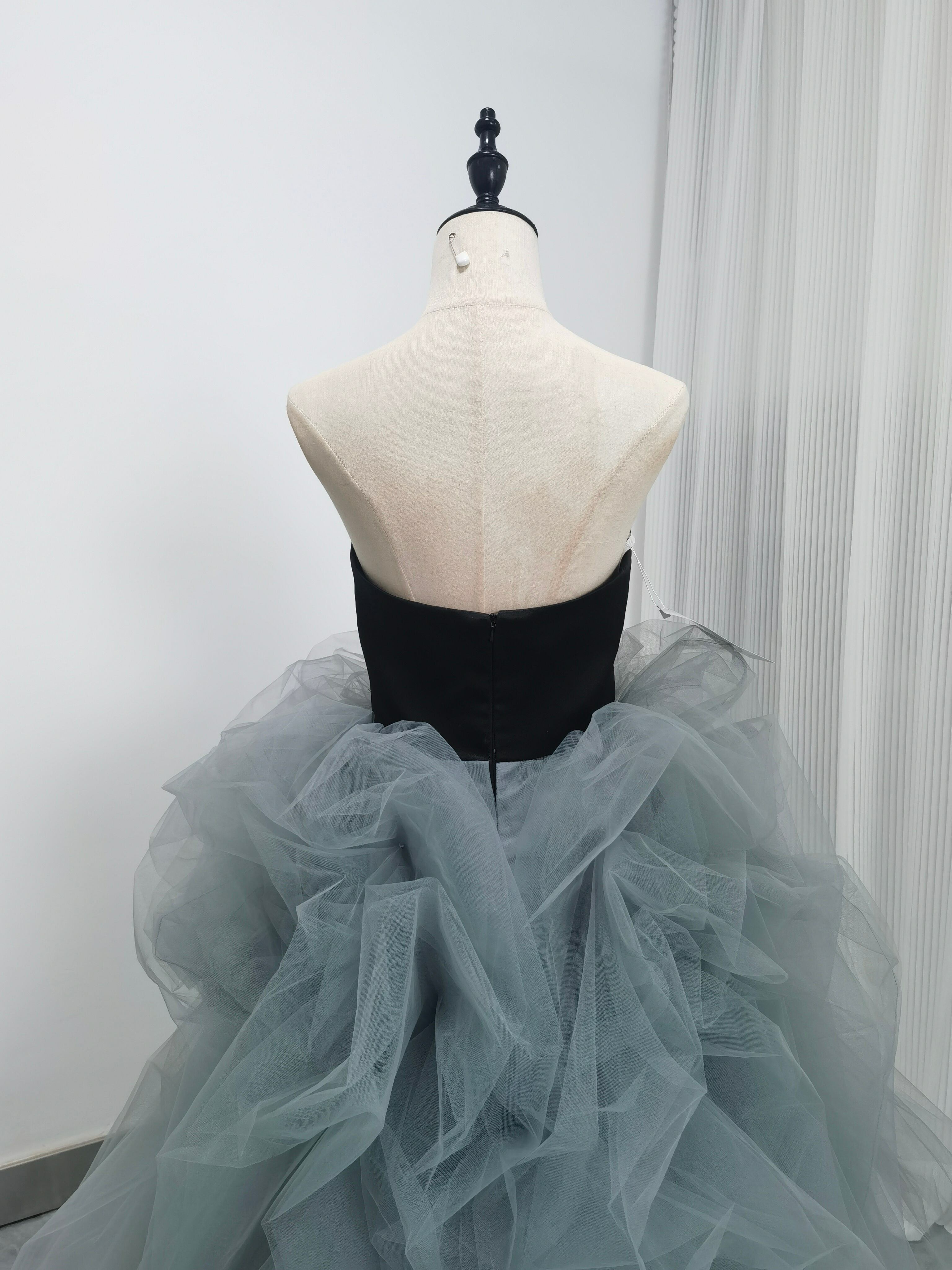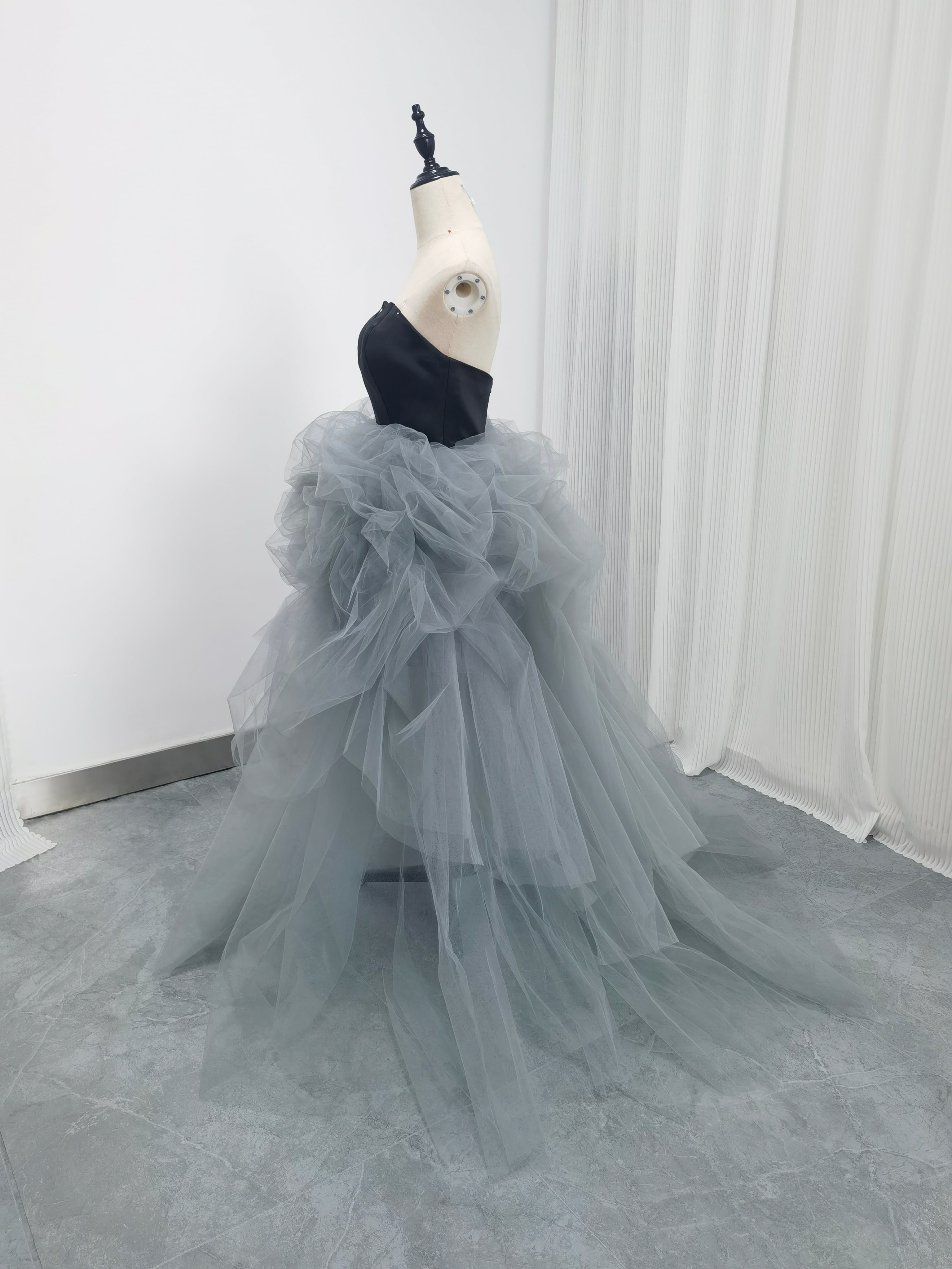 高品質! グレー カラードレス ソフトチュール ベアトップ アシメドレス 奏会/音楽会/発表会な