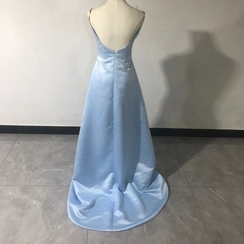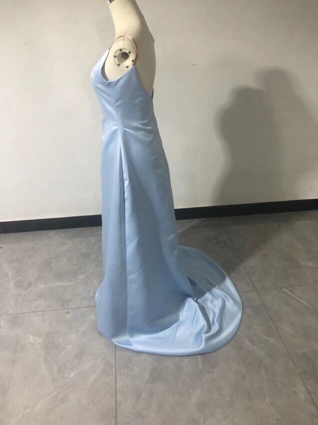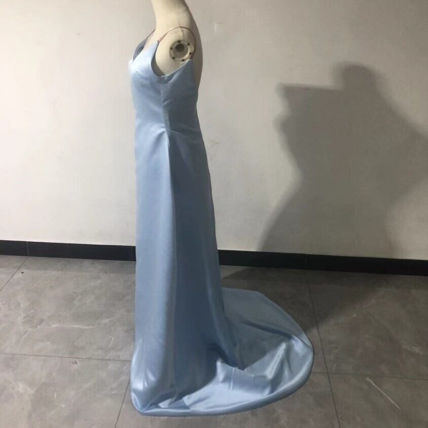 高級サテン 水色 キャミソールドレスのみ ボレロ無し ショートトレーン