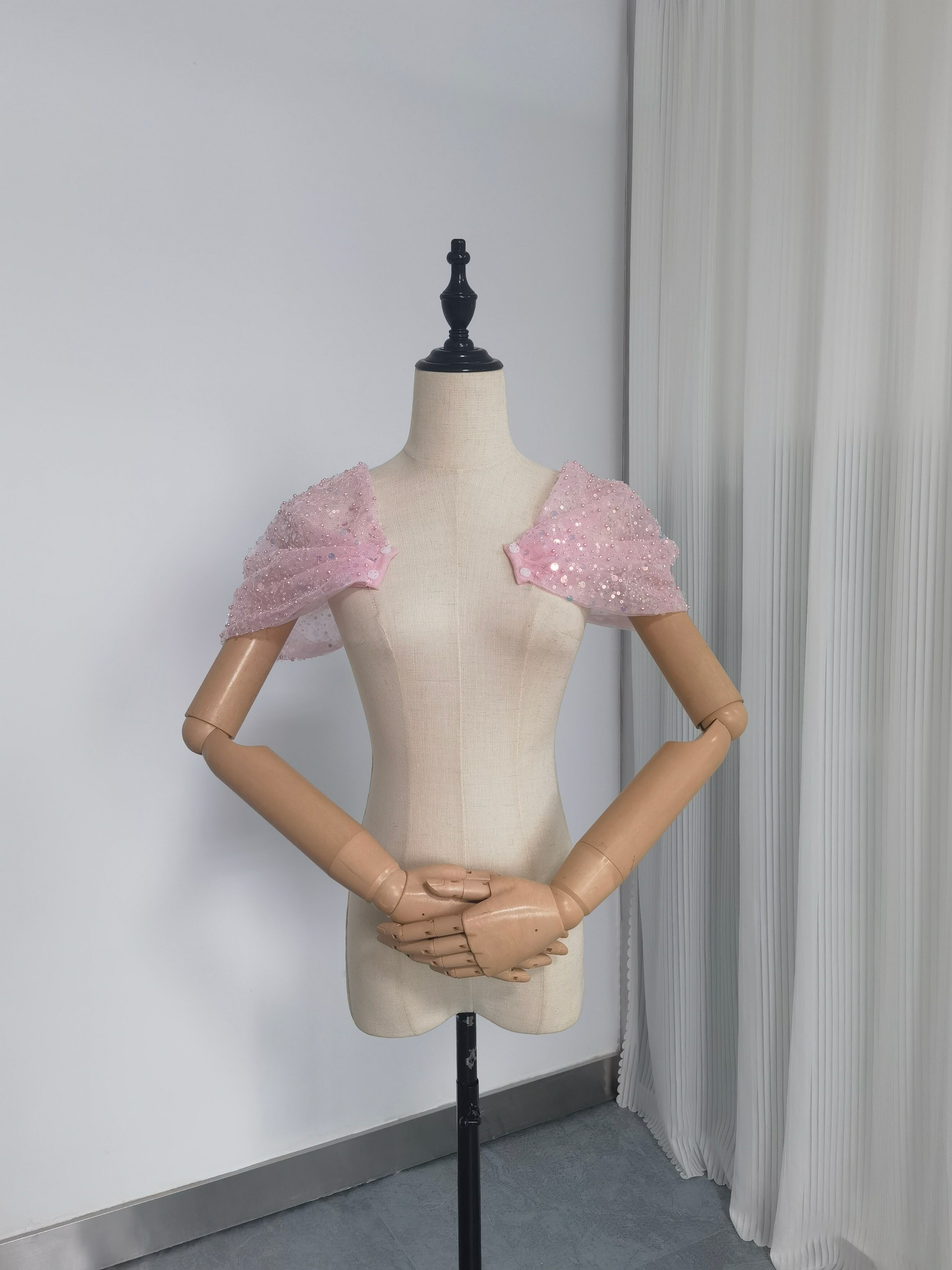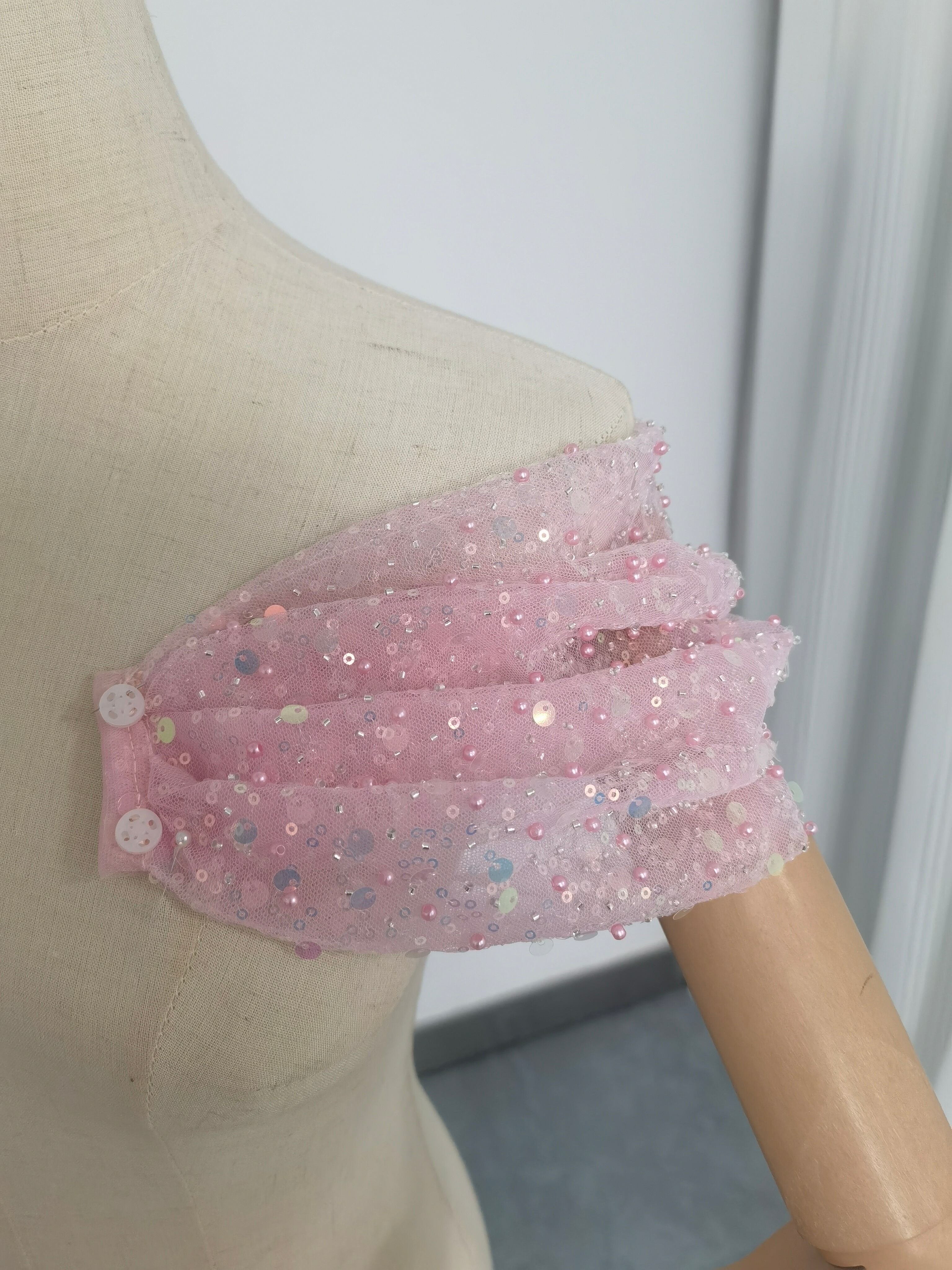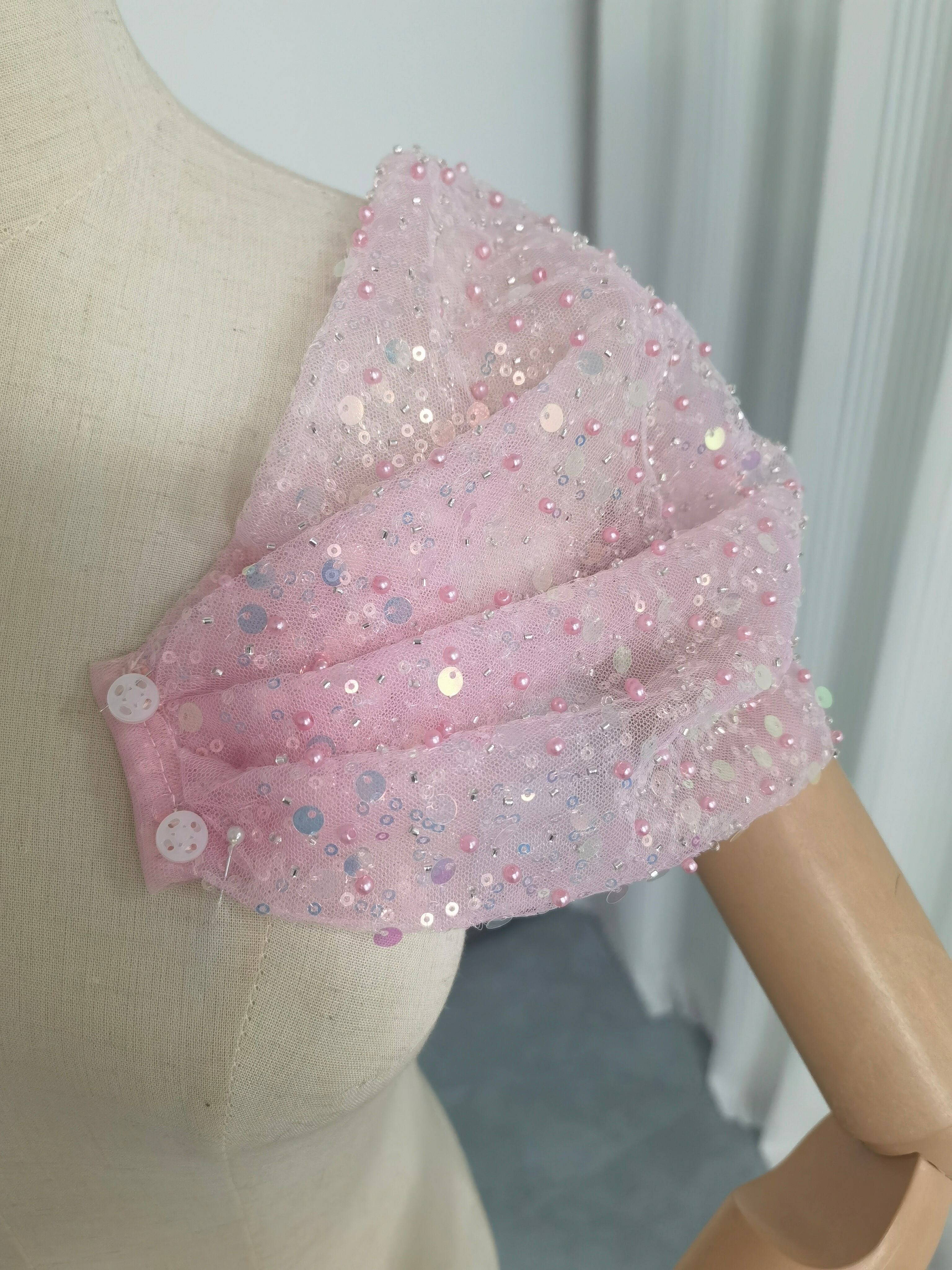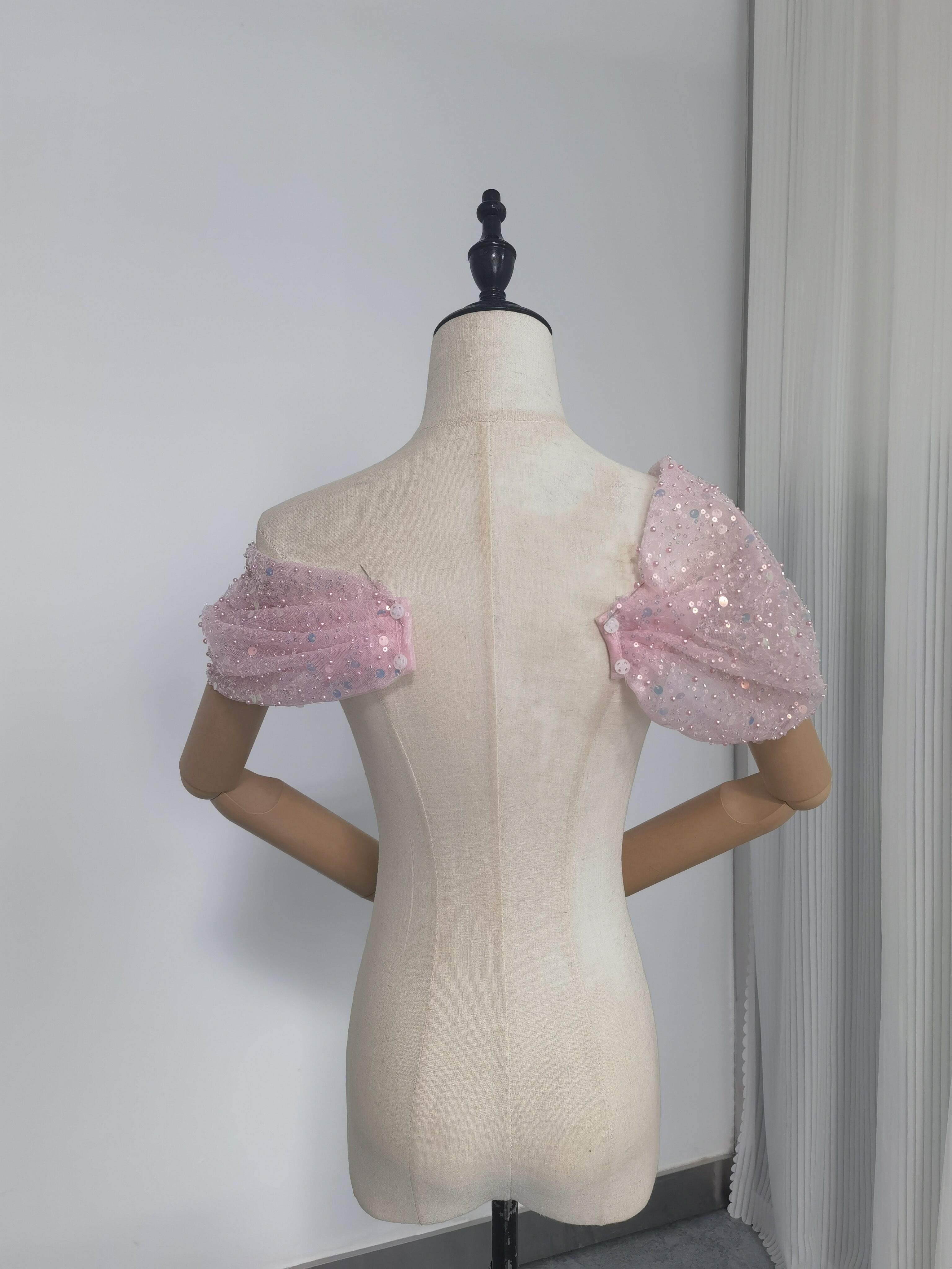 送料無料!カラードレス ラベンダー色:キラキラスパンコール オフショルダー 色直し サイズ調整可能