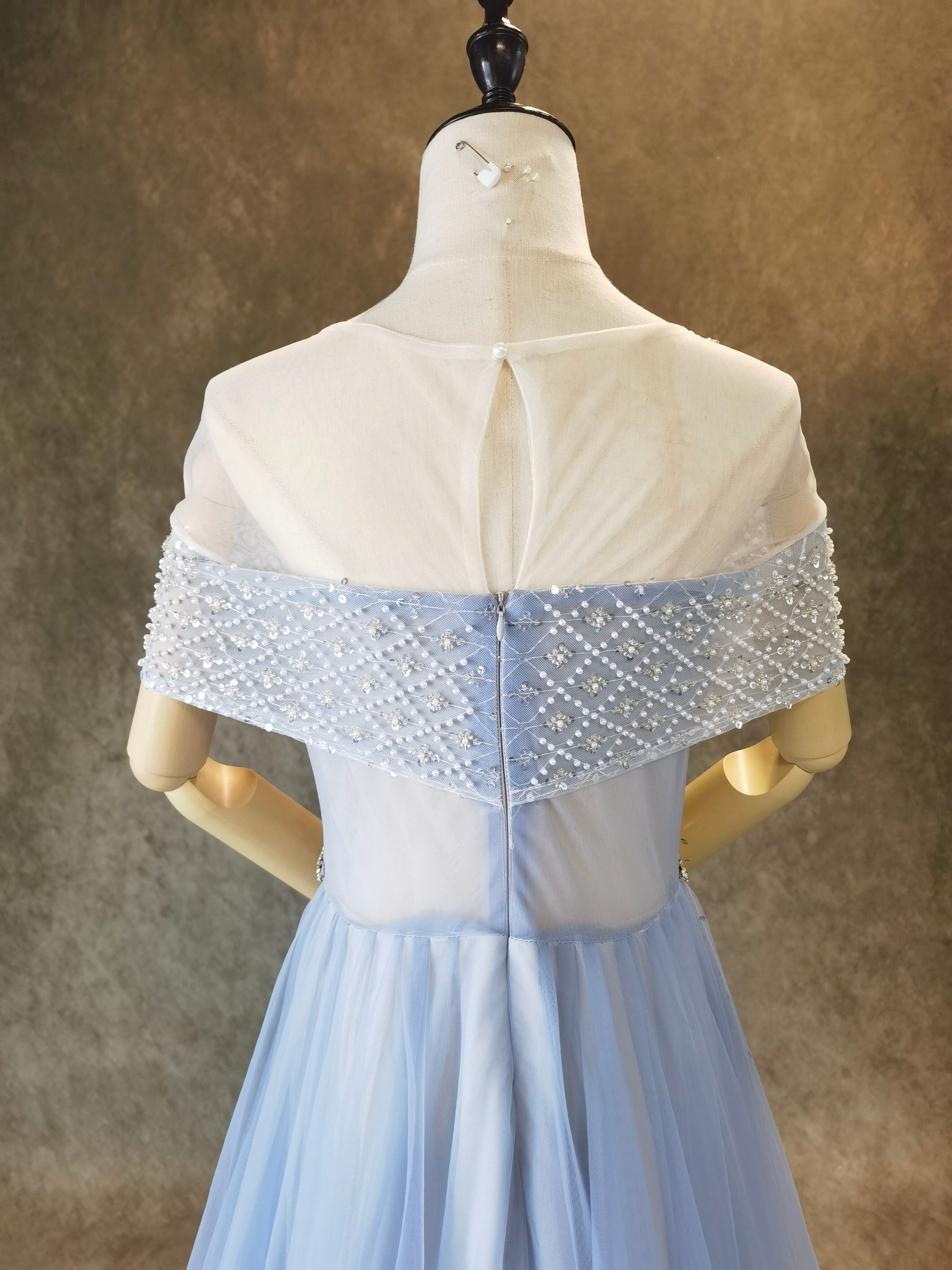 華やか イブニングドレス ロング グレー エレガント 優雅なシルエット 細見えシルエット