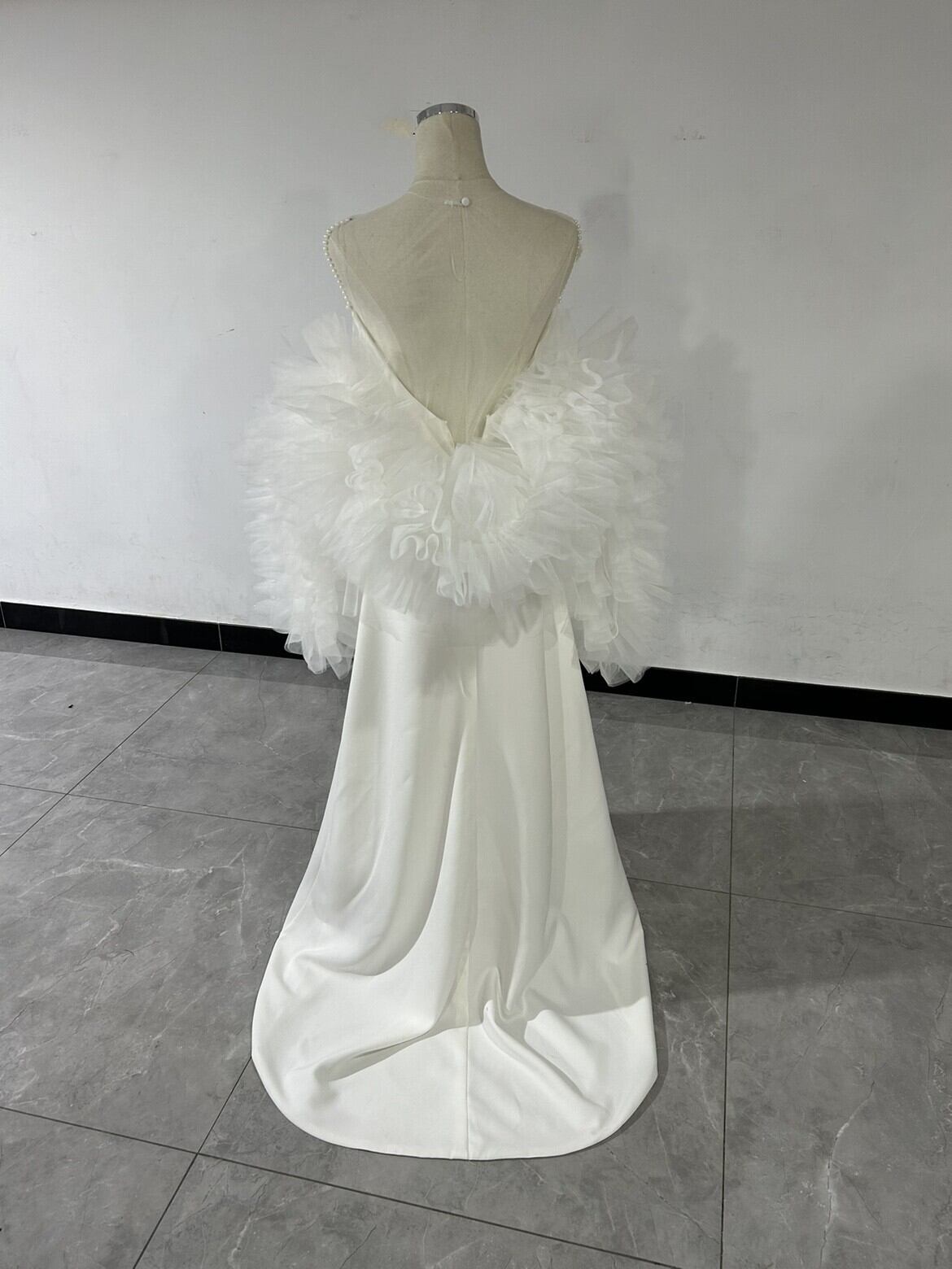 抜群のおしゃれ見えパーティードレスホワイトトレーン シアーな美しさ ポンチョ + ソフトチュール ポンチョ演奏会