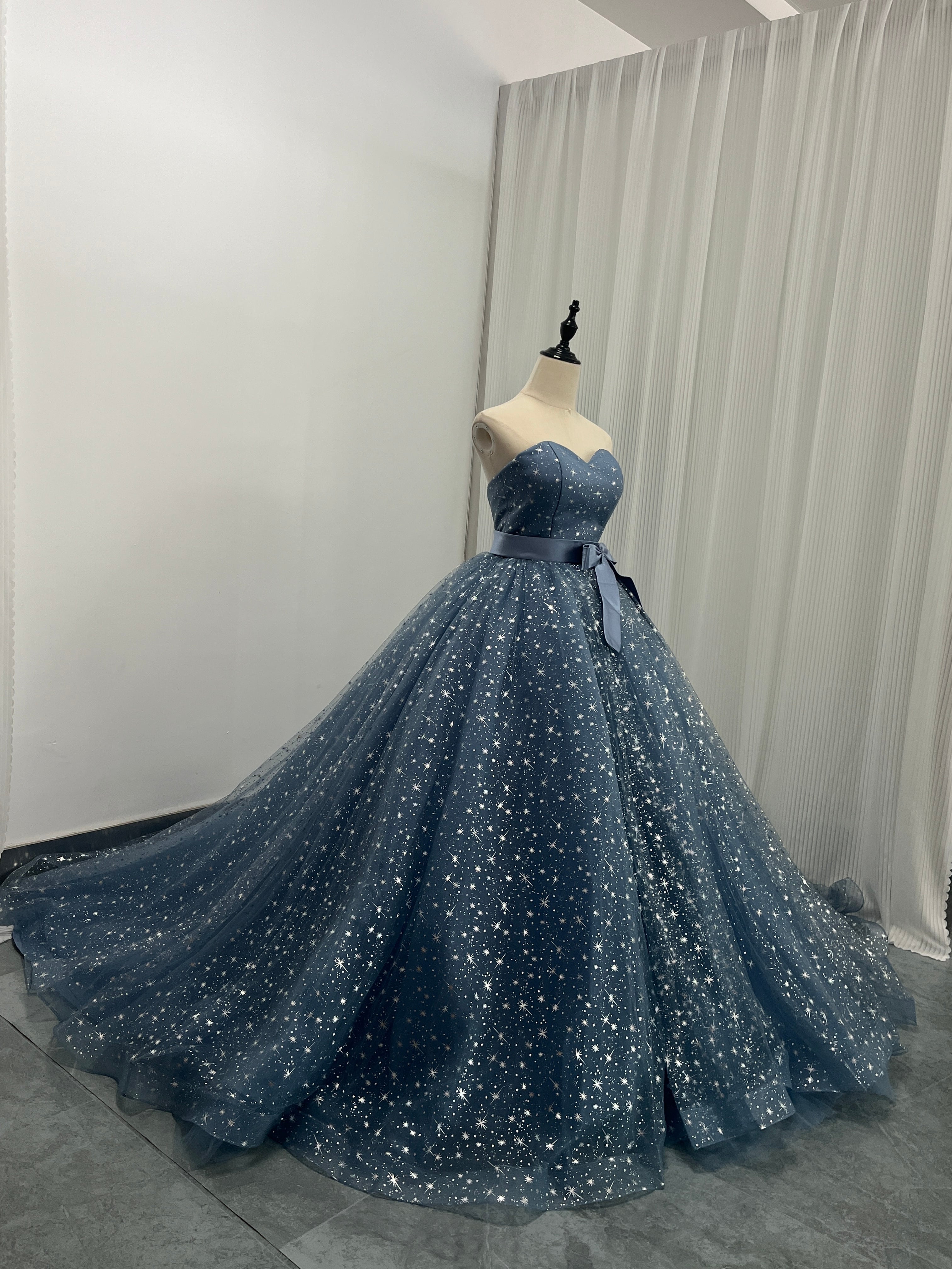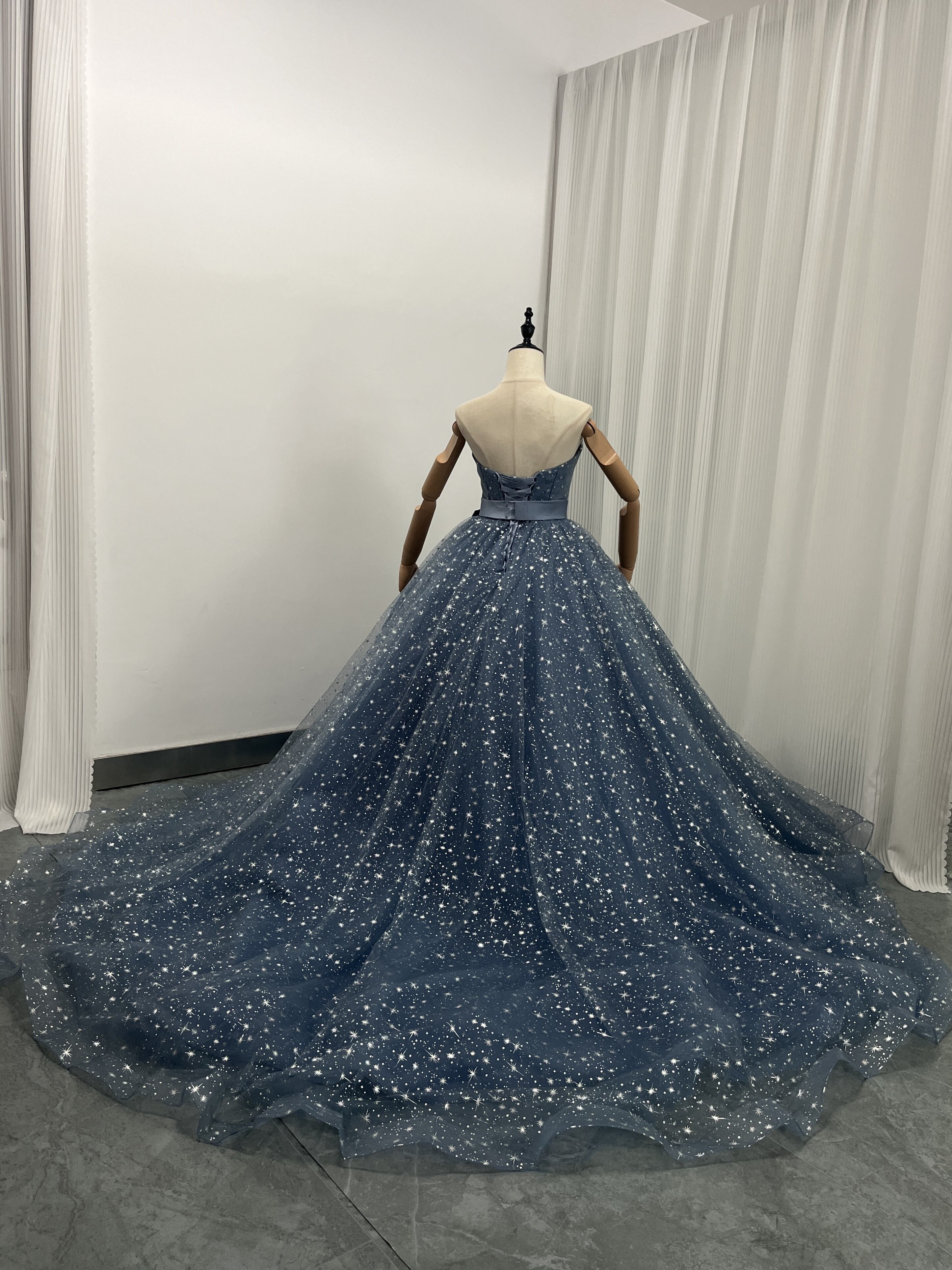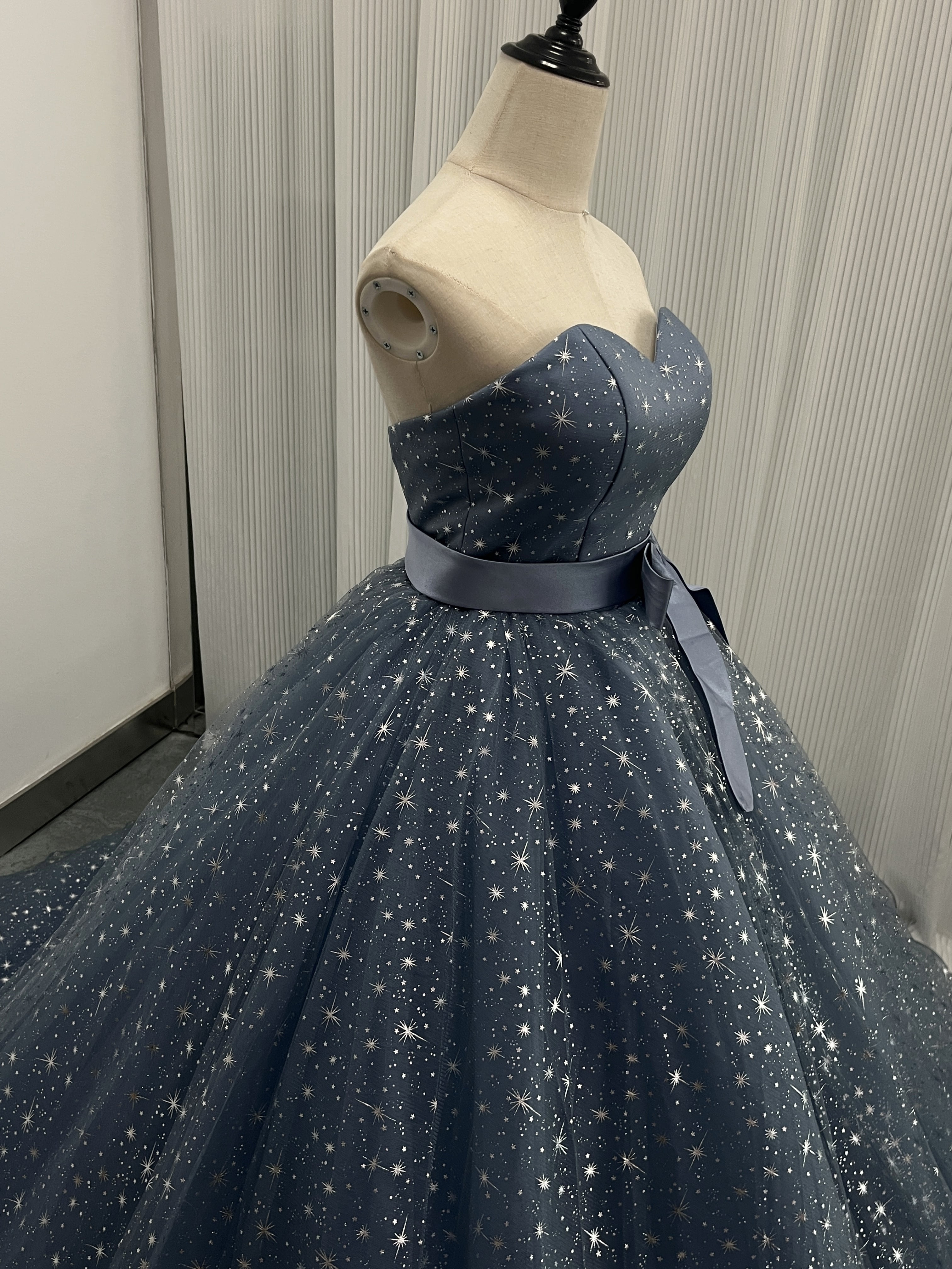 上品! 豪華! ベアトップ カラードレス ソフトチュール 華やかなトレーン /結婚式/披露宴/
