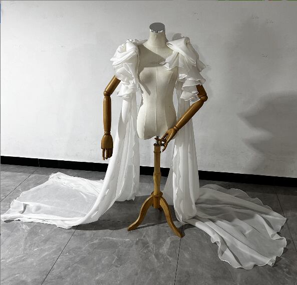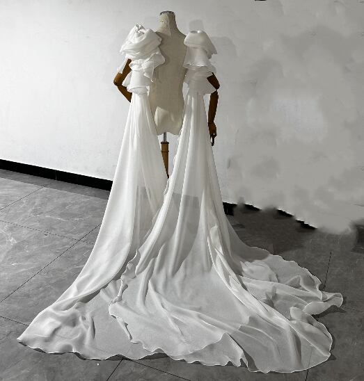 送料無料 !上品!ホワイト ロングトレーン ポンチョ /結婚式/披露宴/