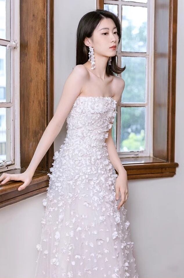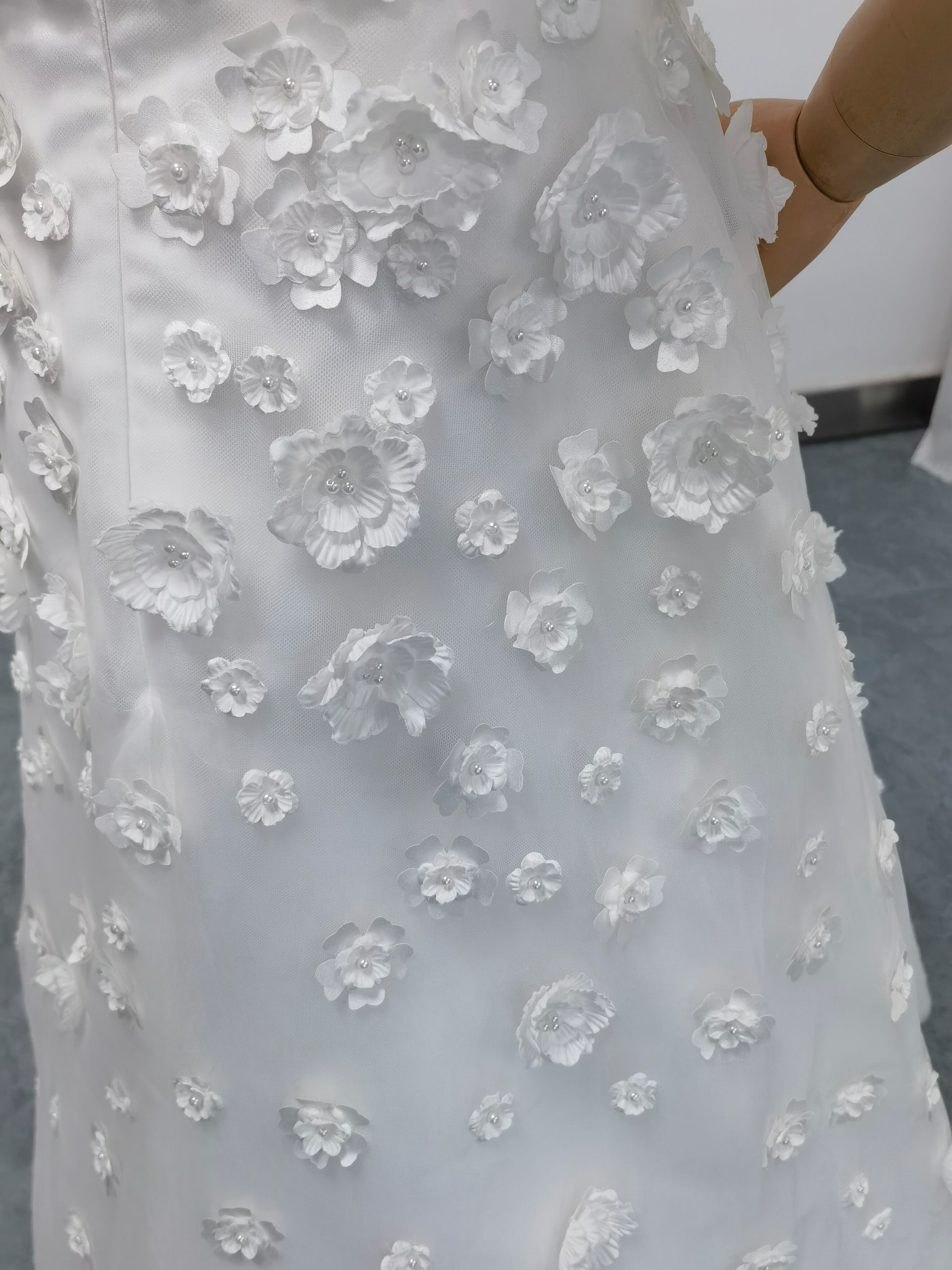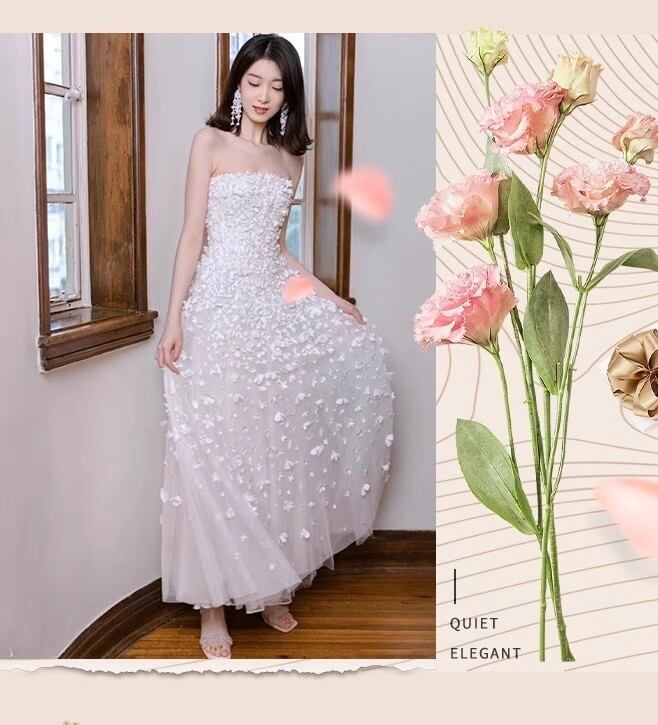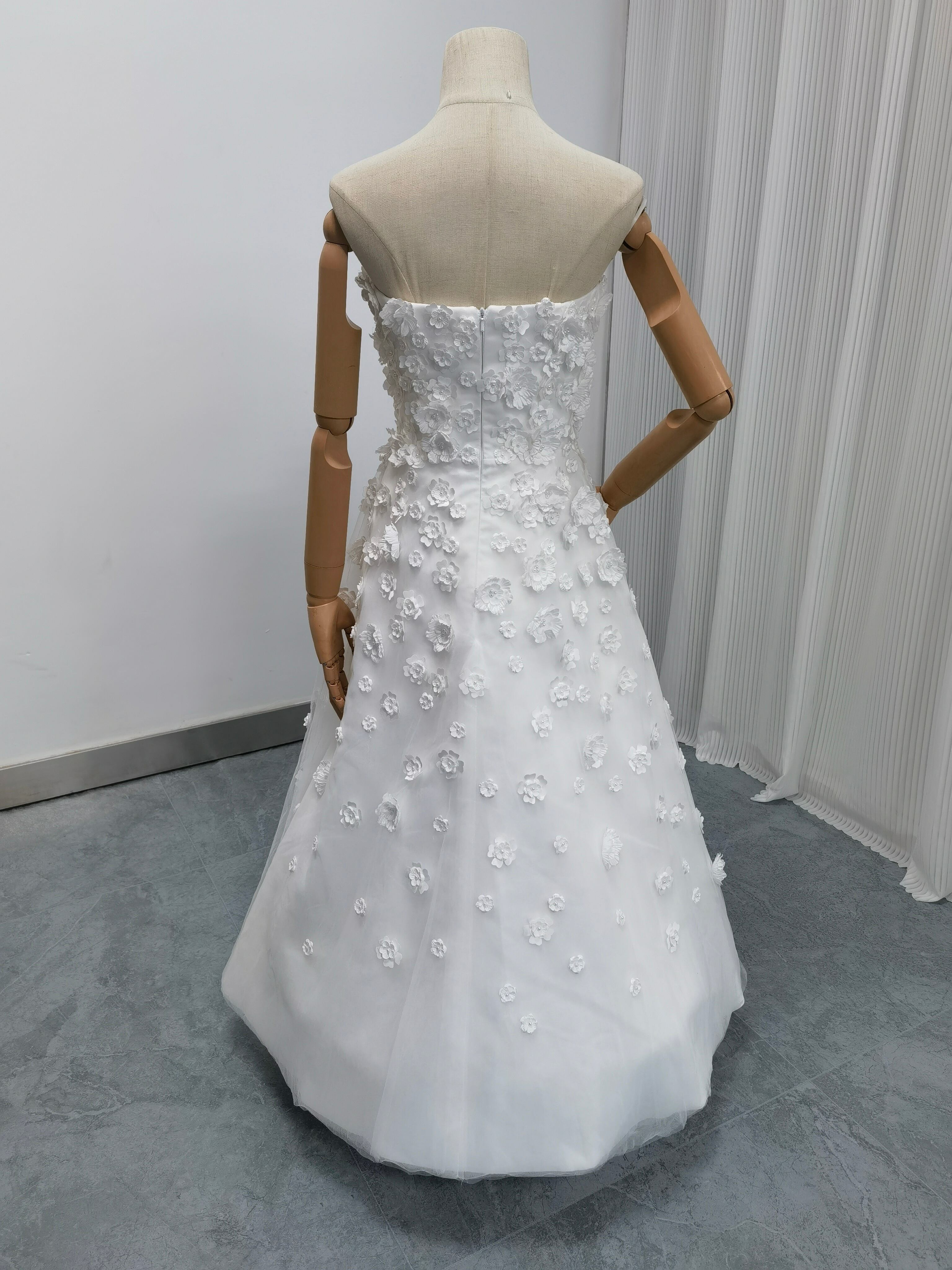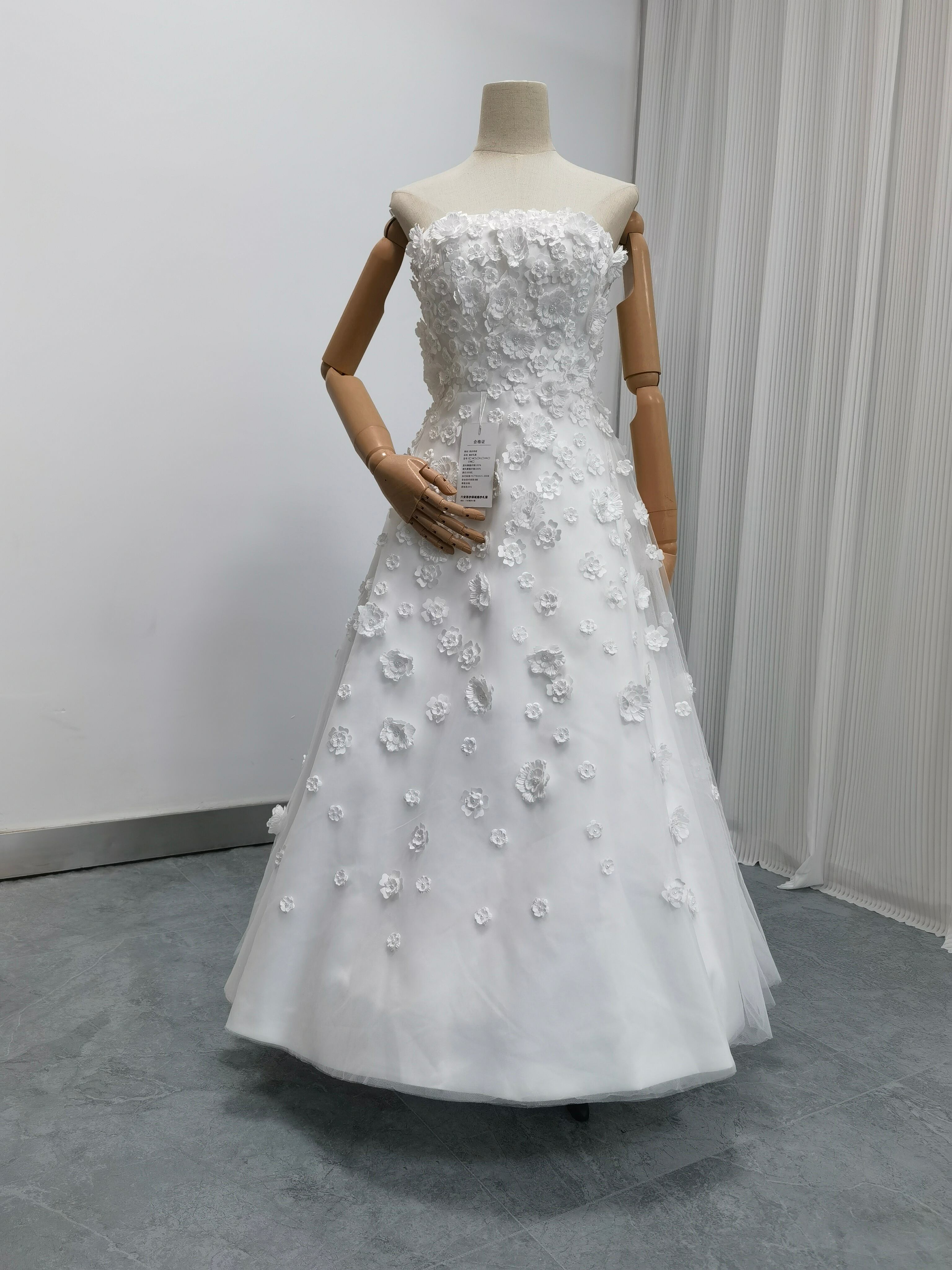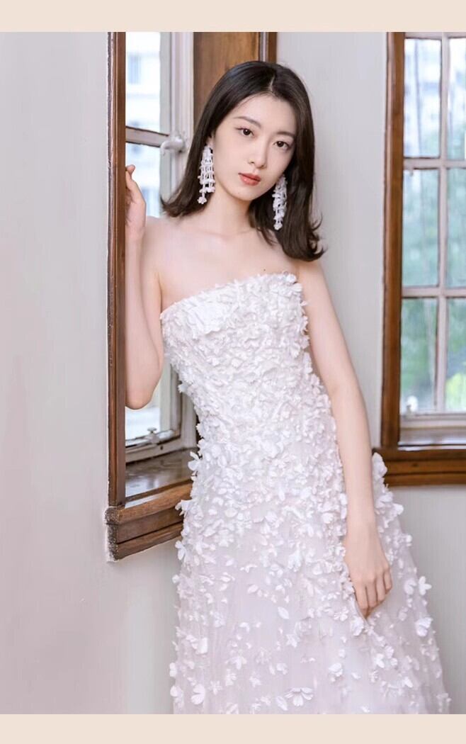送料無料! ホワイト ベアトップ パール ウエディングドレス パーティードレス 前撮り 挙式