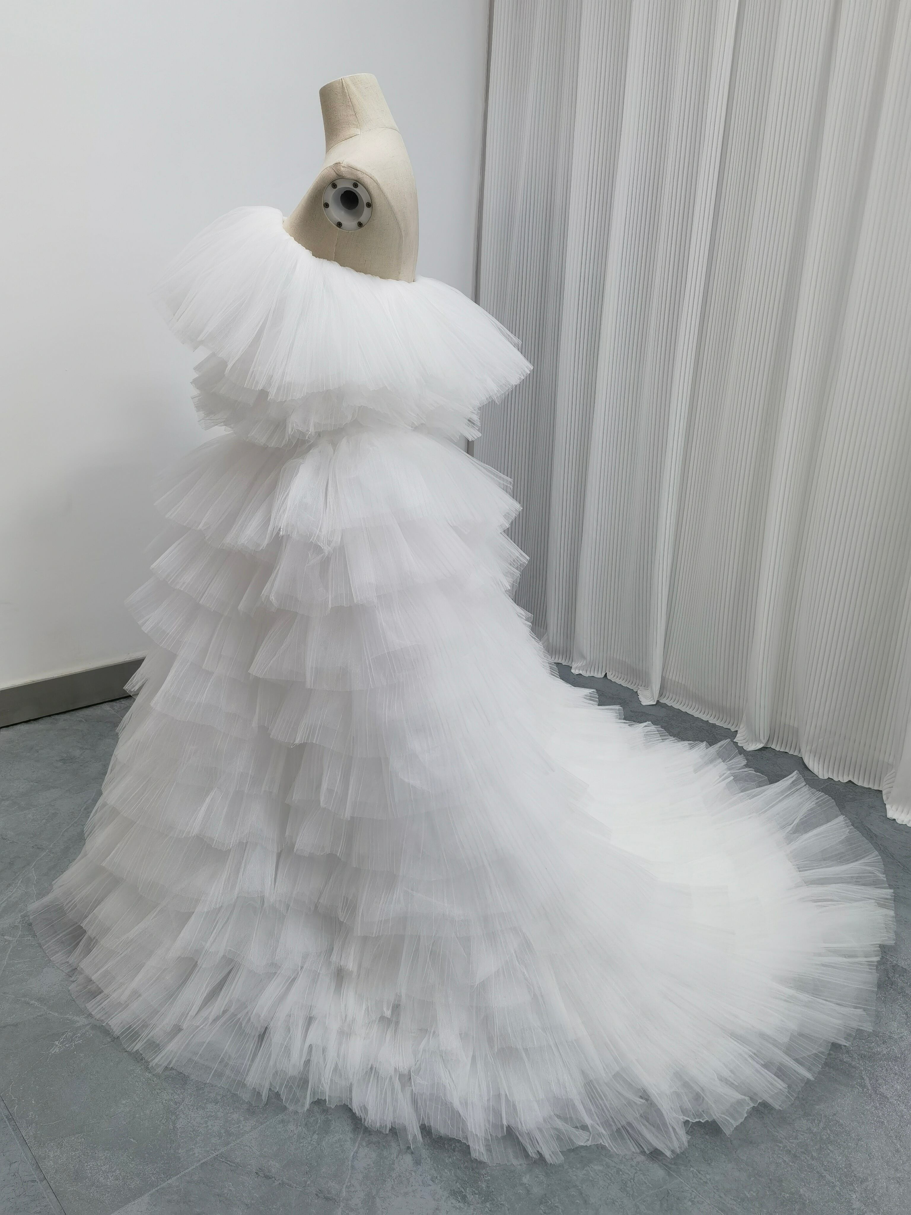 高品質! もこもこウエディングドレス ソフトチュール 柔らかく重ねたチュールスカート 結婚式/披露宴