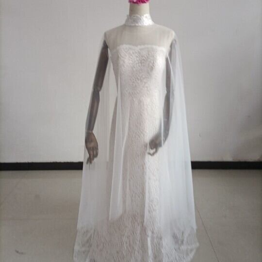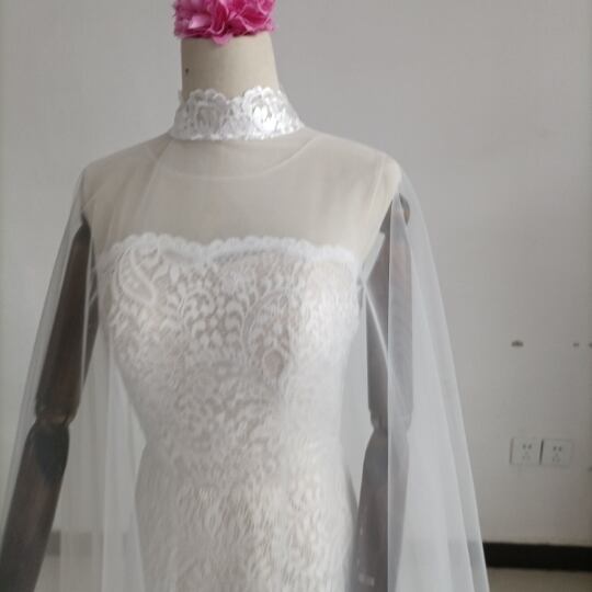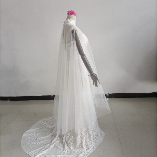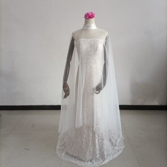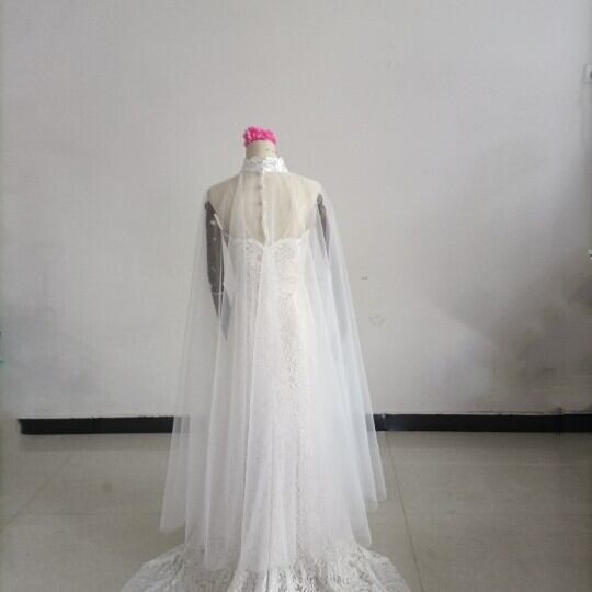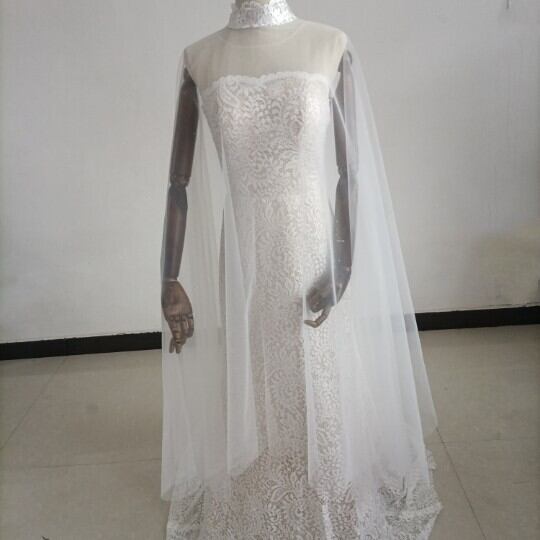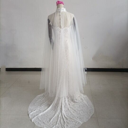送料無料!豪華!贅沢な総レース ウエディングドレス + ソフトチュールケープ風ドレス/花嫁/結婚式