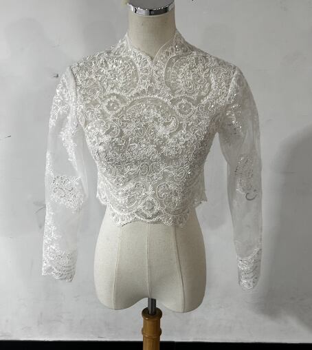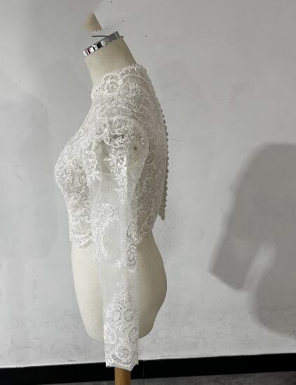 上品!長袖 オフショルダー ボレロ贅沢な小花総レース くるみボタン トップスのみ
