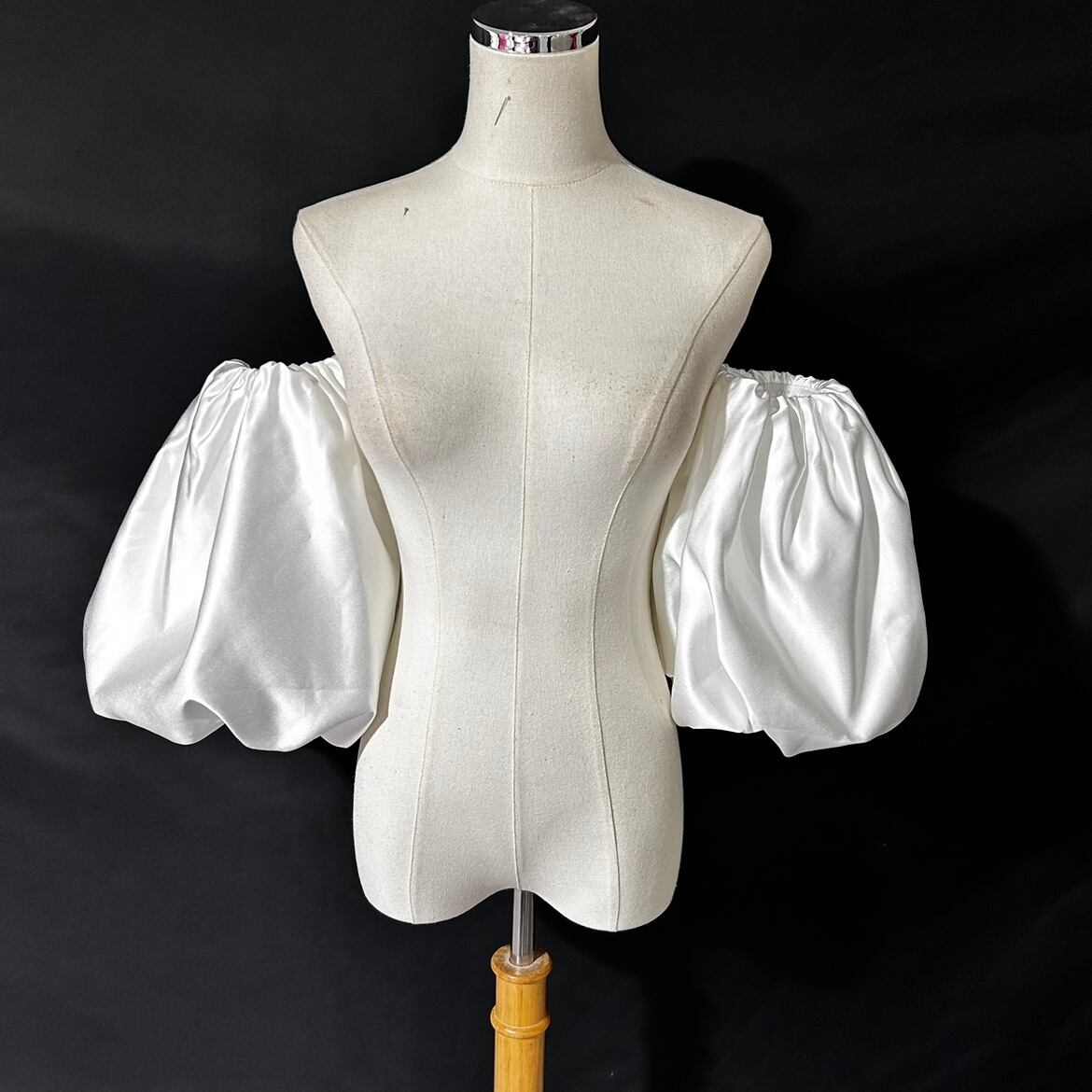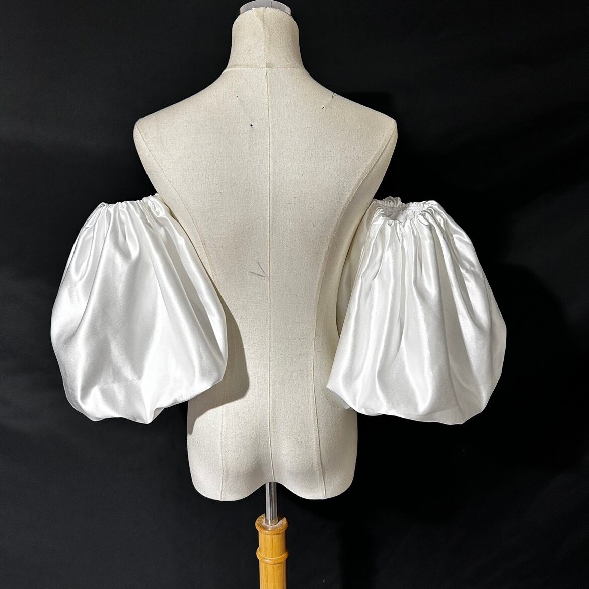 高級サテン 取り外し袖 アイボリー ショルダーの付け袖 パフスリーブ オーダー可能 二の腕を隠せるお袖