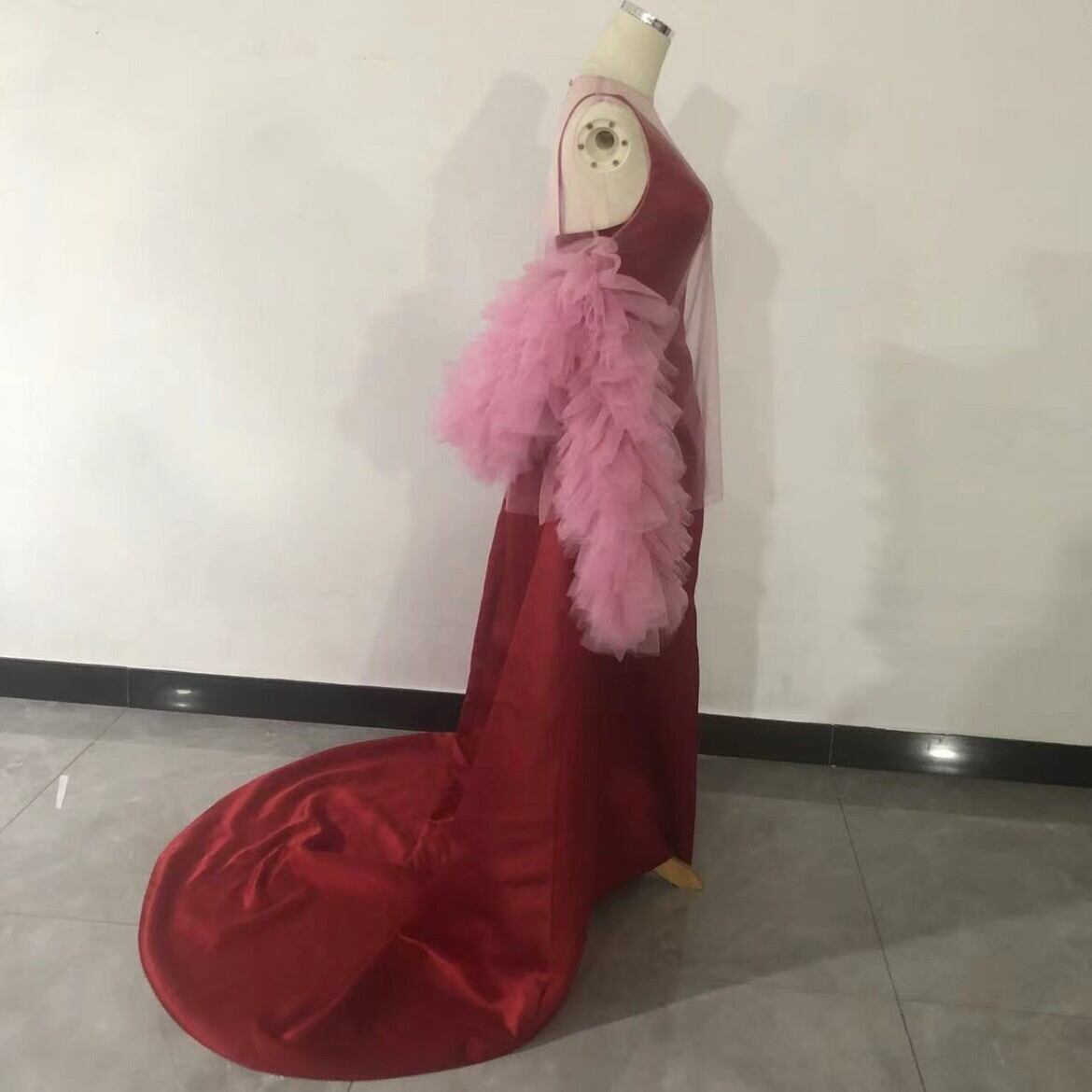 送料無料!抜群のおしゃれ見えパーティードレス トレーン シアーな美しさ ポンチョ