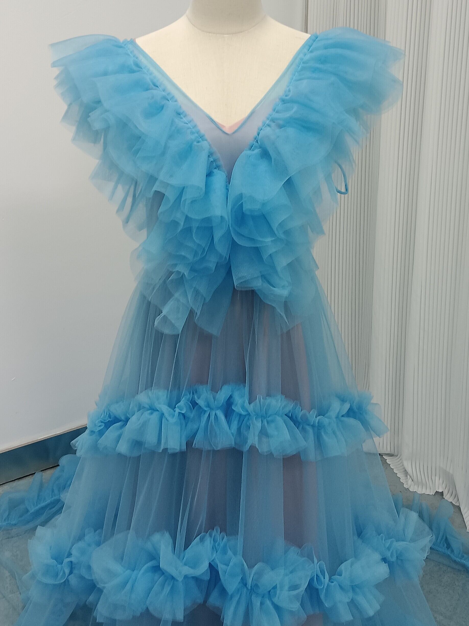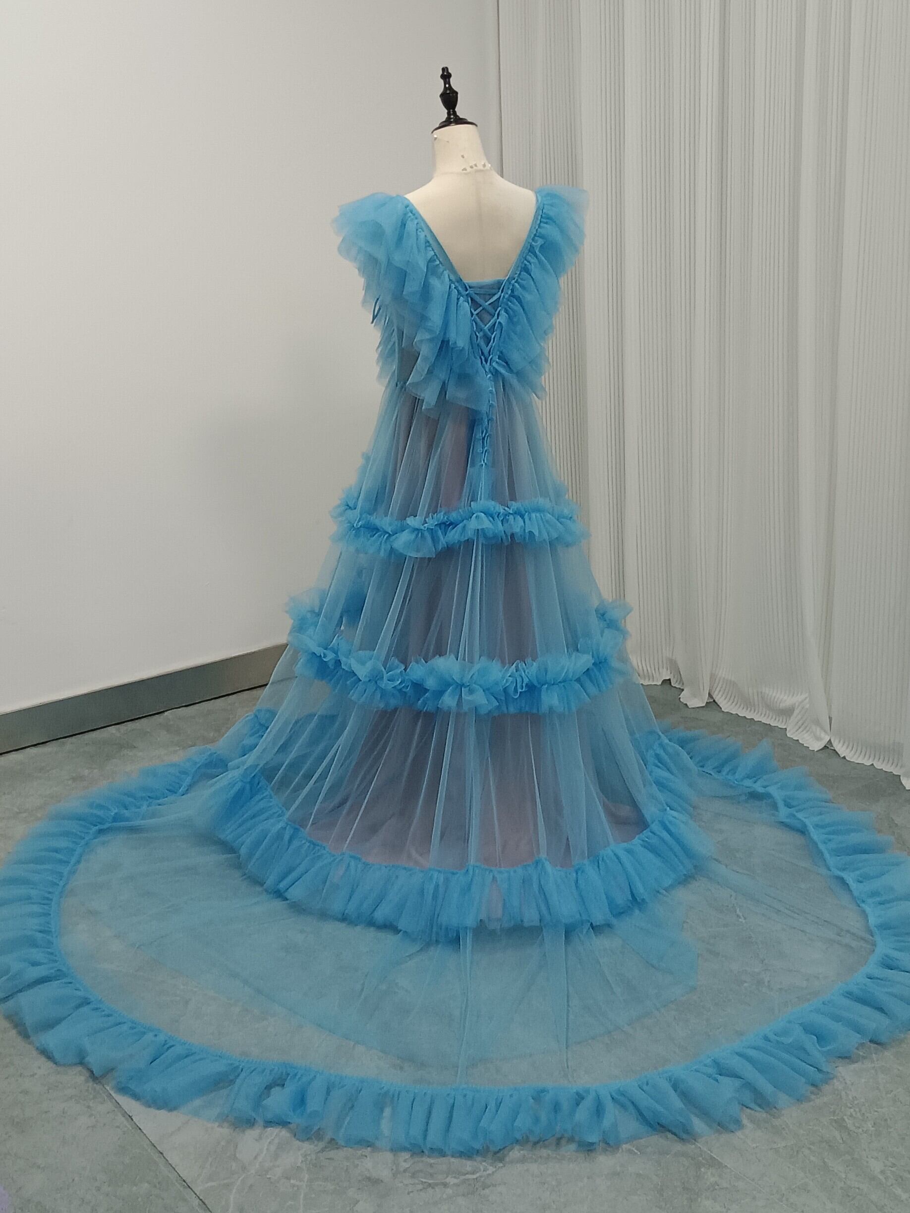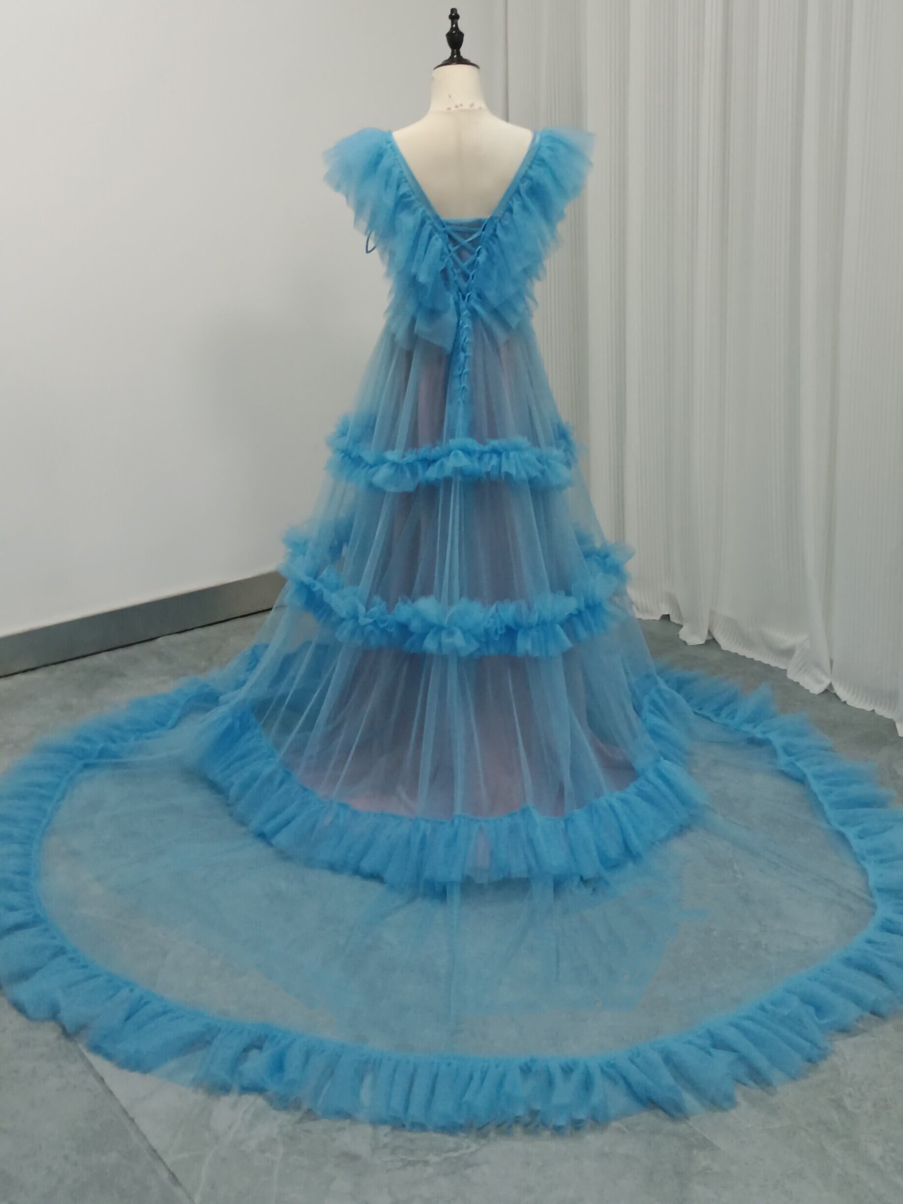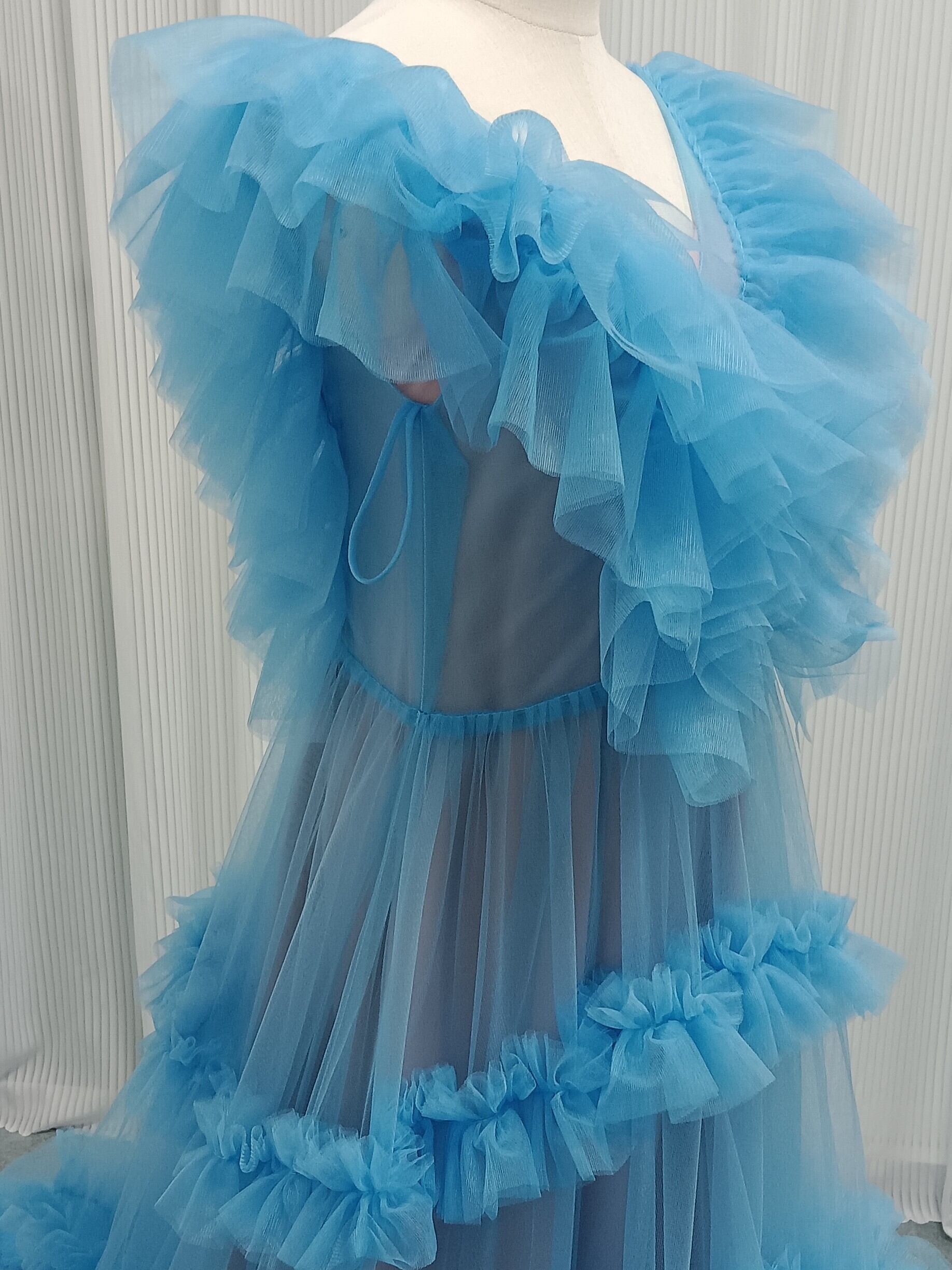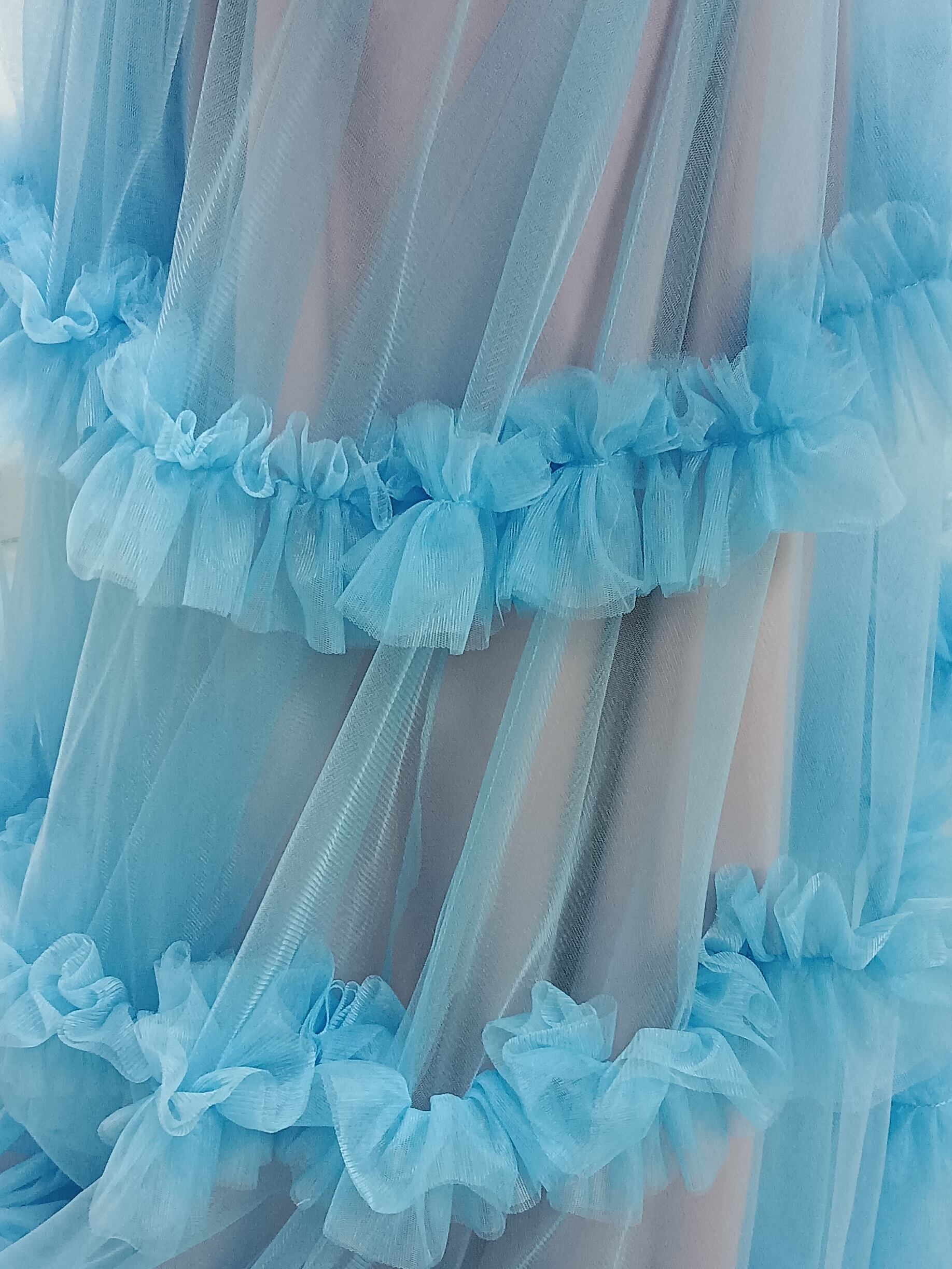 送料無料!爽やかで優しいブルー カラードレス ソフトチュール 重ねたチュールスカート/二次会/挙式/前撮り/結婚式