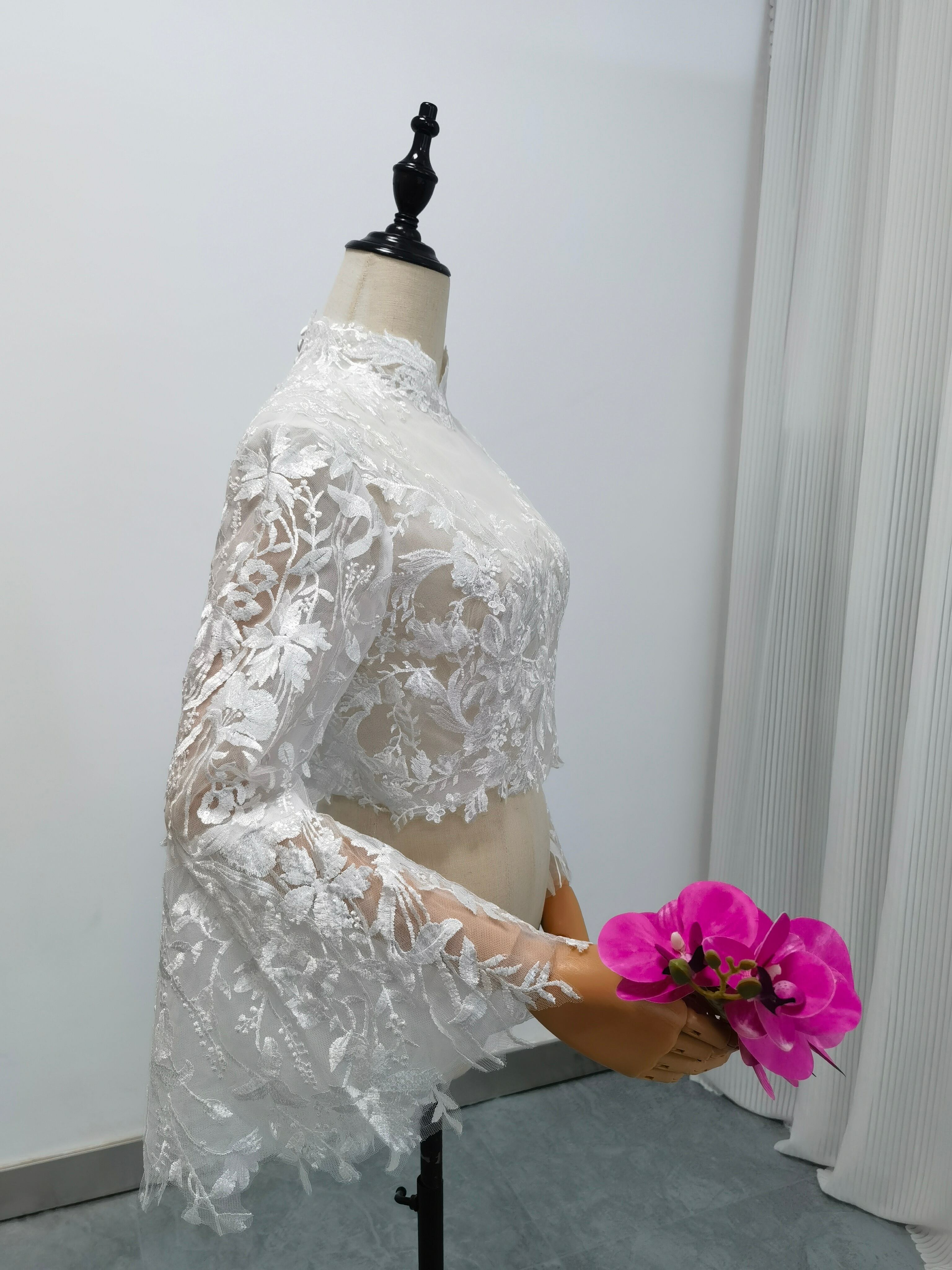 上品!フレア袖 オフショルダー ボレロ贅沢な小花総レース くるみボタン トップスのみ