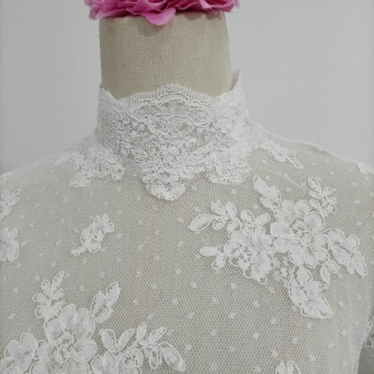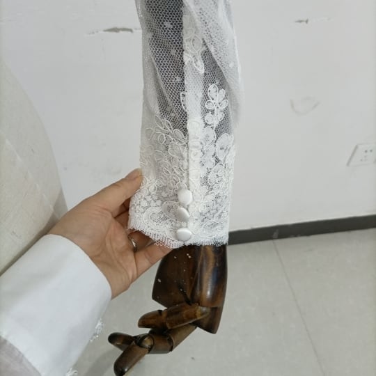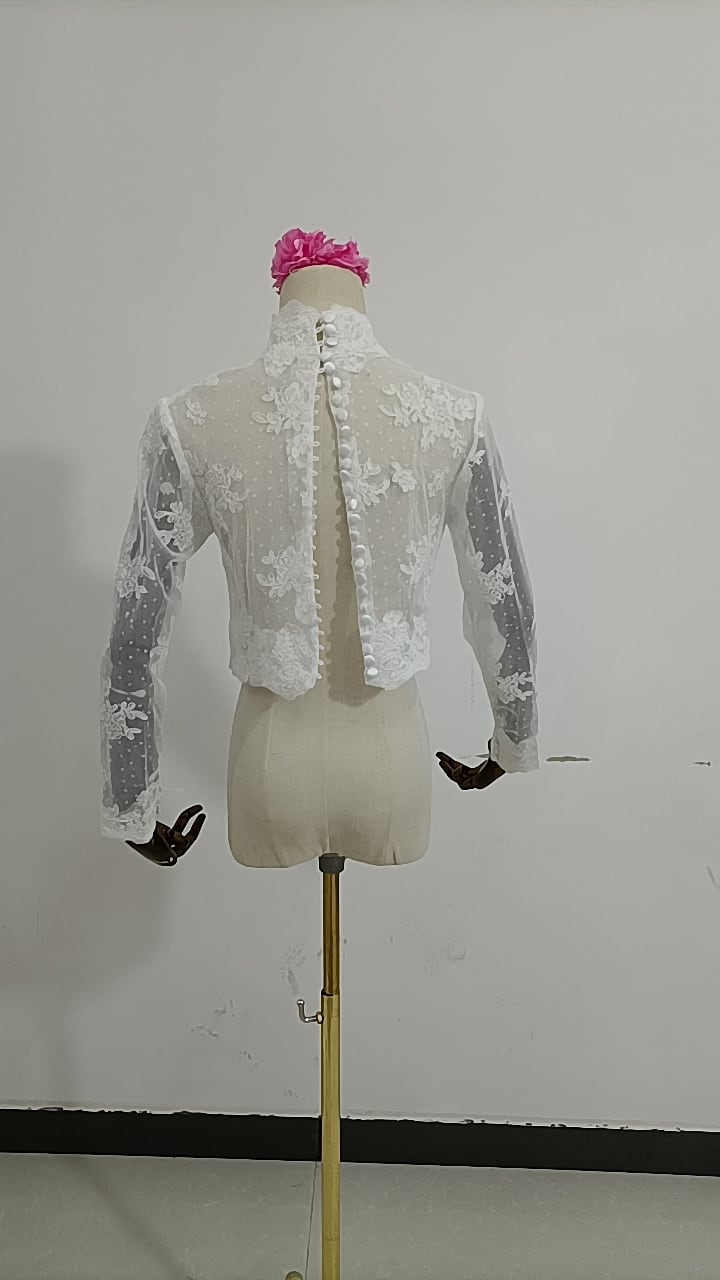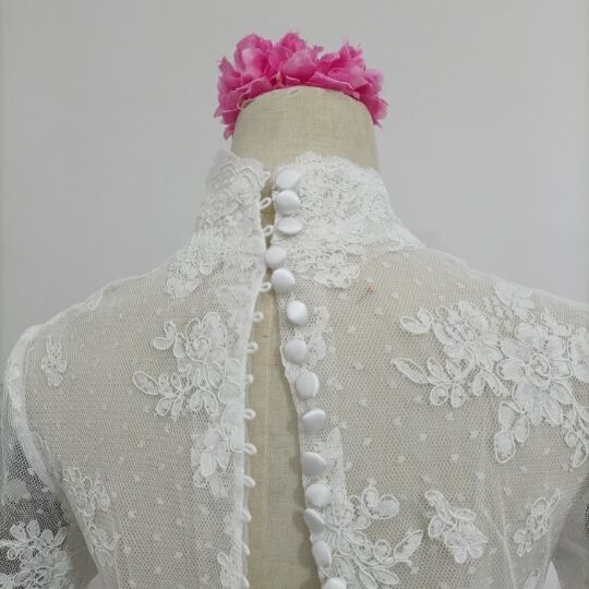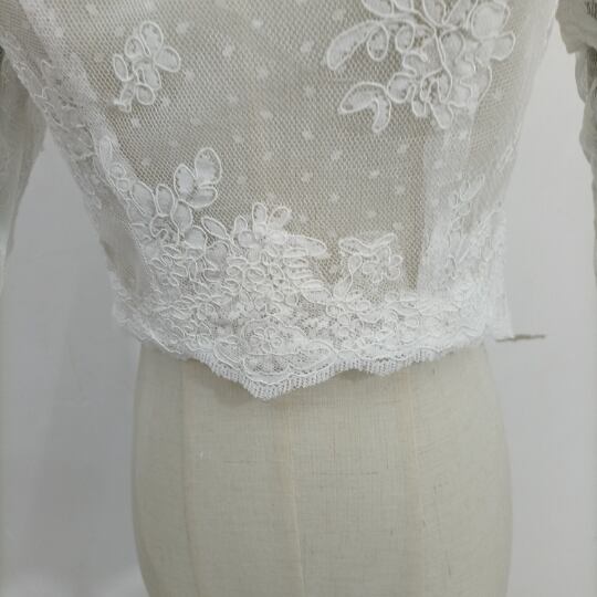 ウエディングドレス中に入れるインナーブラウス ボレロ トップスのみ くるみボタン 繊細レース