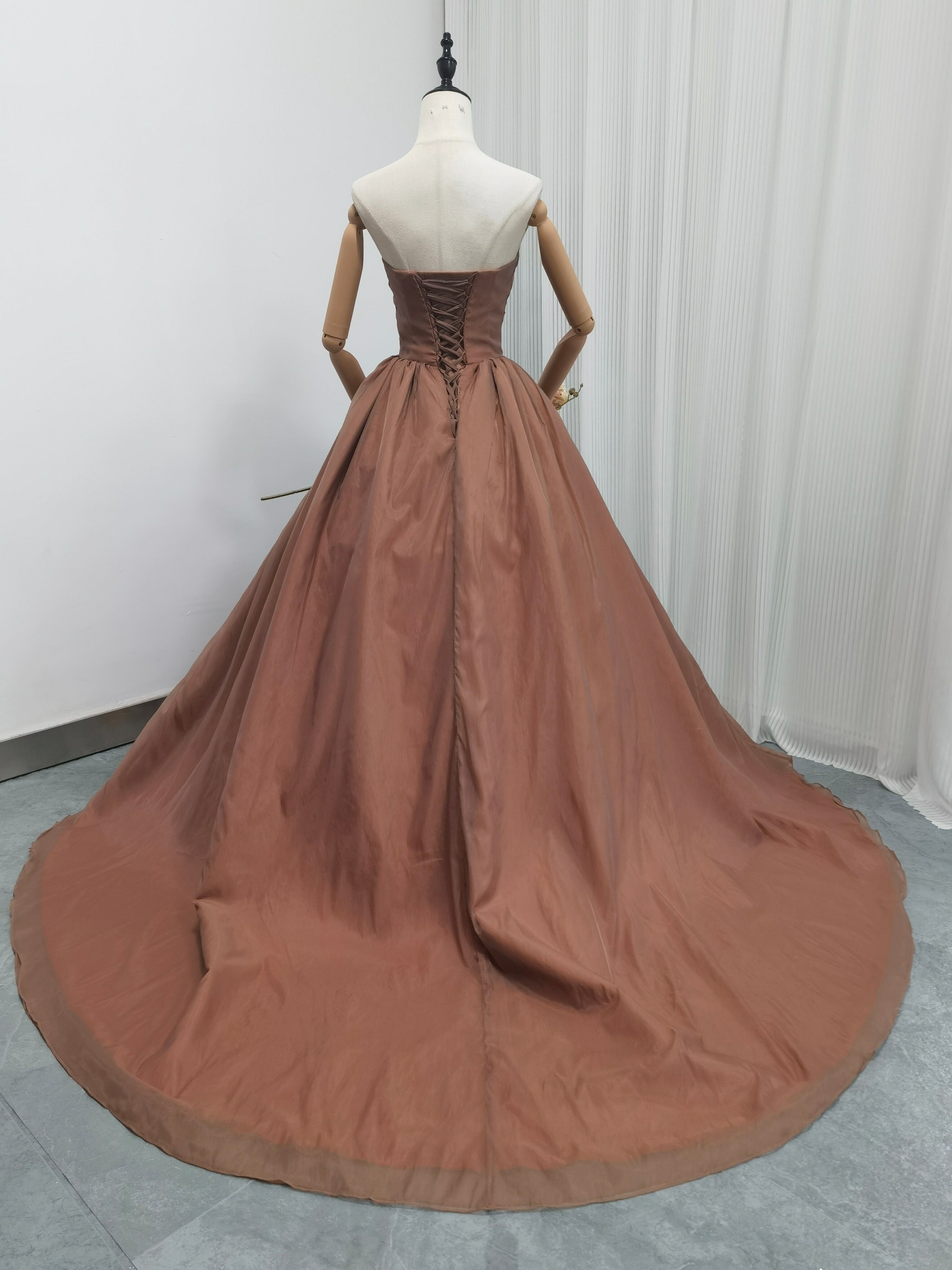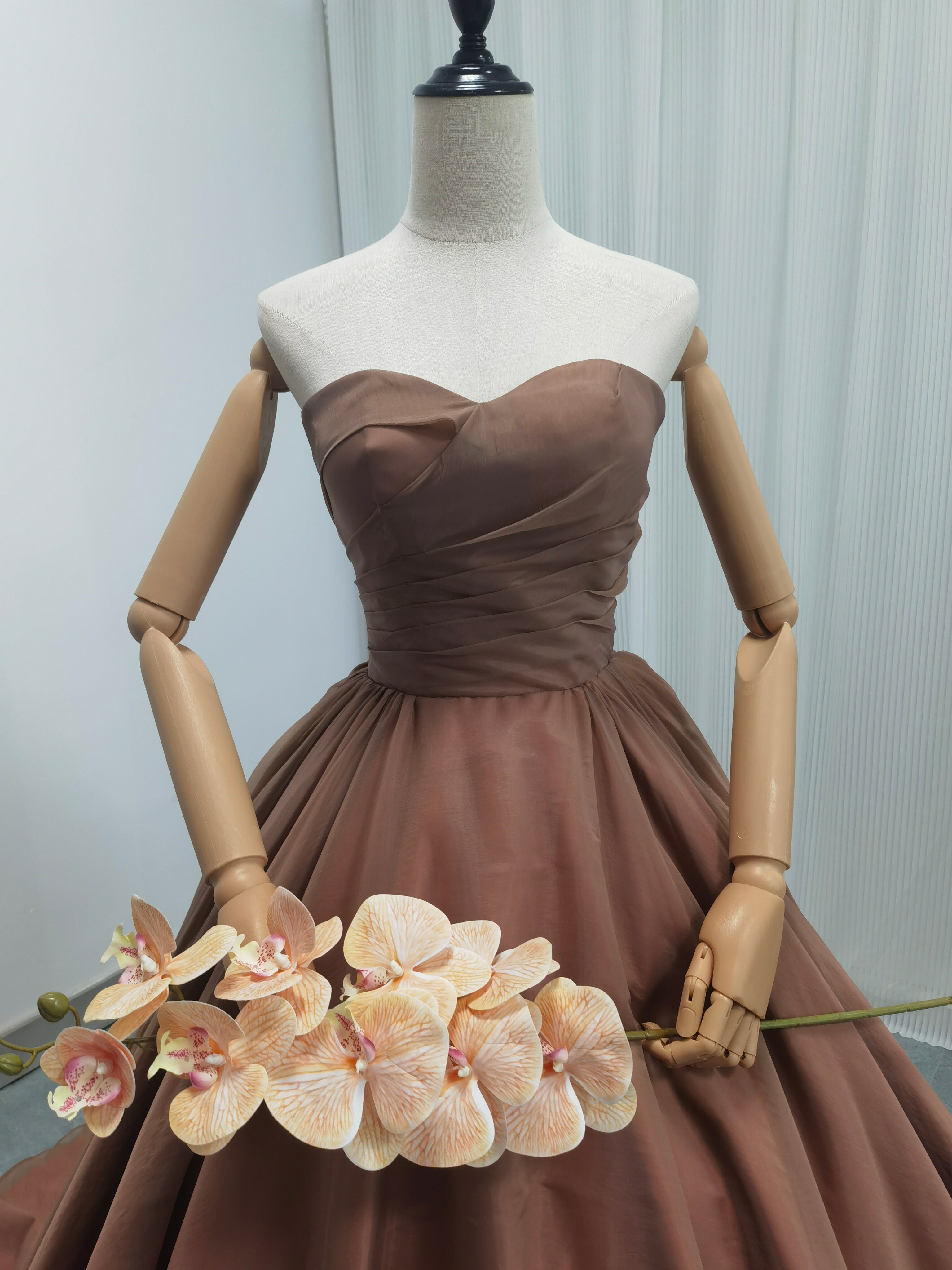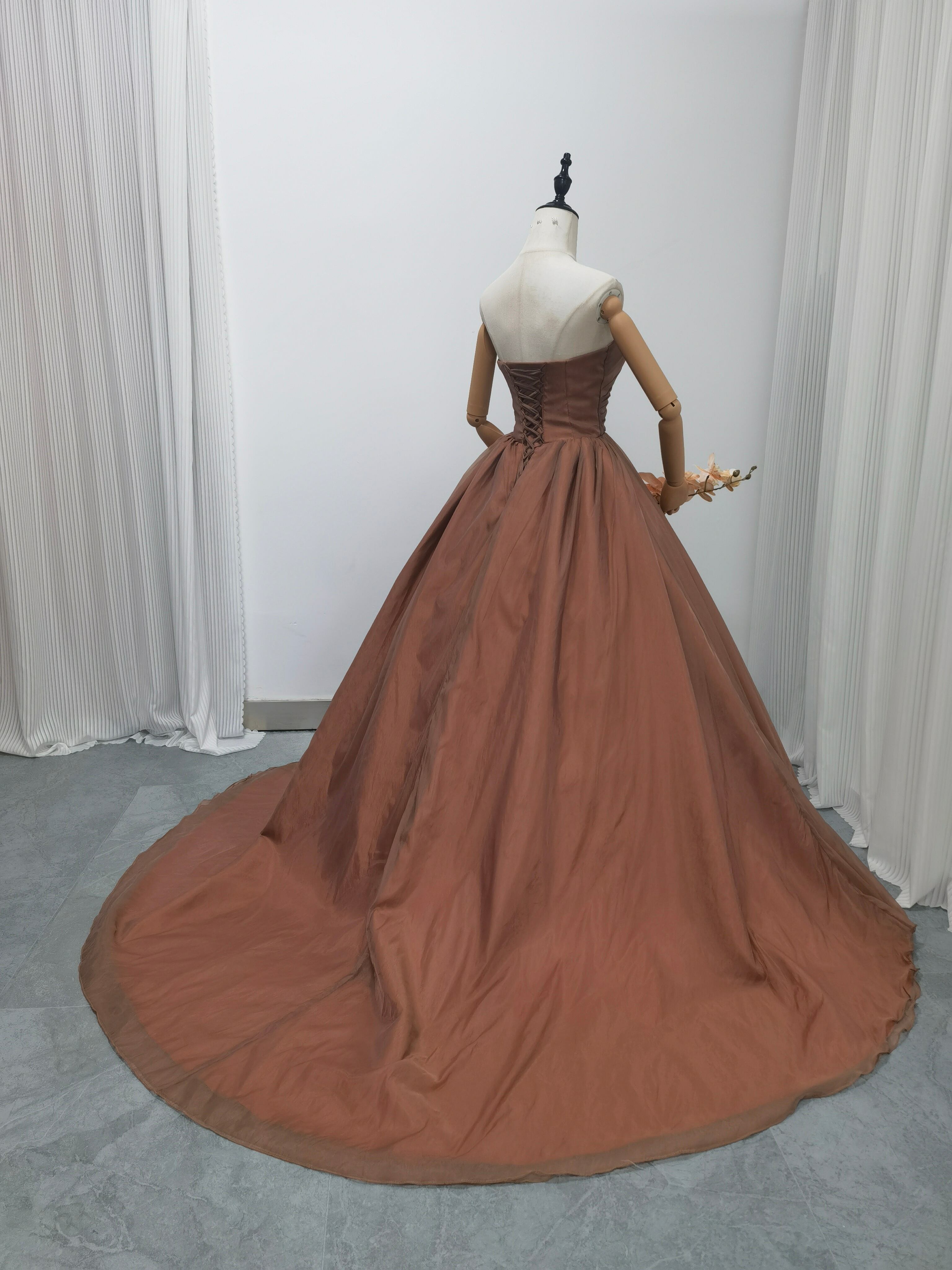 高品質!パーティードレス 前撮り結婚式 2次会 ビスチェ  テラコッタ色オフショルのパフスリーブ