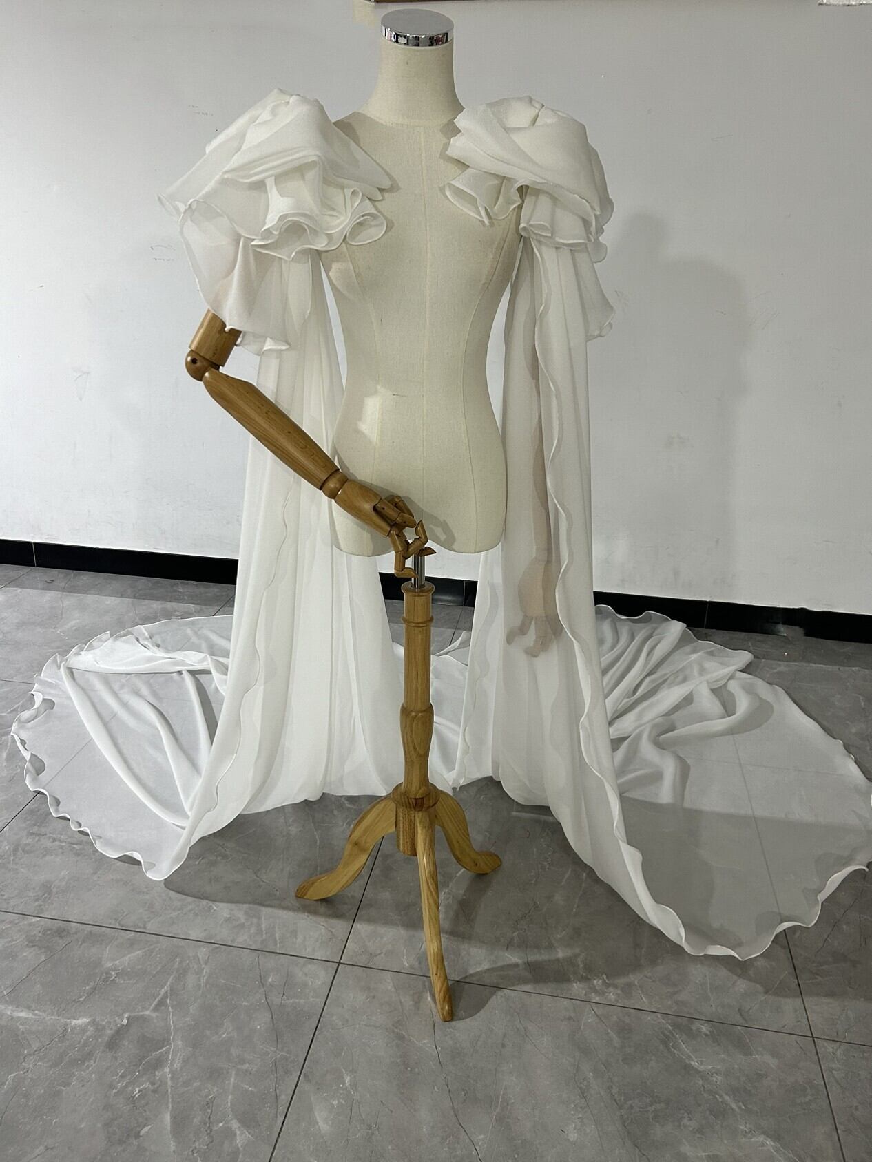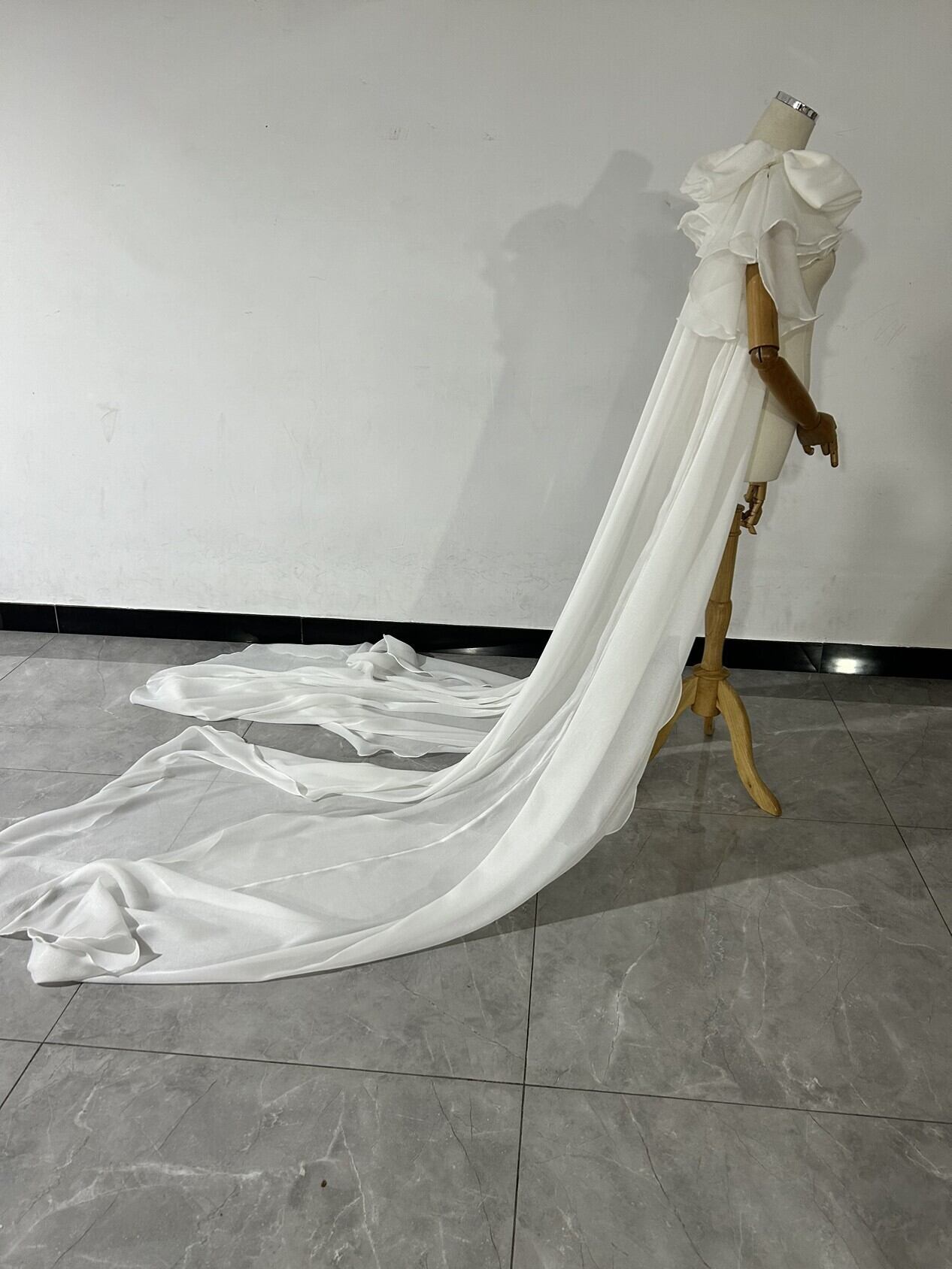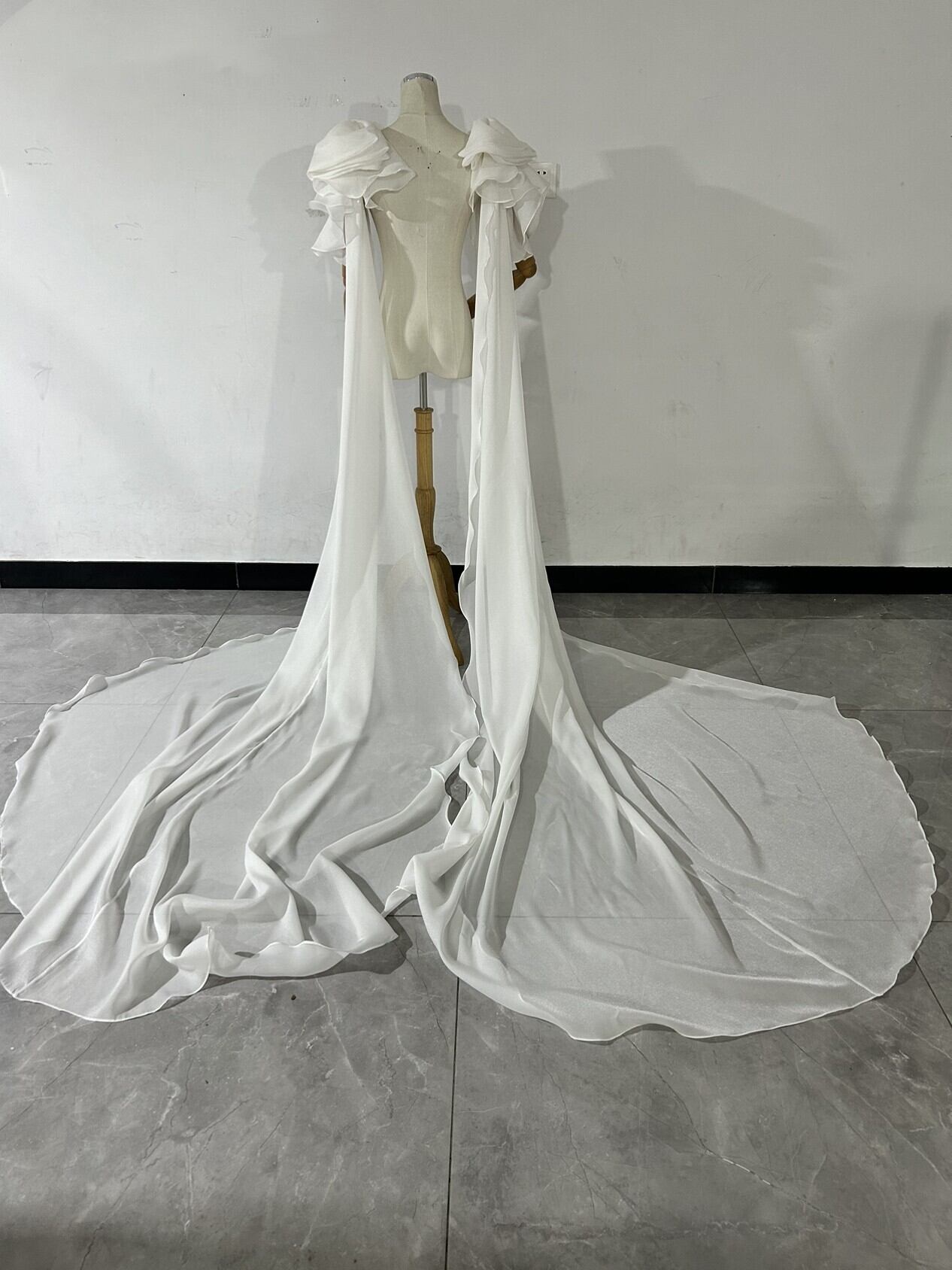 送料無料 !上品!ホワイト ロングトレーン ポンチョ ラッフルトレーン 肩リボン /結婚式/披露宴/