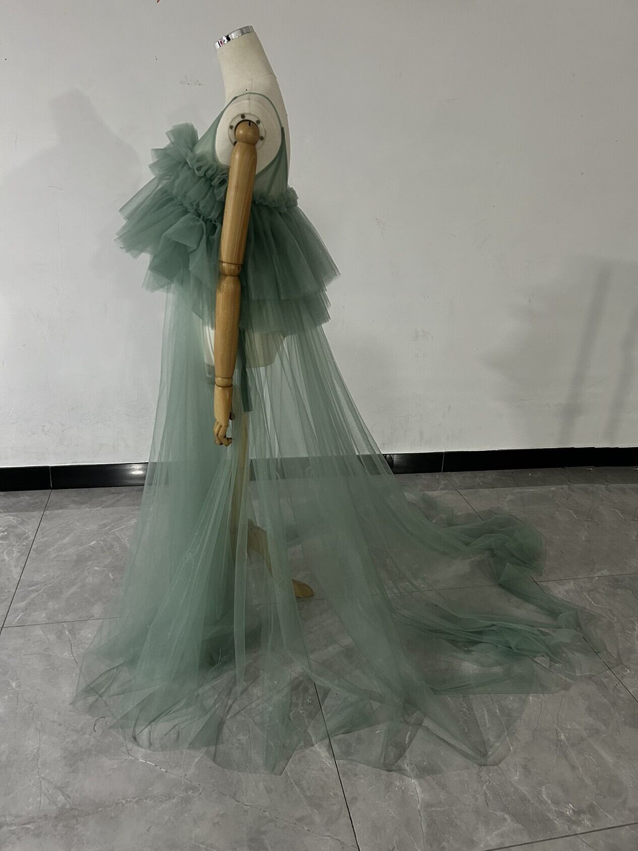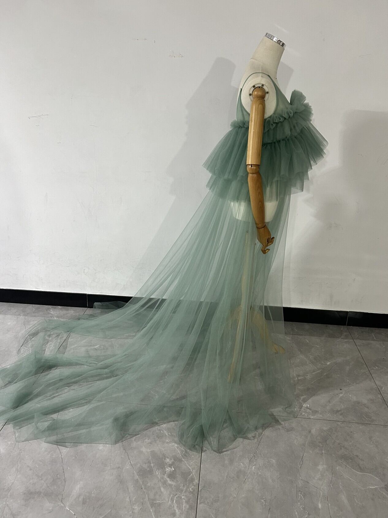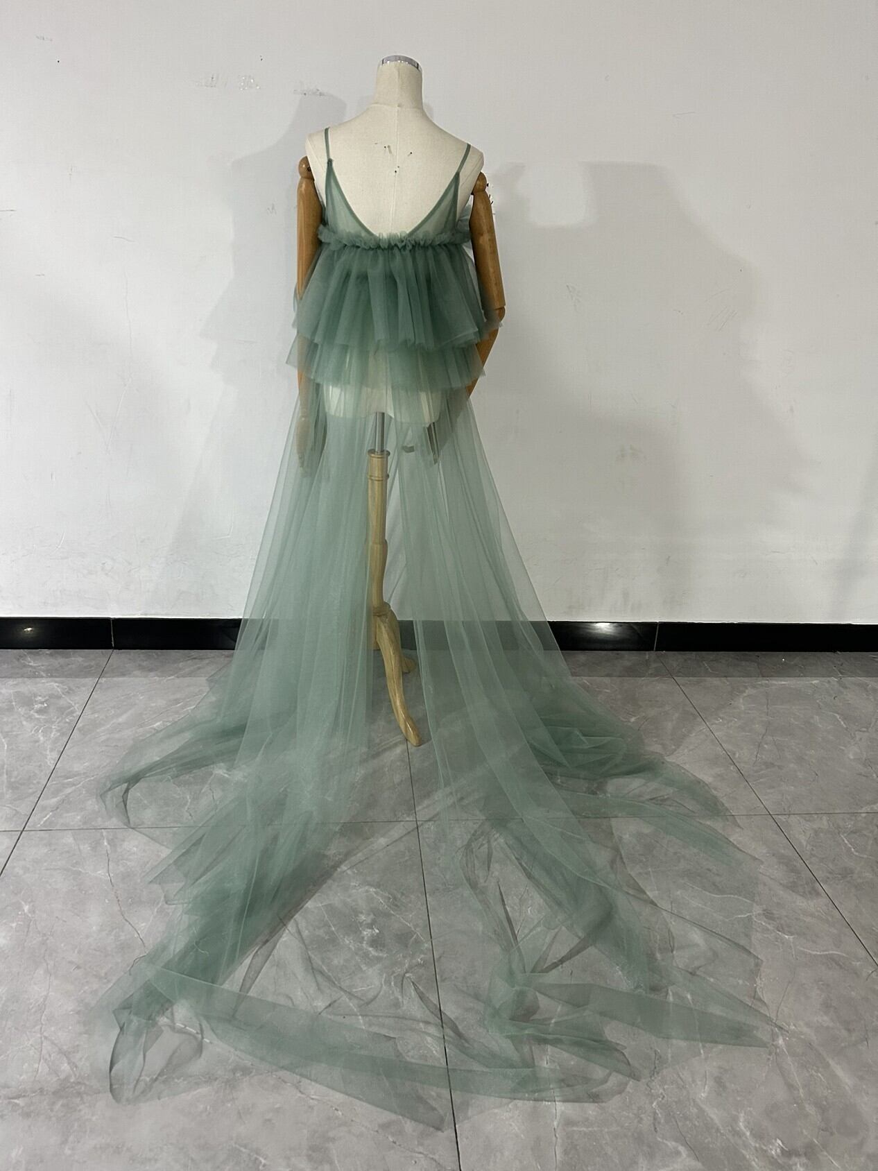 送料無料 !上品!ペールトーンのミントグリーン色 チュールドレス ソフトチュール カラードレスオーバースカート