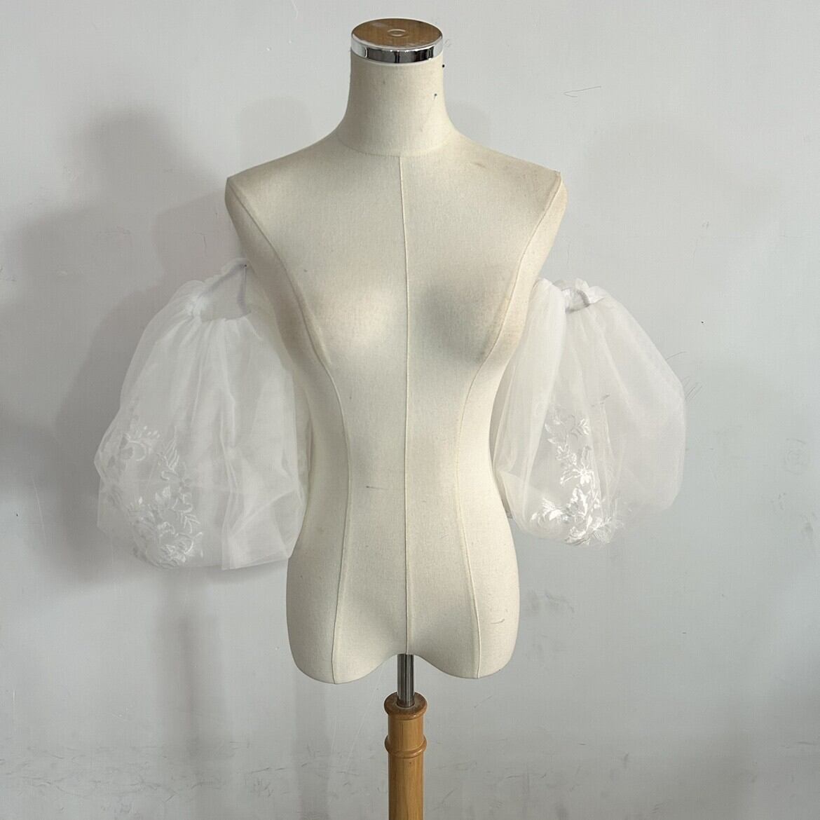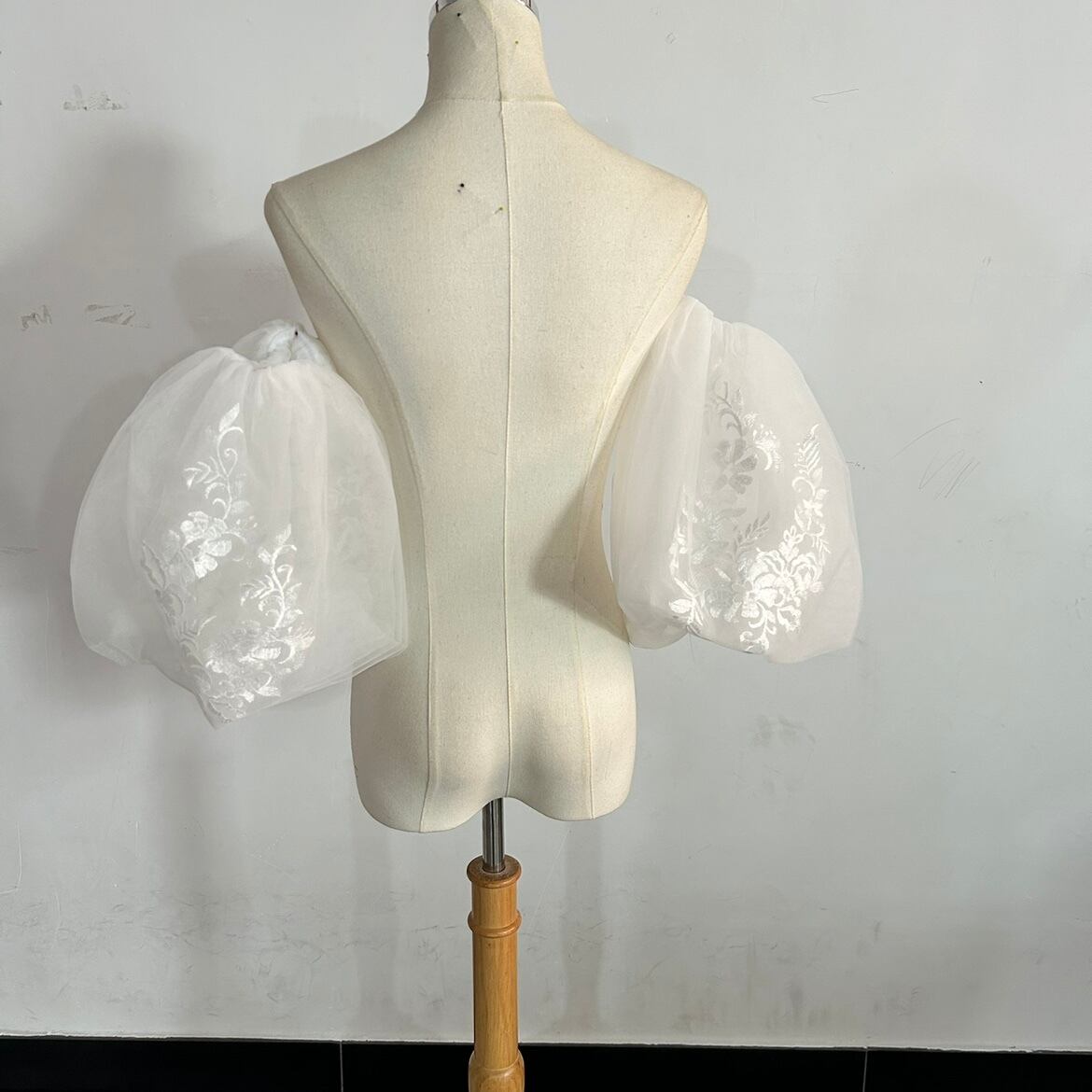 送料無料!大人気上昇美しい花レース 取り外し袖 ホワイト ショルダーの付け袖 パフスリーブ オーダー可能