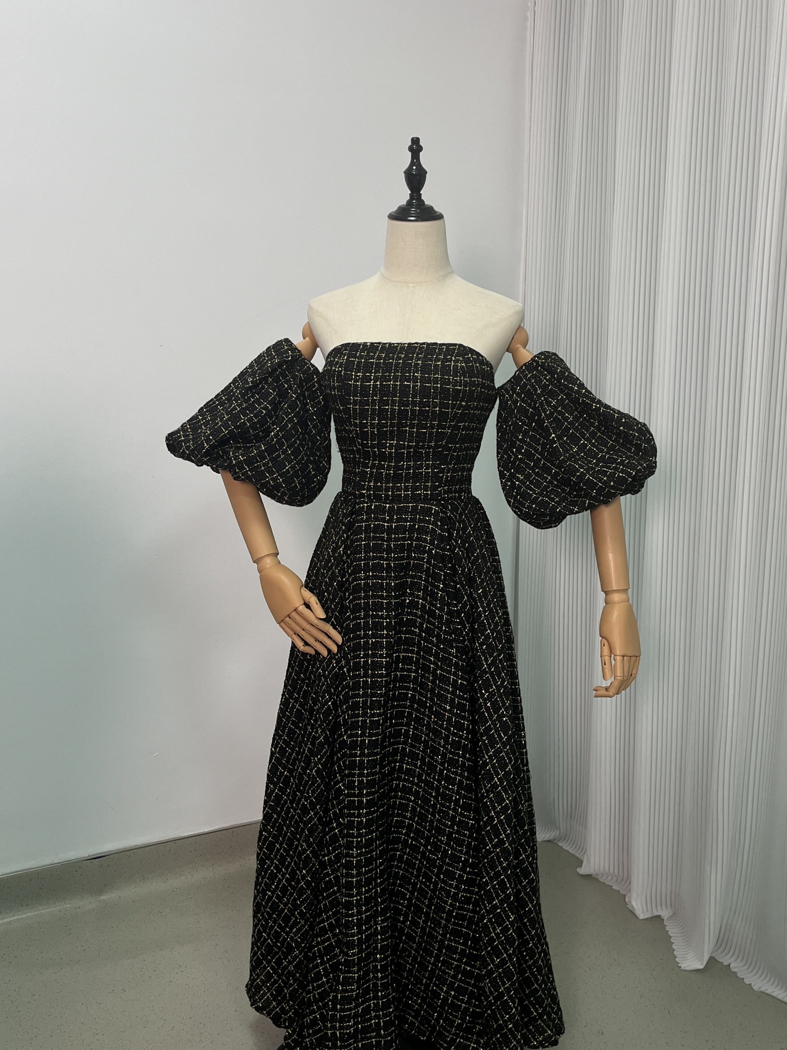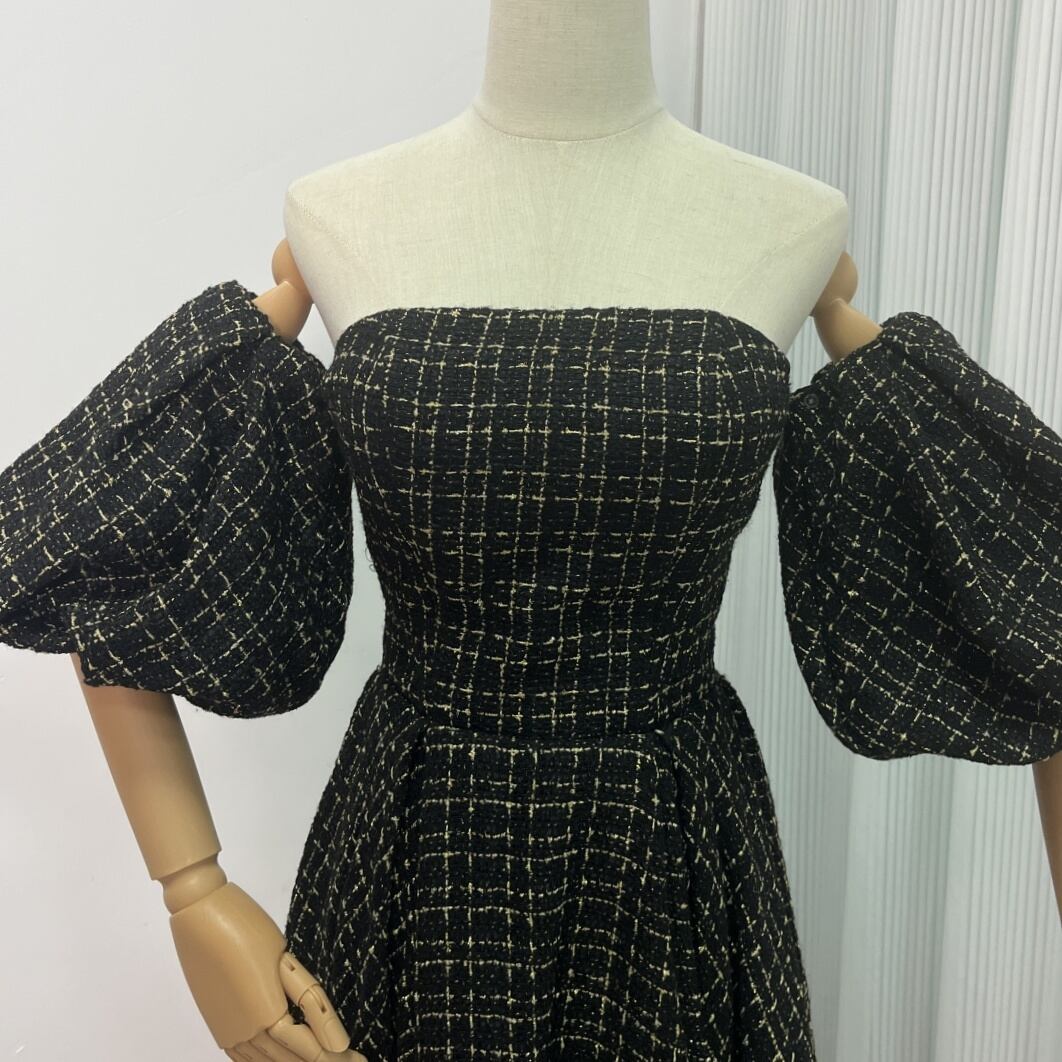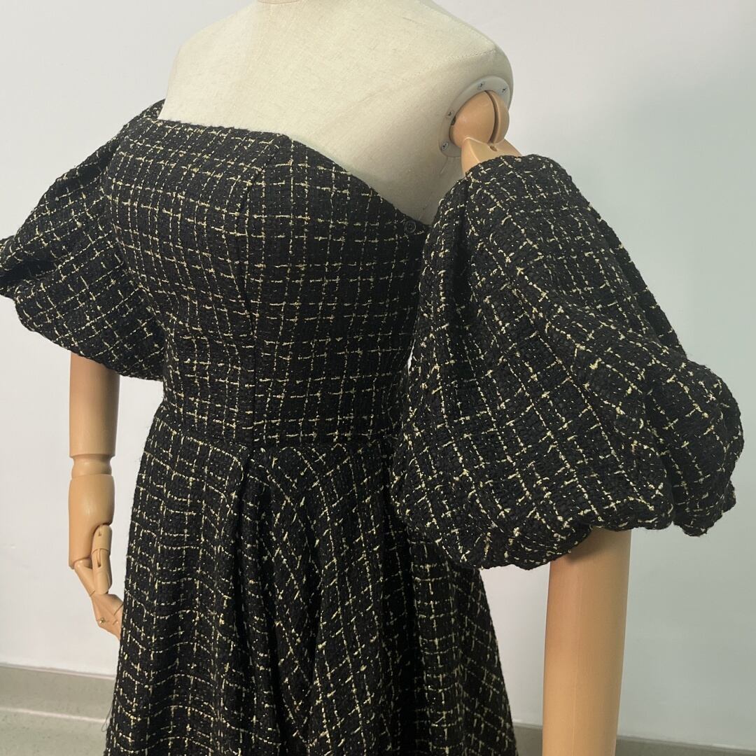 送料無料!黒金チャック ベアトップ カラードレス パフスリーブ ソフトチュール オフショル 前撮り 結婚式