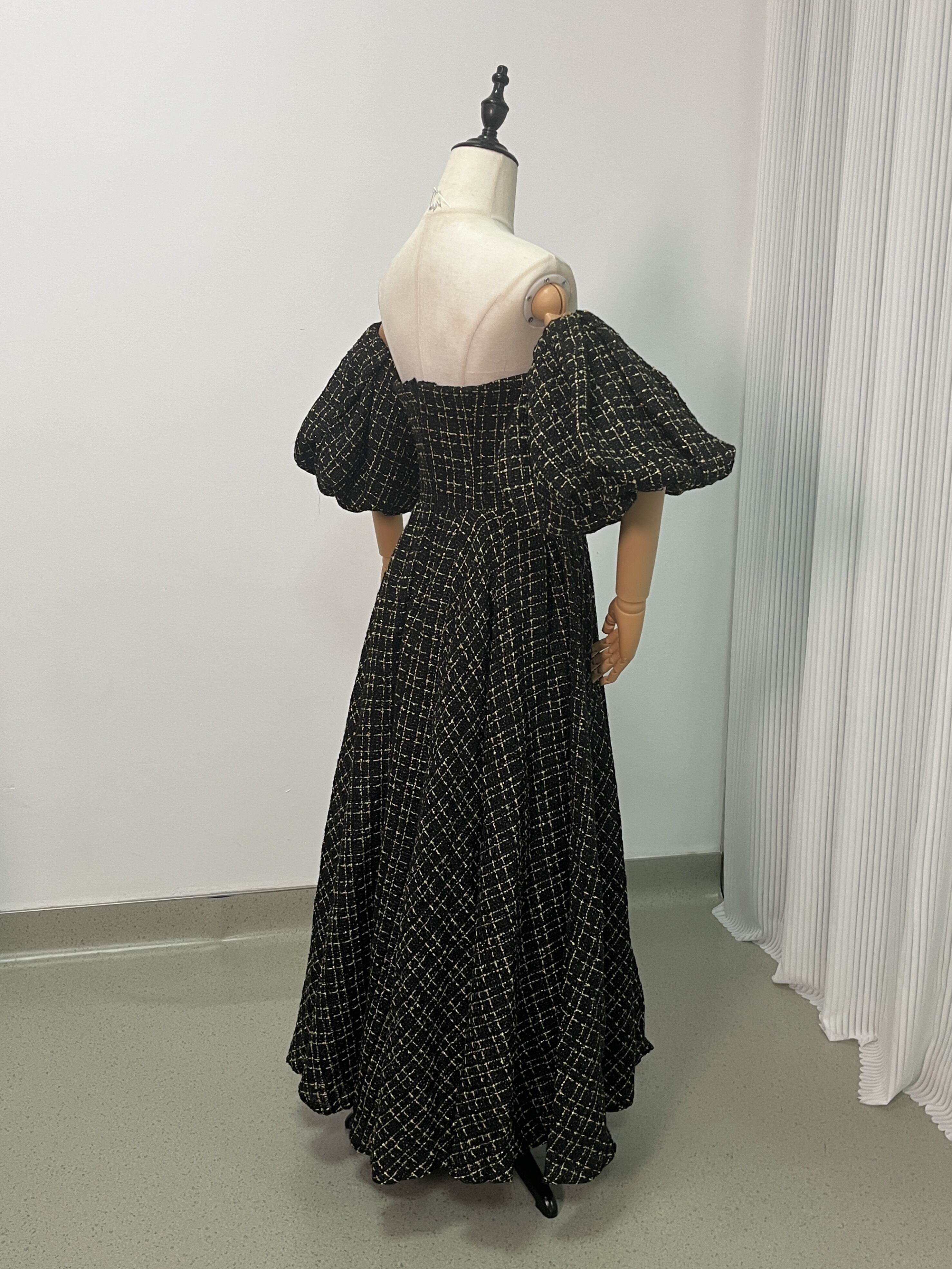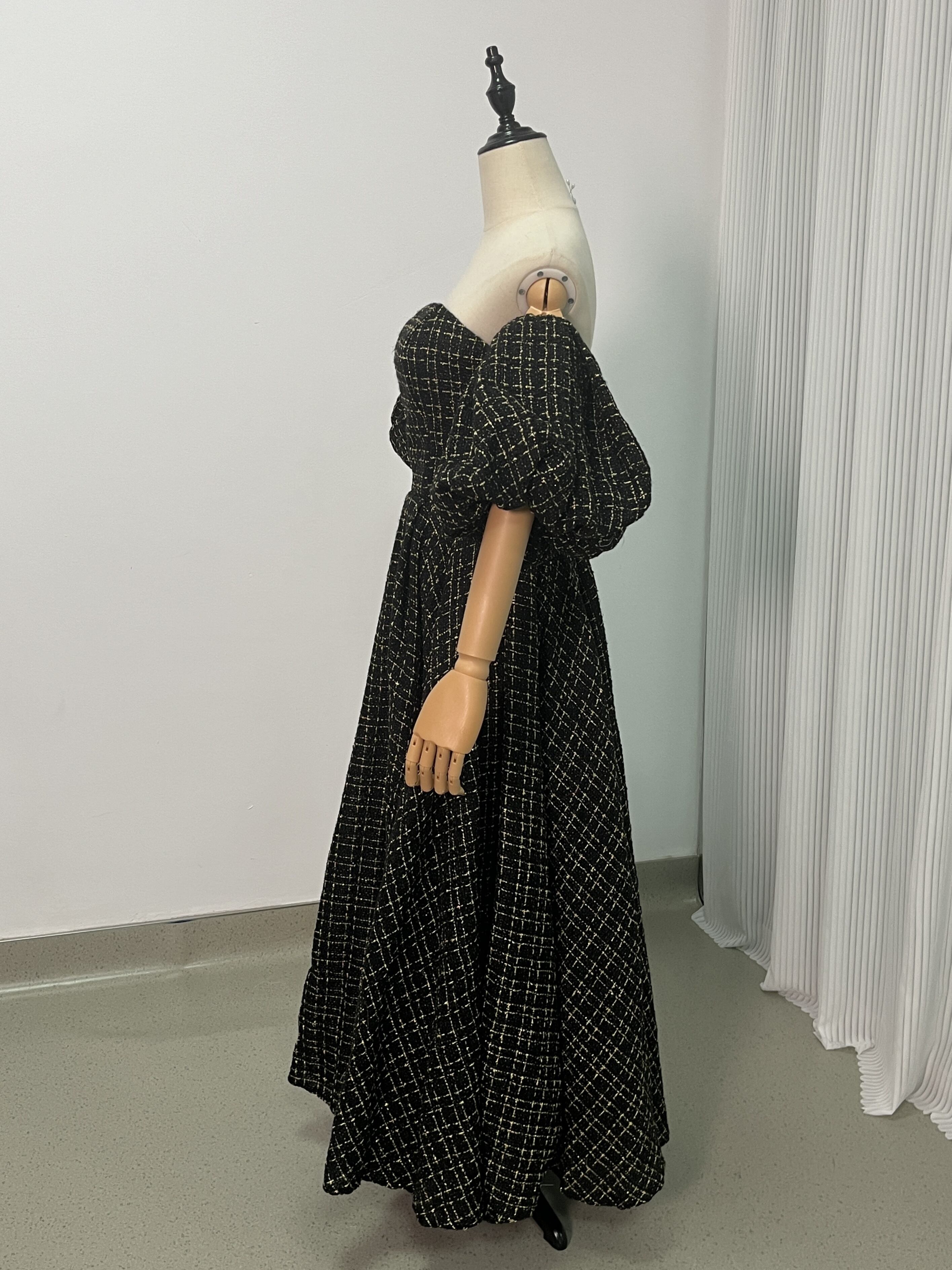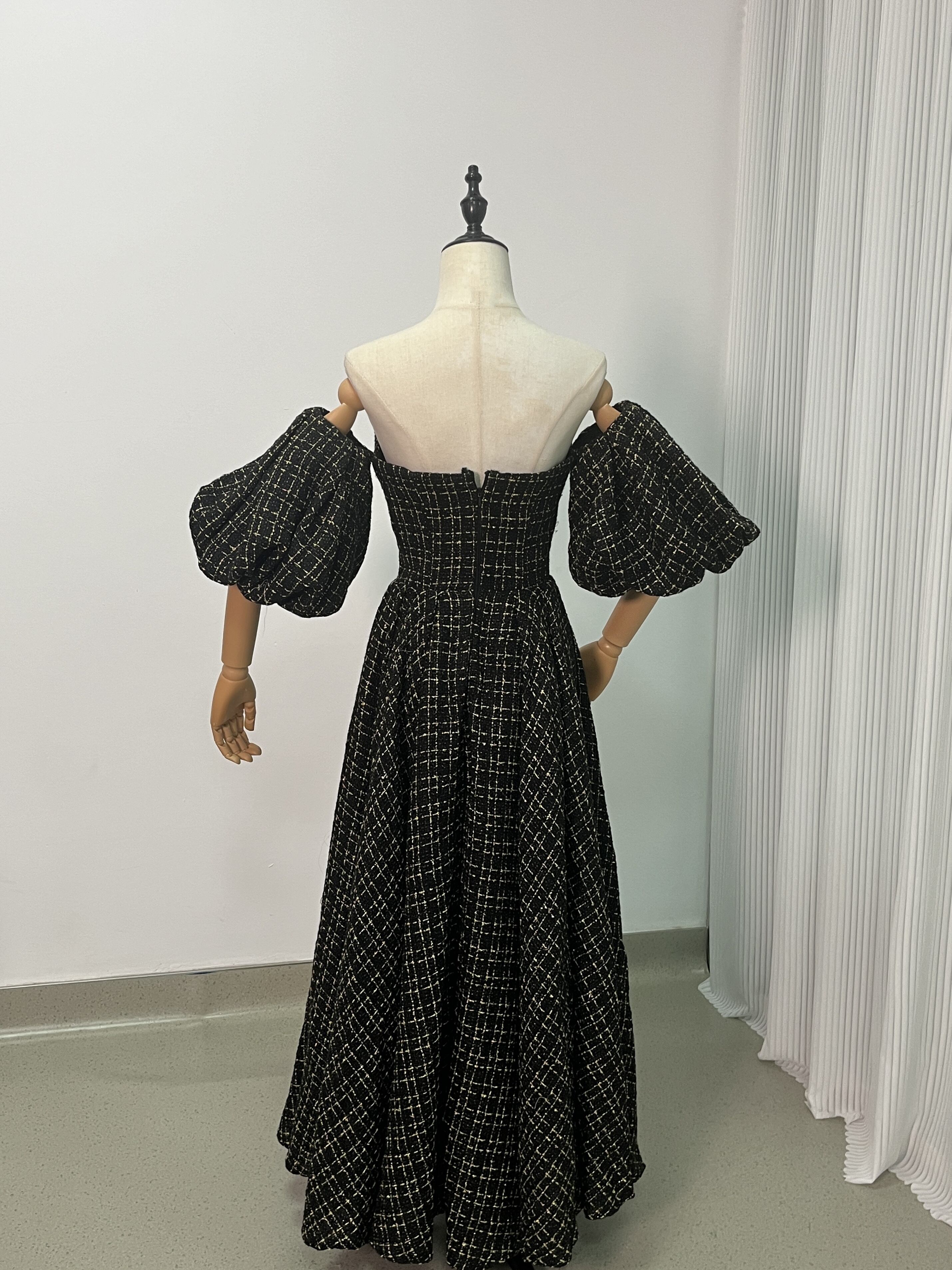送料無料!黒金チャック ベアトップ カラードレス パフスリーブ ソフトチュール オフショル 前撮り 結婚式