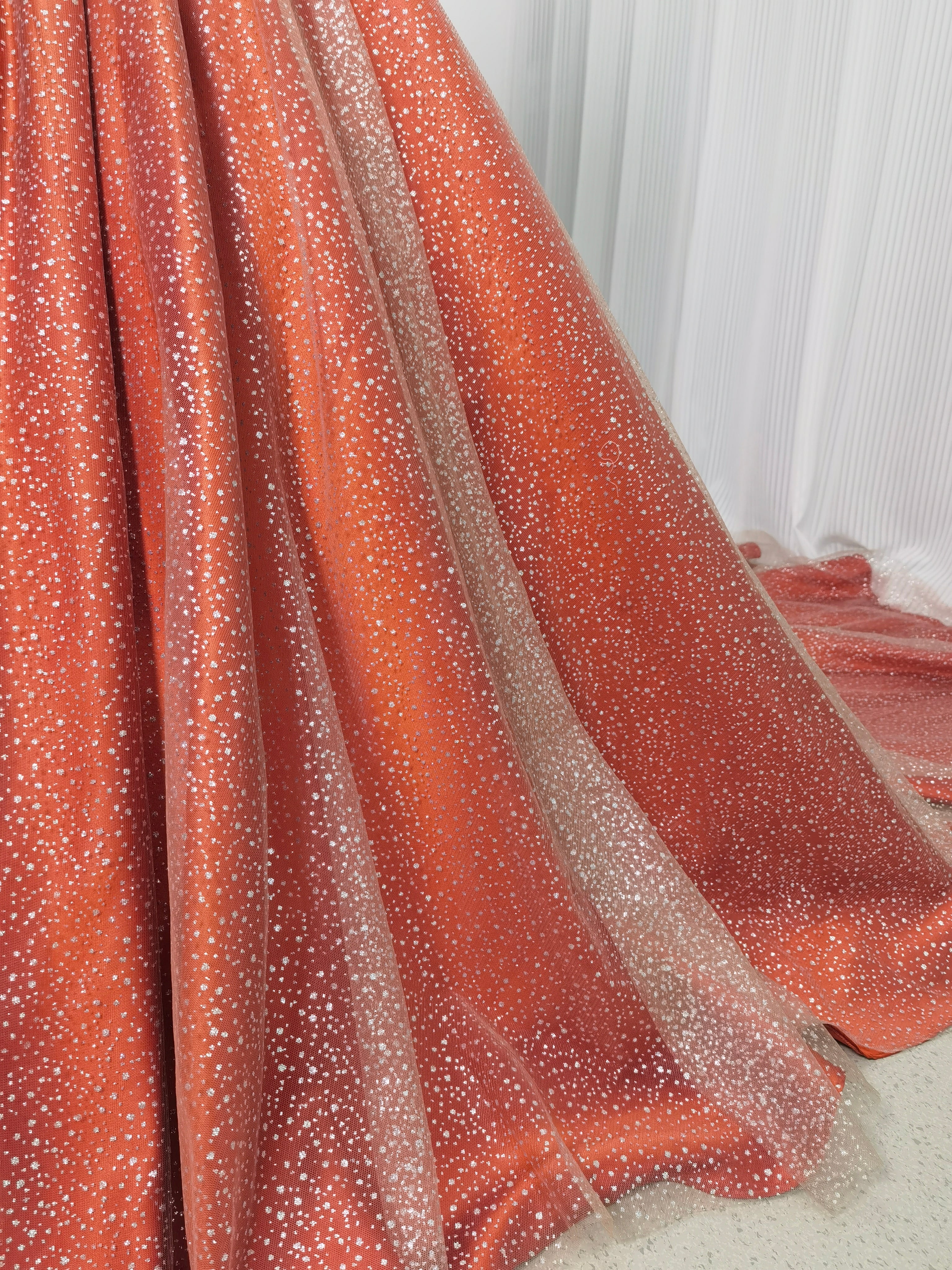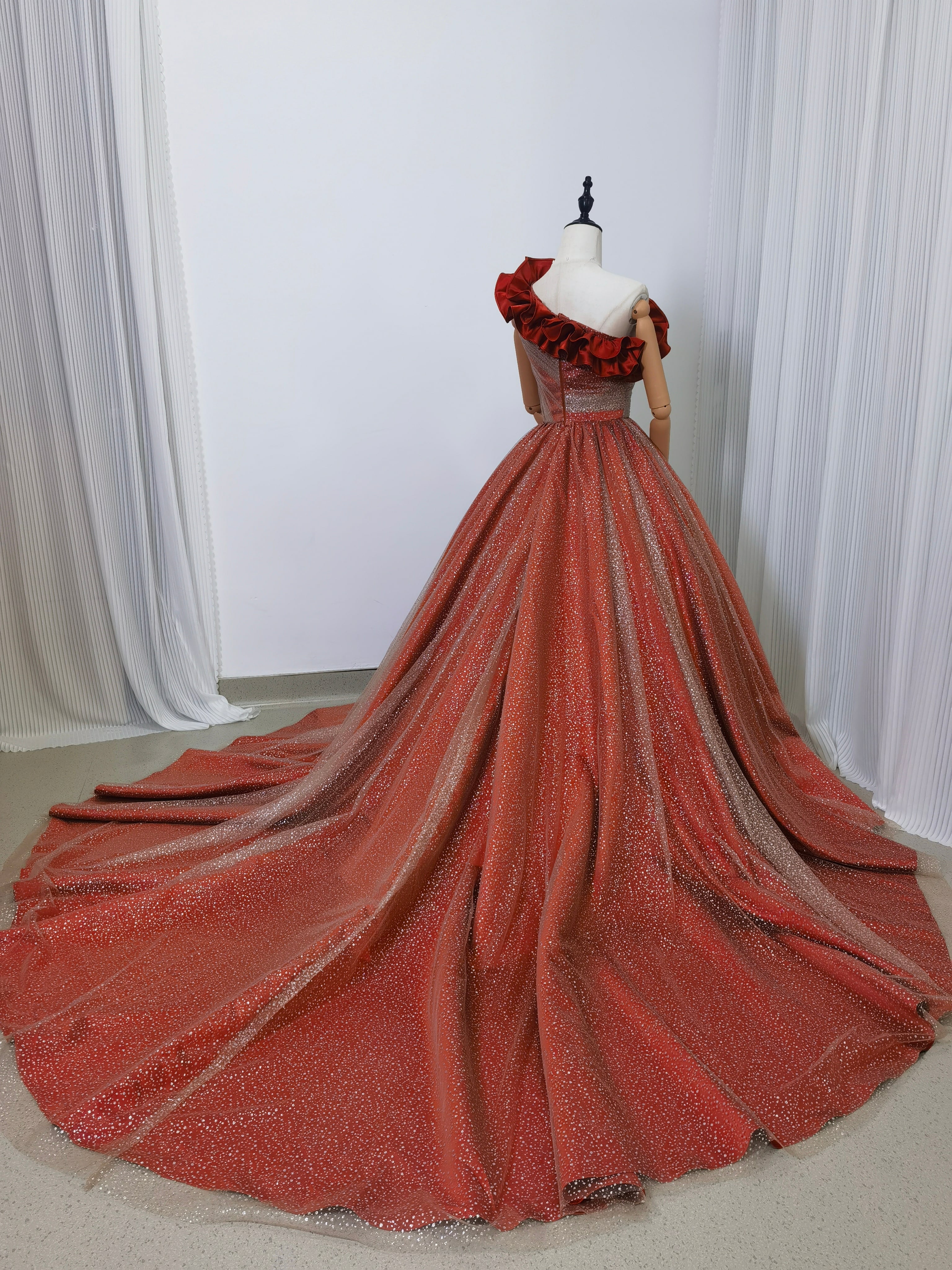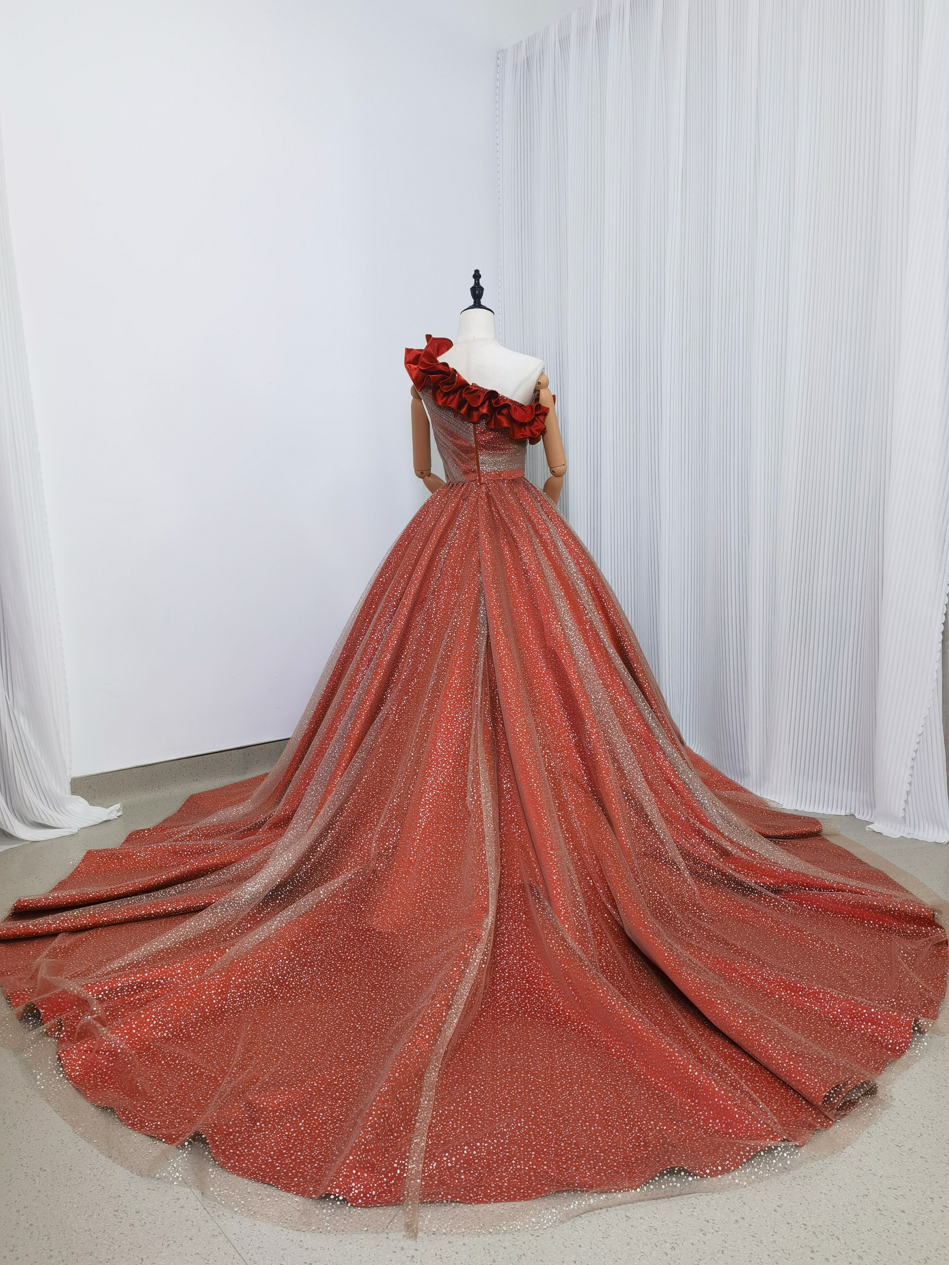豪華! ワンショルダー カラードレス キラキラグリッターチュール ソフトチュール 華やかなトレーン /結婚式/披露宴/