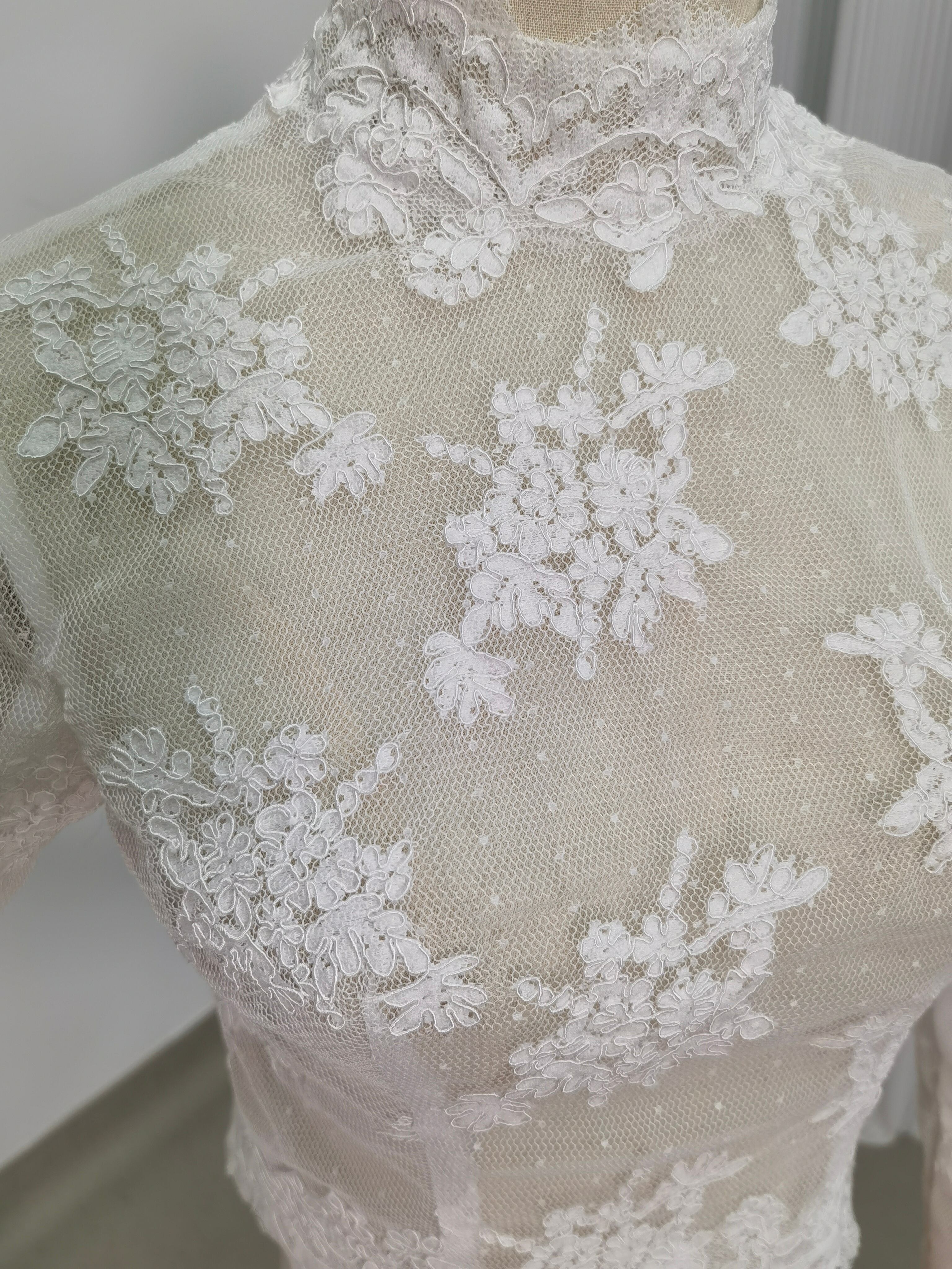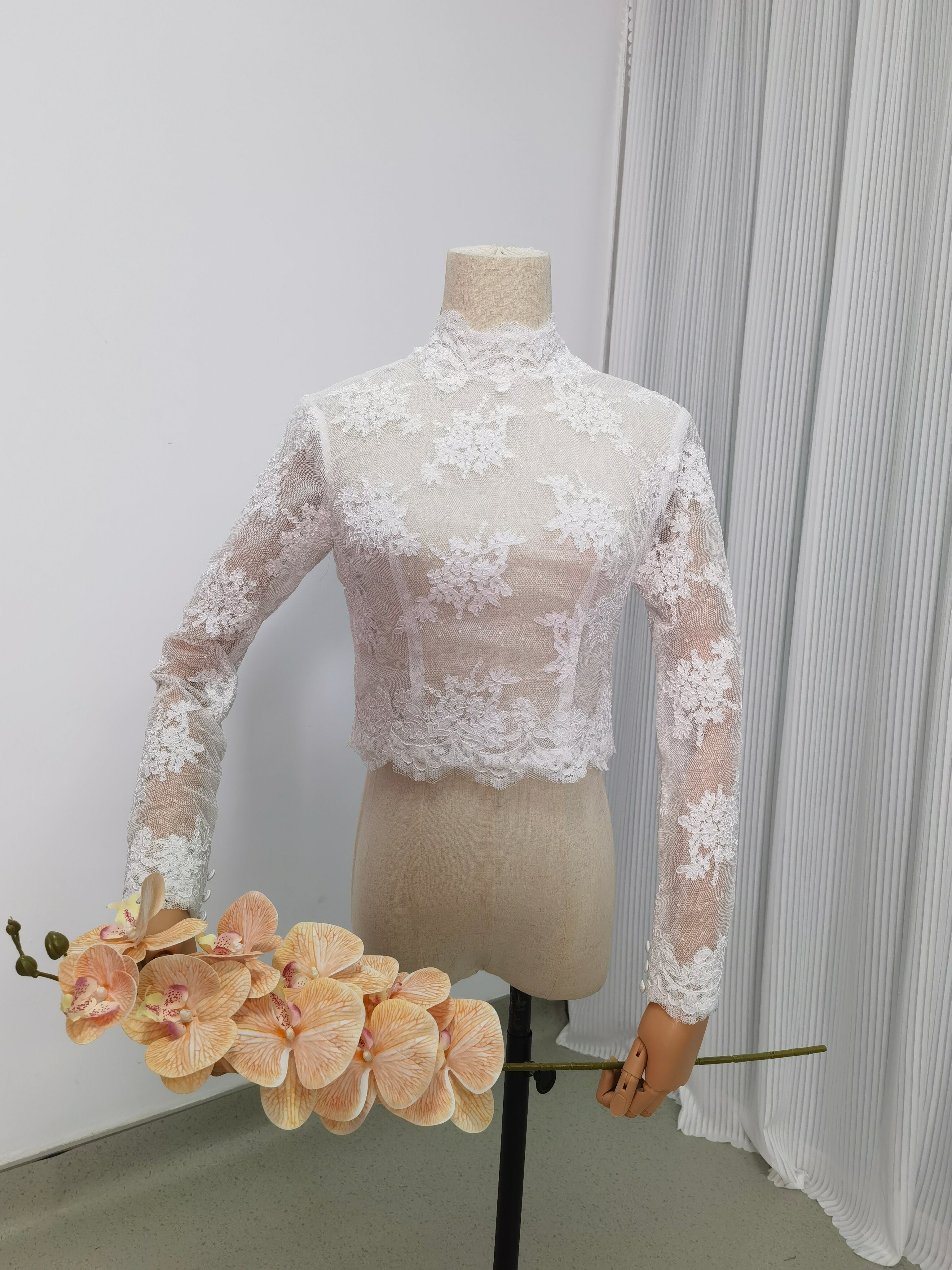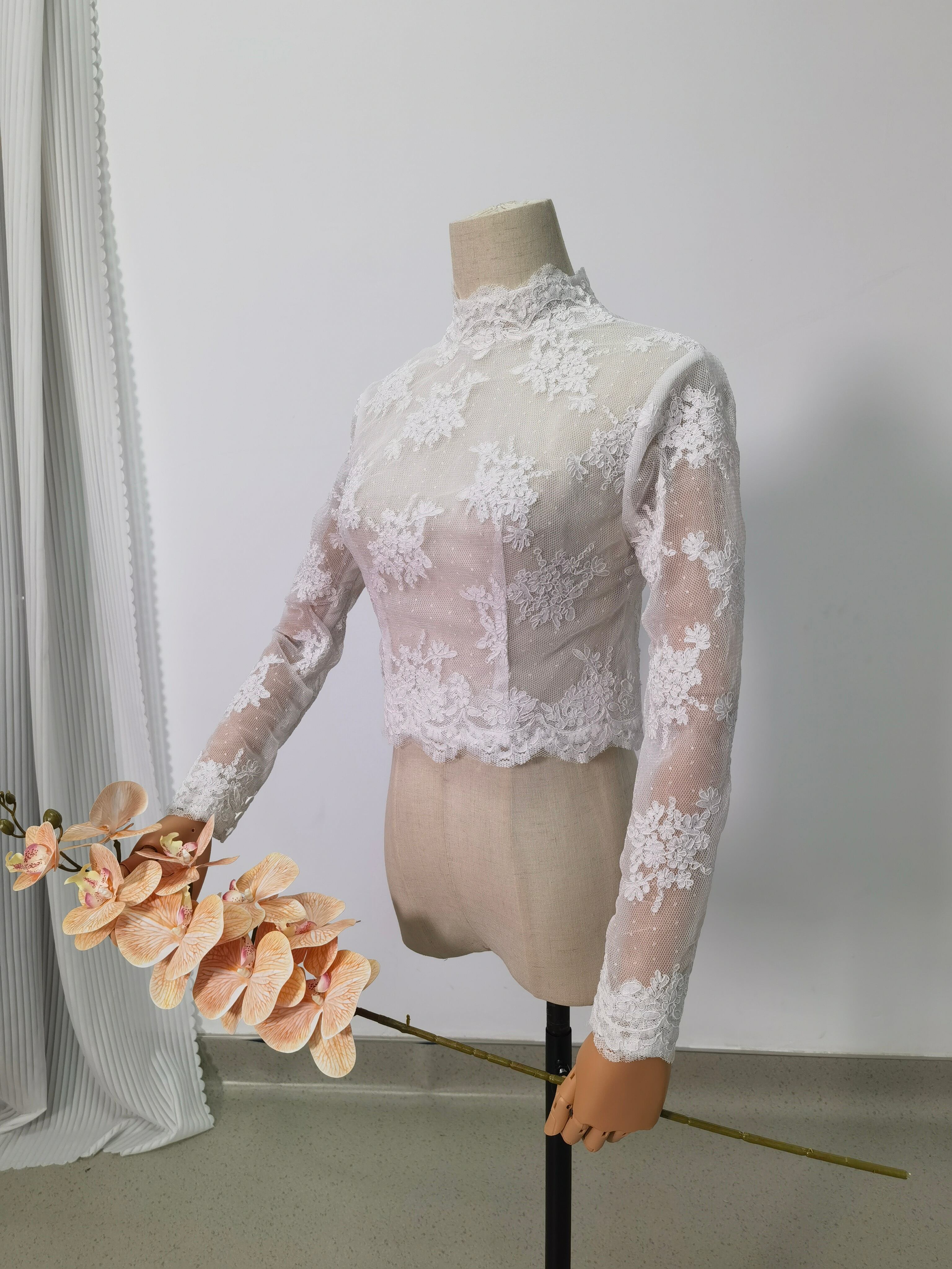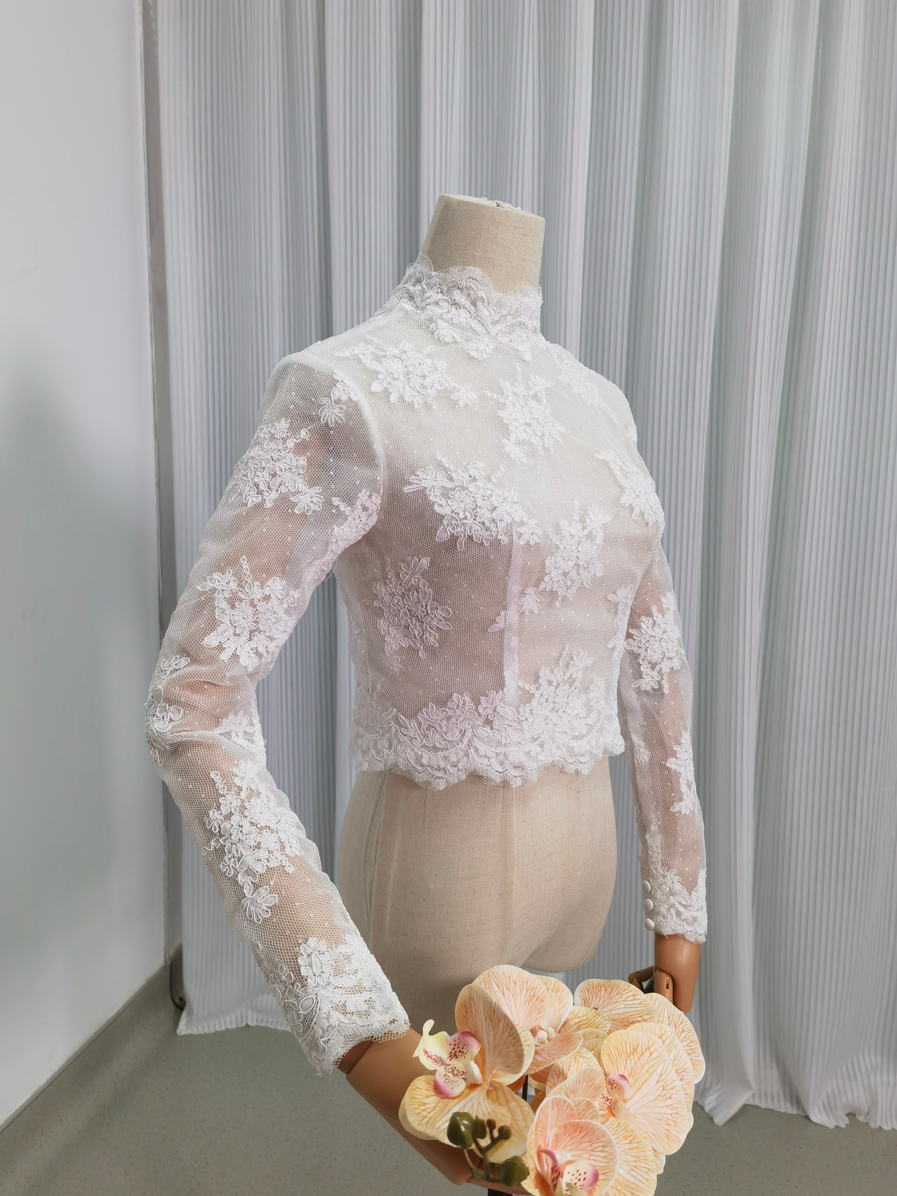 上品! オフショルダー ボレロ贅沢な小花総レース くるみボタン トップスのみ
