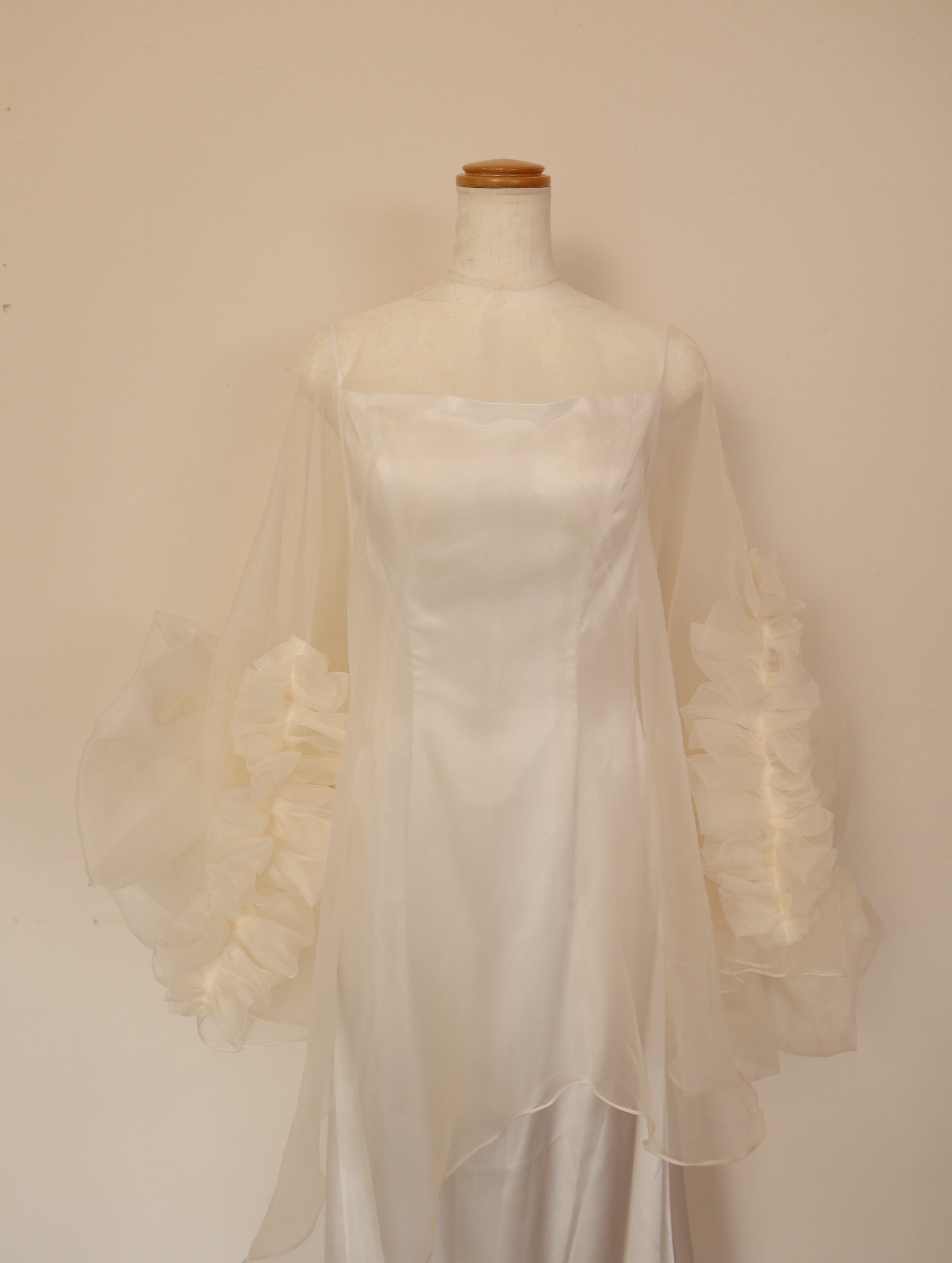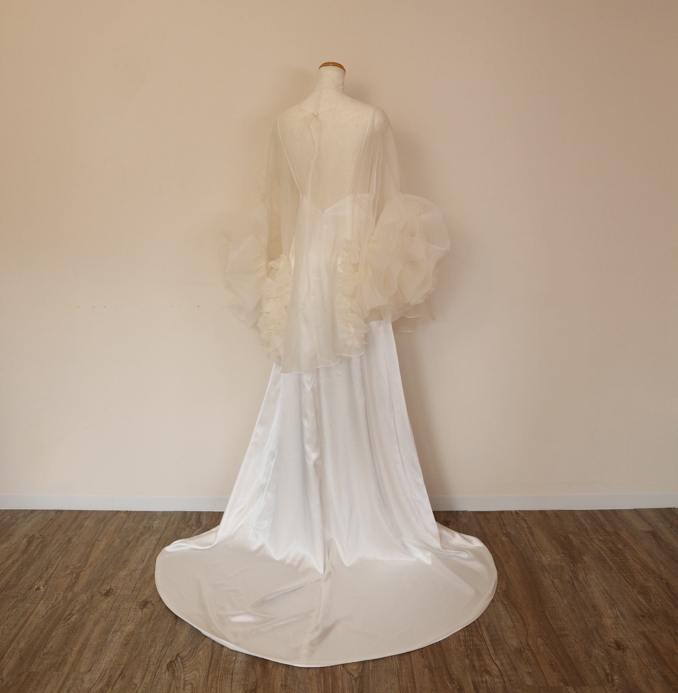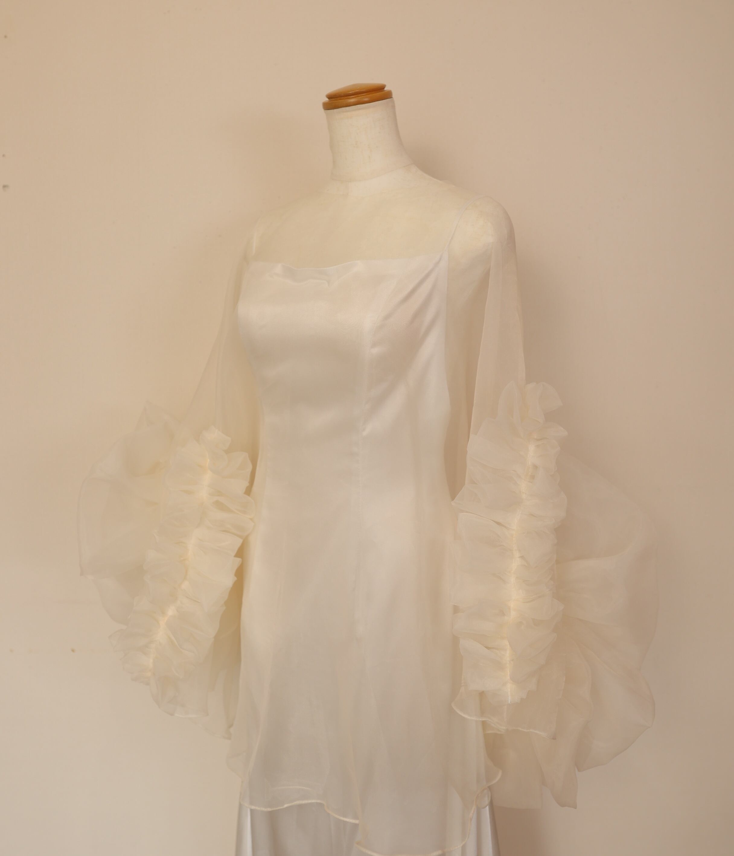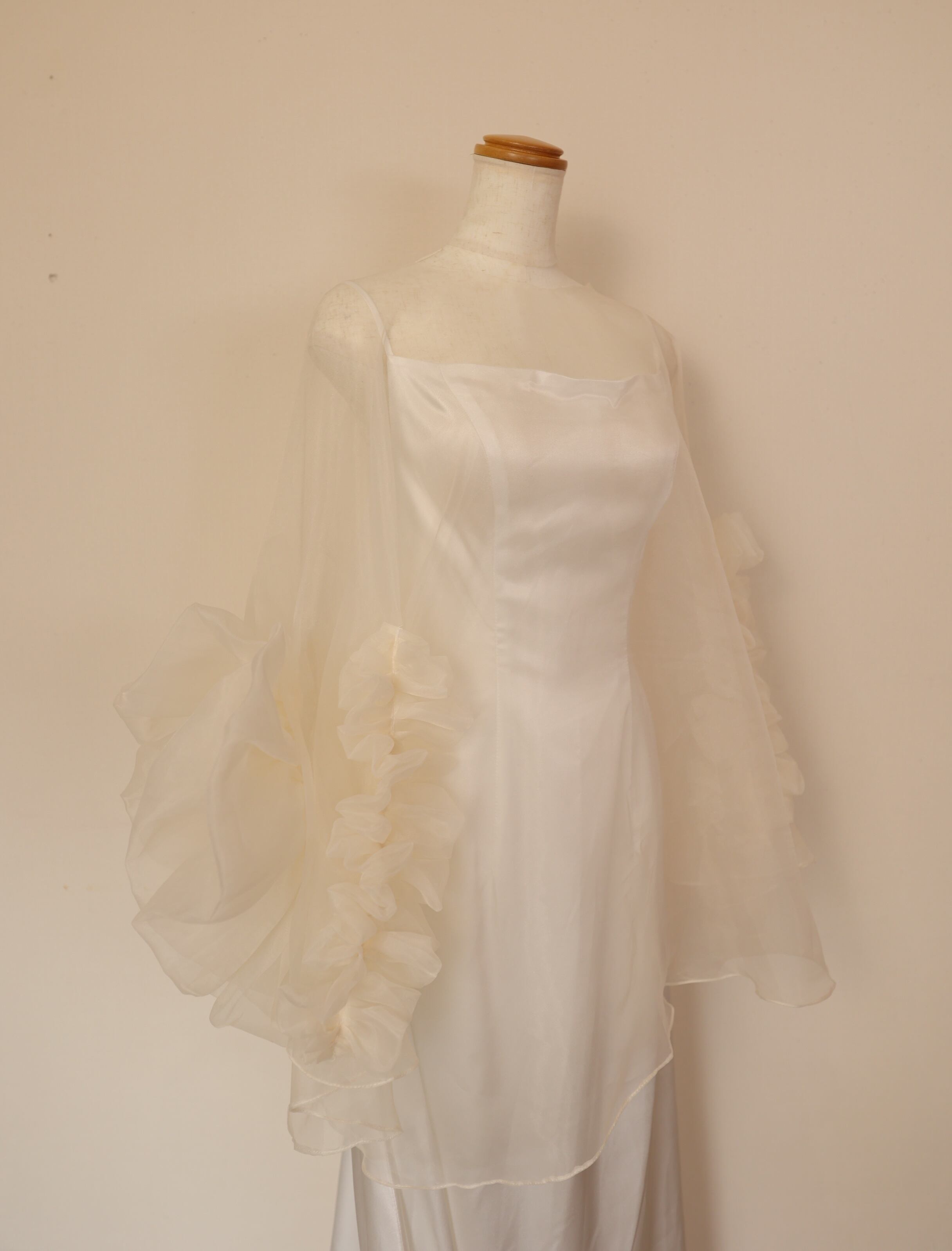 抜群のおしゃれ見えパーティードレス トレーン シアーな美しさ ポンチョ ソフトチュール ポンチョ演奏会