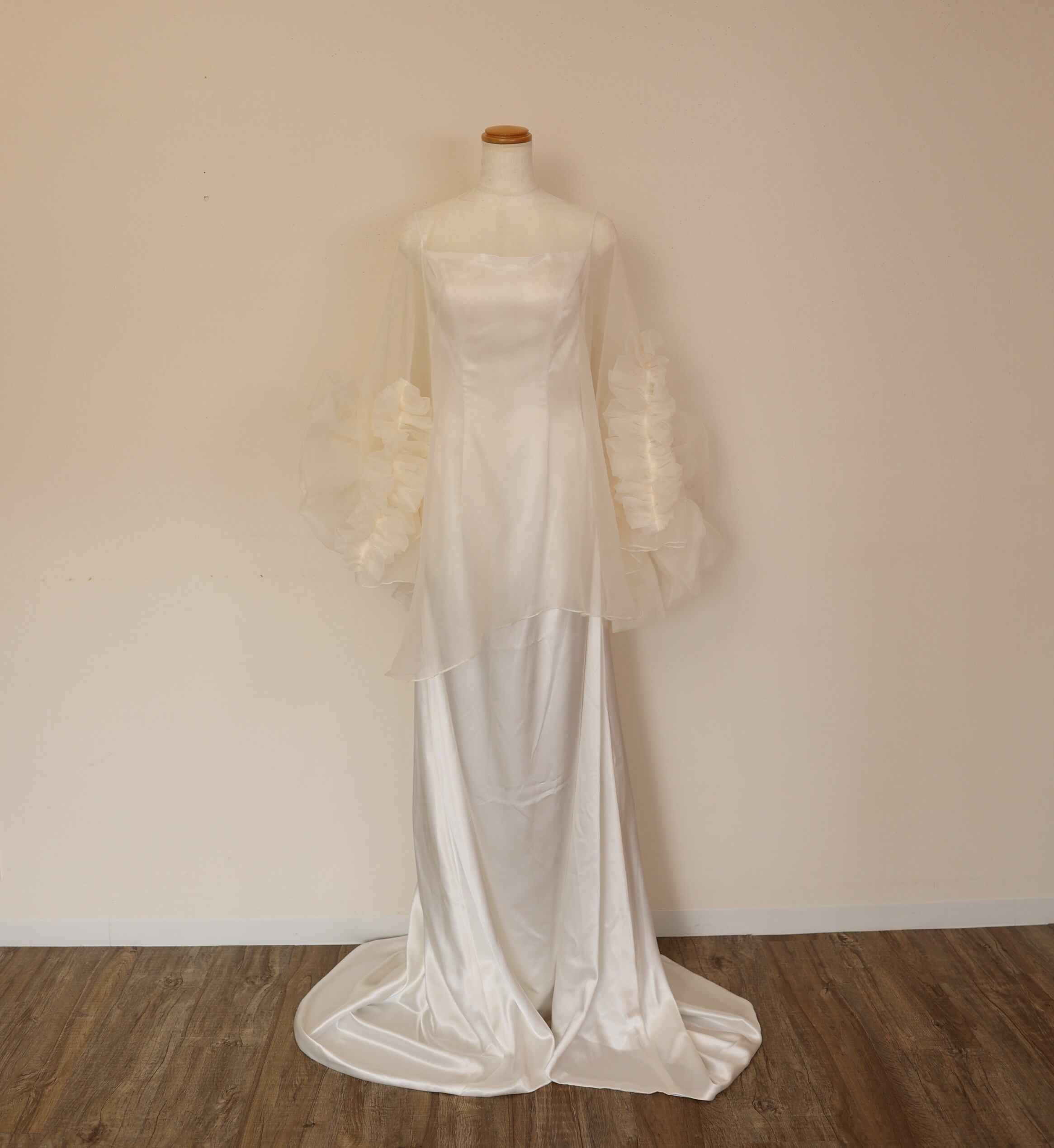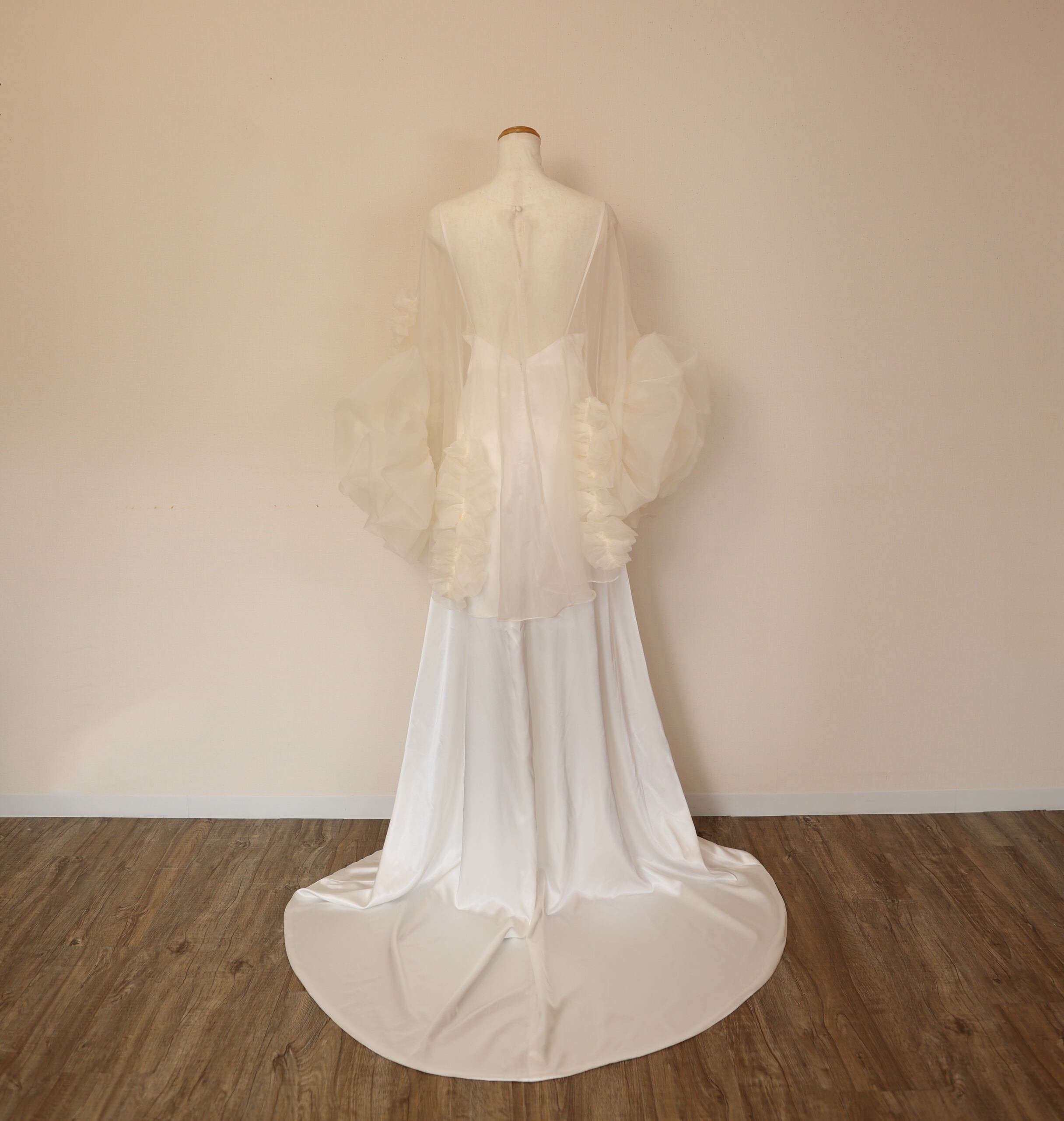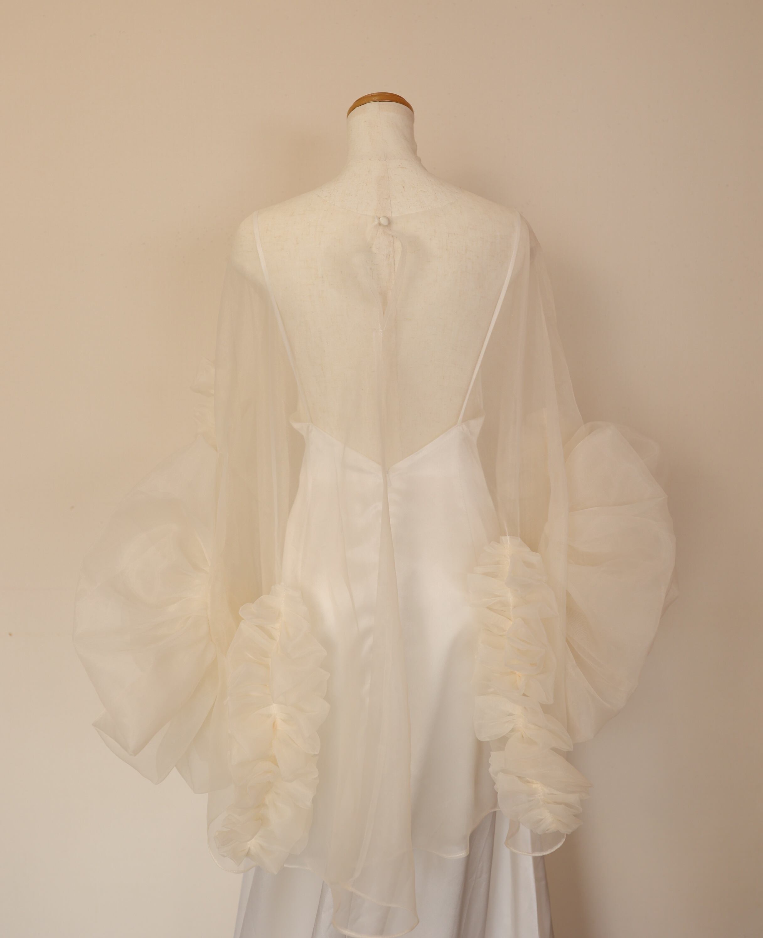 抜群のおしゃれ見えパーティードレス トレーン シアーな美しさ ポンチョ ソフトチュール ポンチョ演奏会