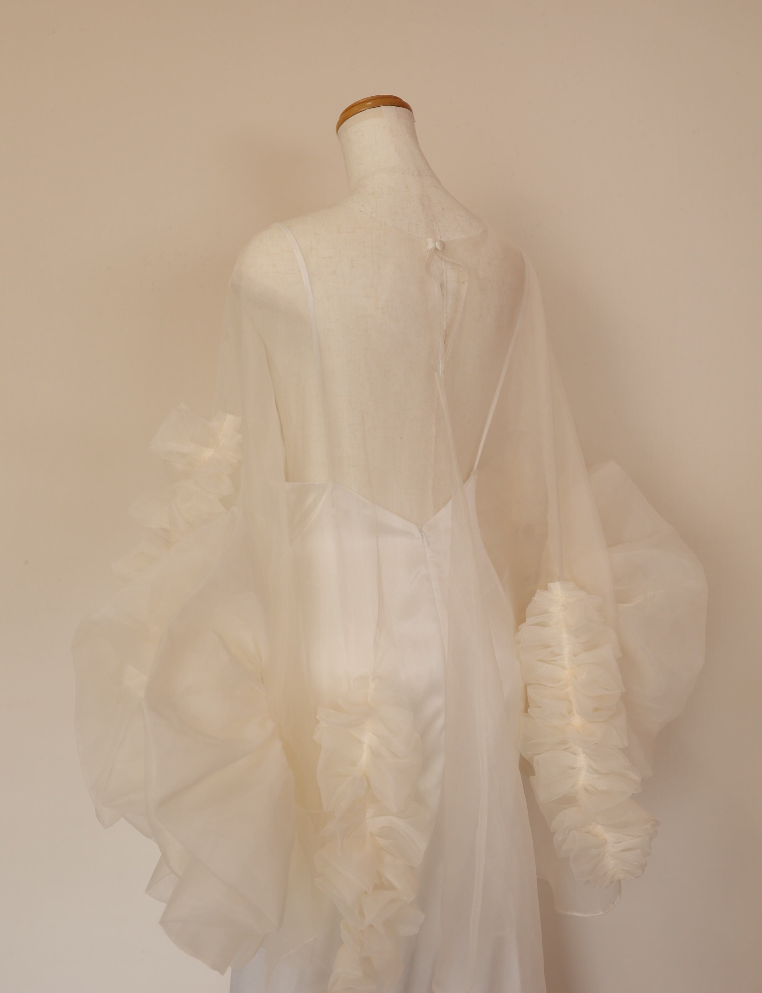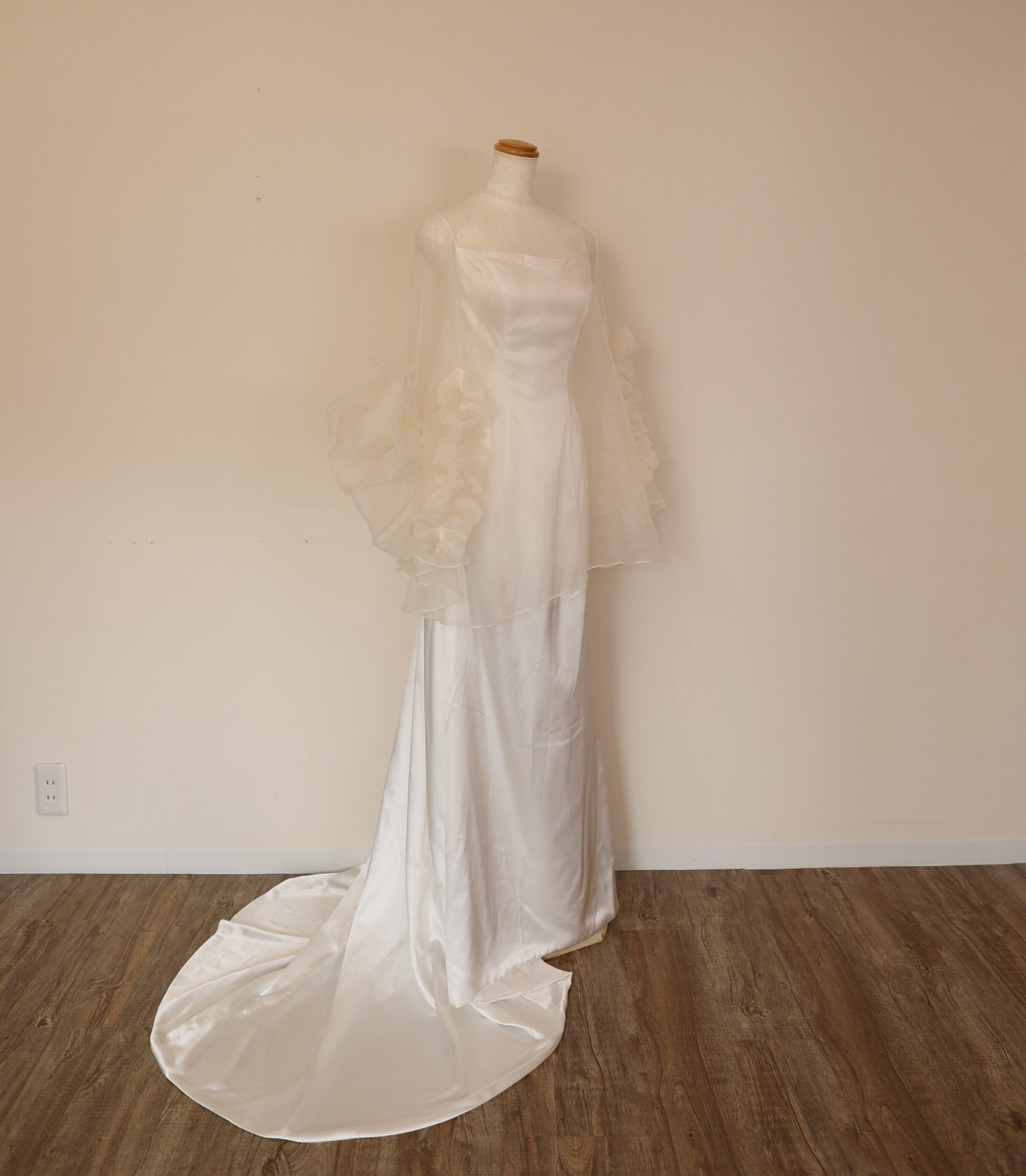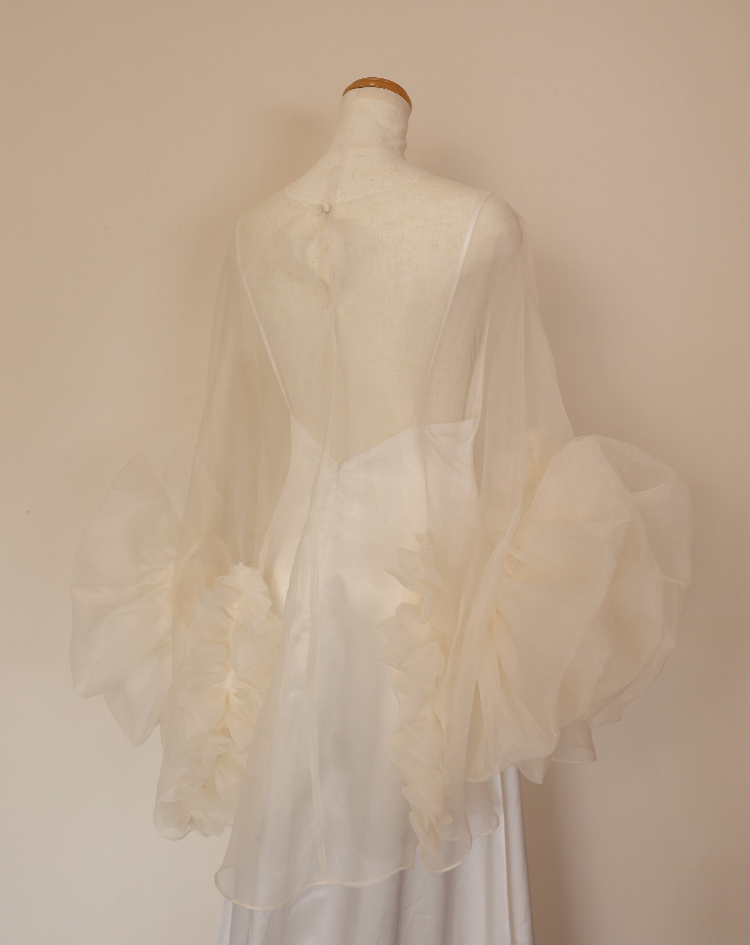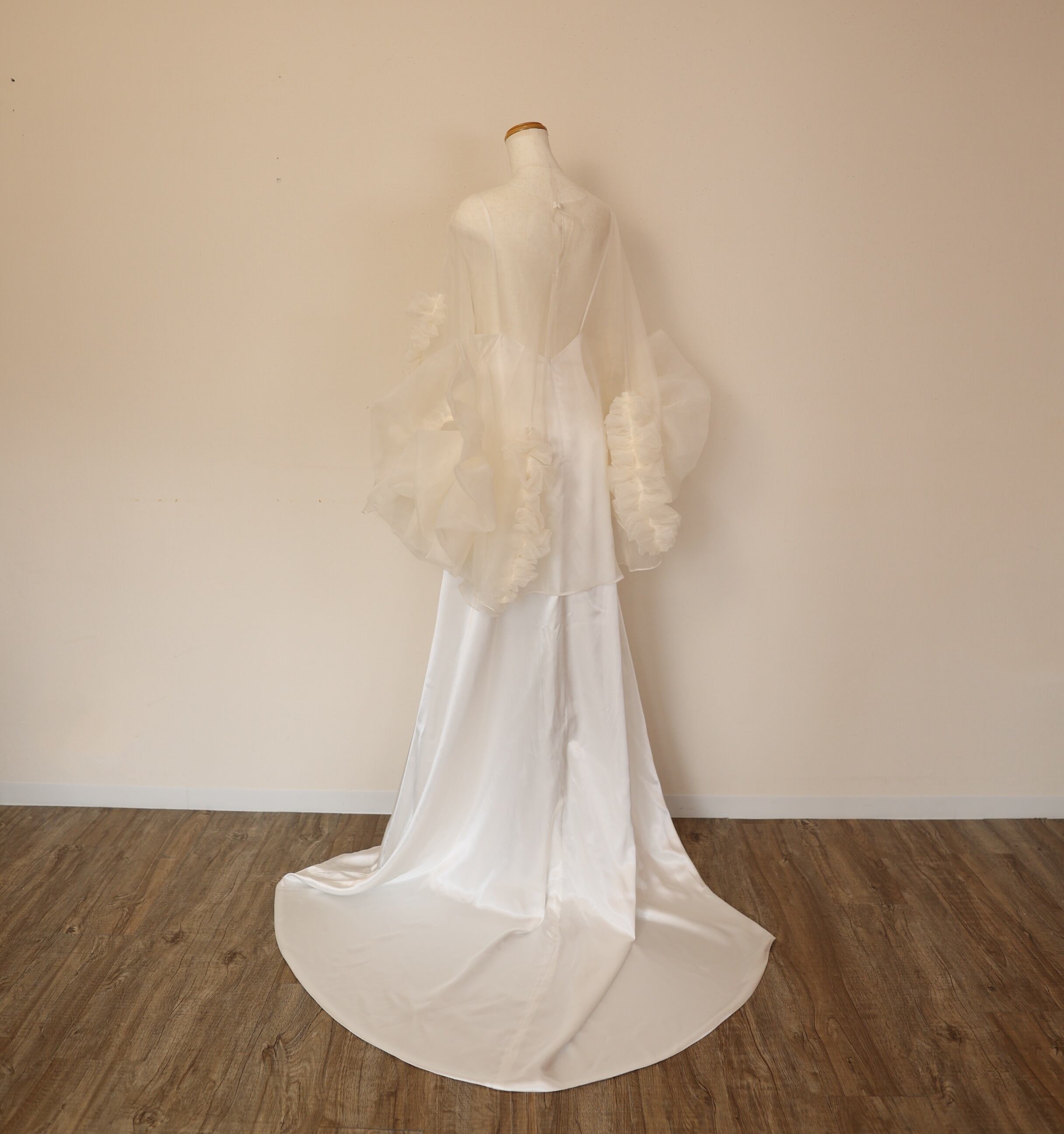 抜群のおしゃれ見えパーティードレス トレーン シアーな美しさ ポンチョ ソフトチュール ポンチョ演奏会