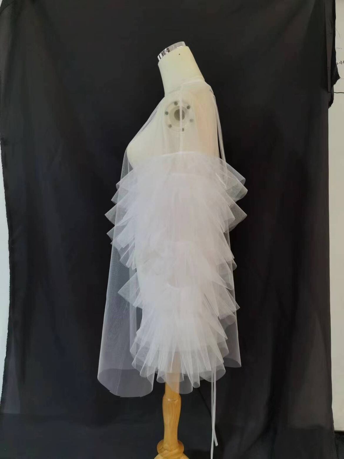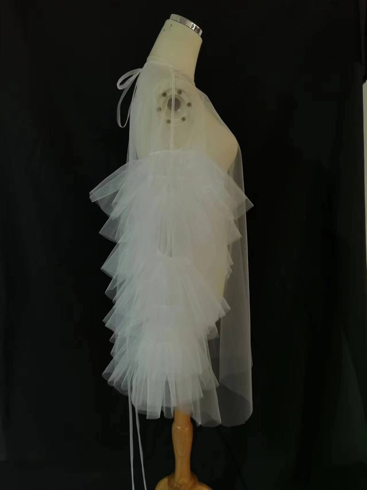 送料無料! 抜群のおしゃれ見えカーディガン(ボレロ) オフホワイトソフトチュール ラッフルフリル 長袖 演奏会/音楽会